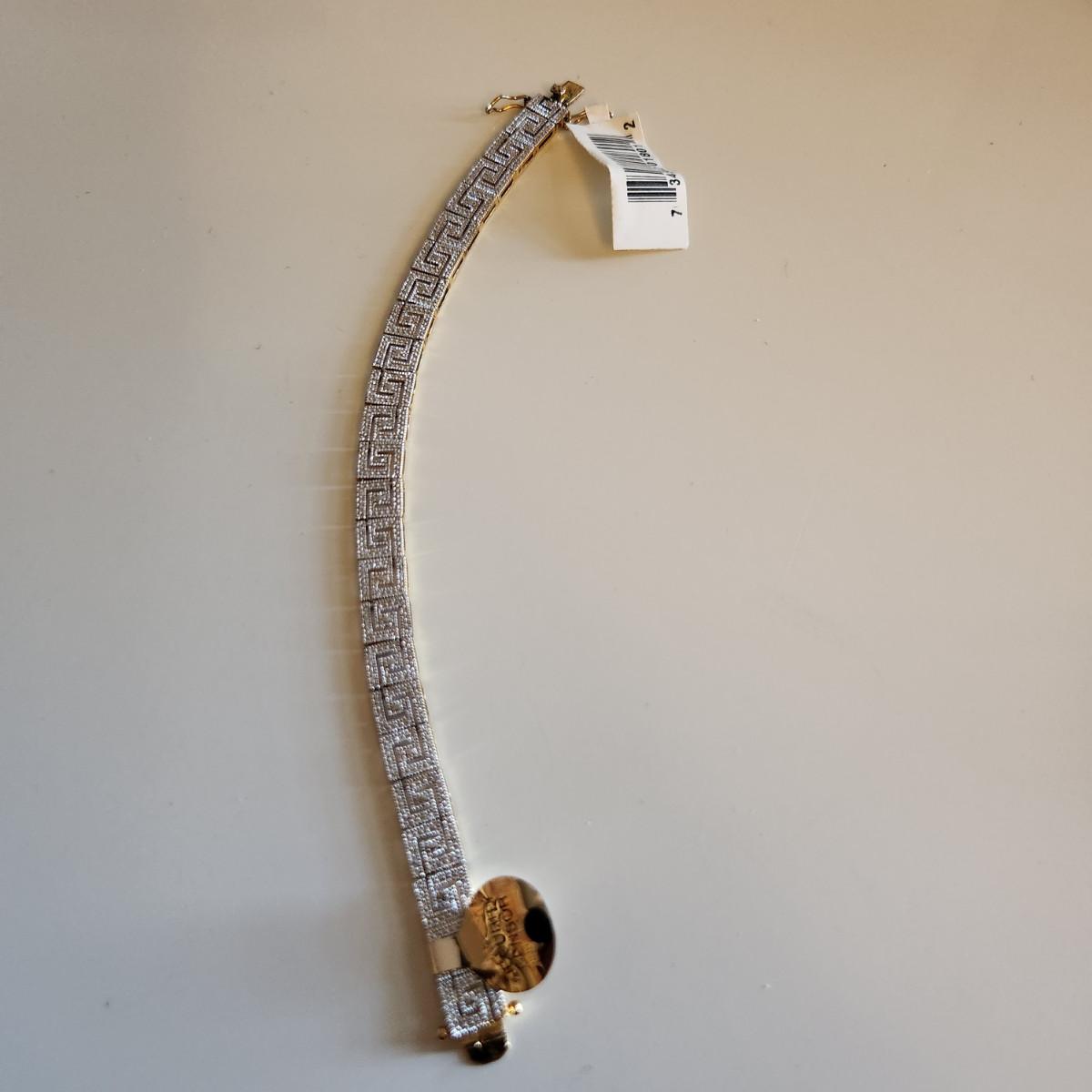 This auction lot is for a Gold-Washed and Sterling Silver Bracelet. This handsome bracelet has a backside of gold-wash and a front that sports a unique metalic design in sterling silver. The bracelet is marked 925. The bracelet is new and still has the maker's tags attached. See photo for size.