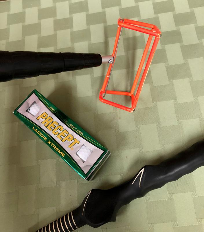 In this golfing lot...a practice club..balls and a retriever..as shown..New condition...