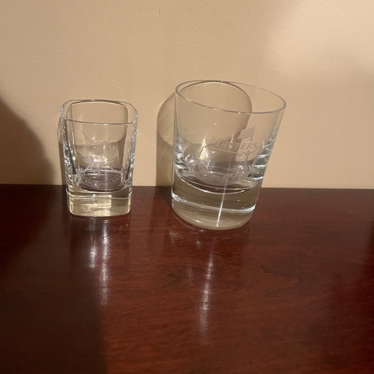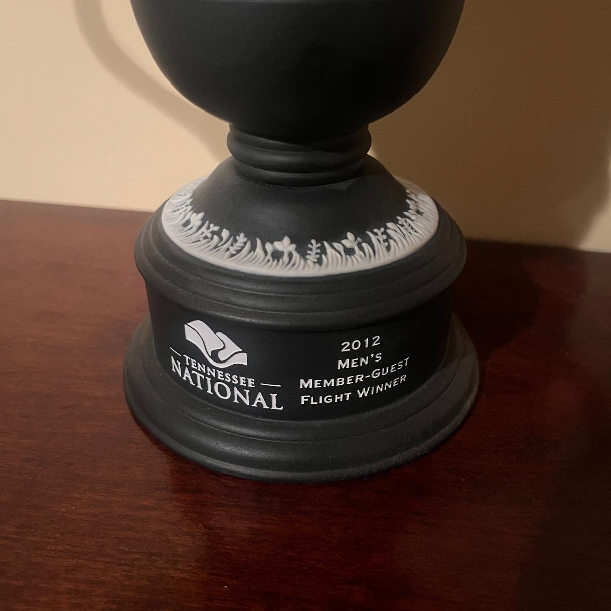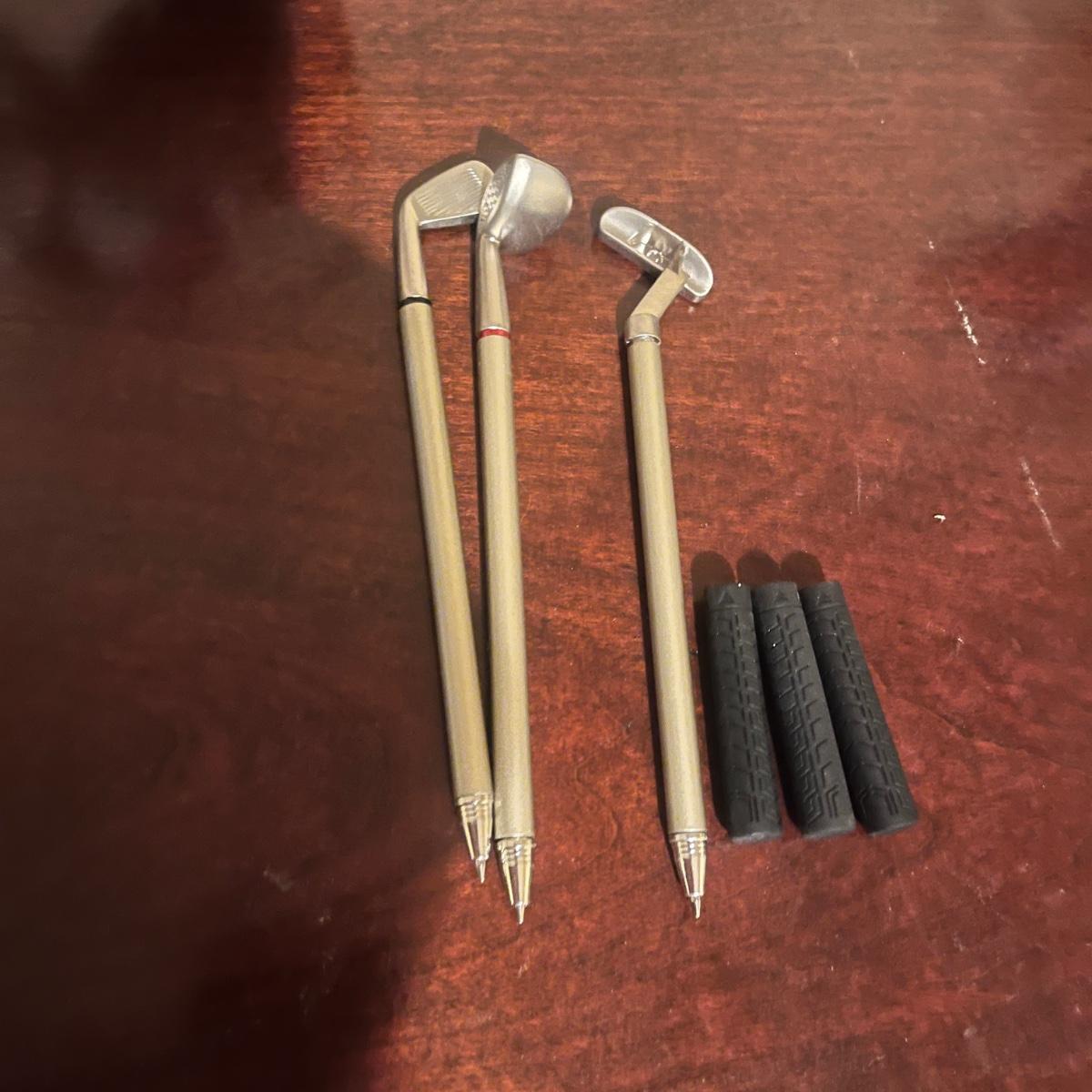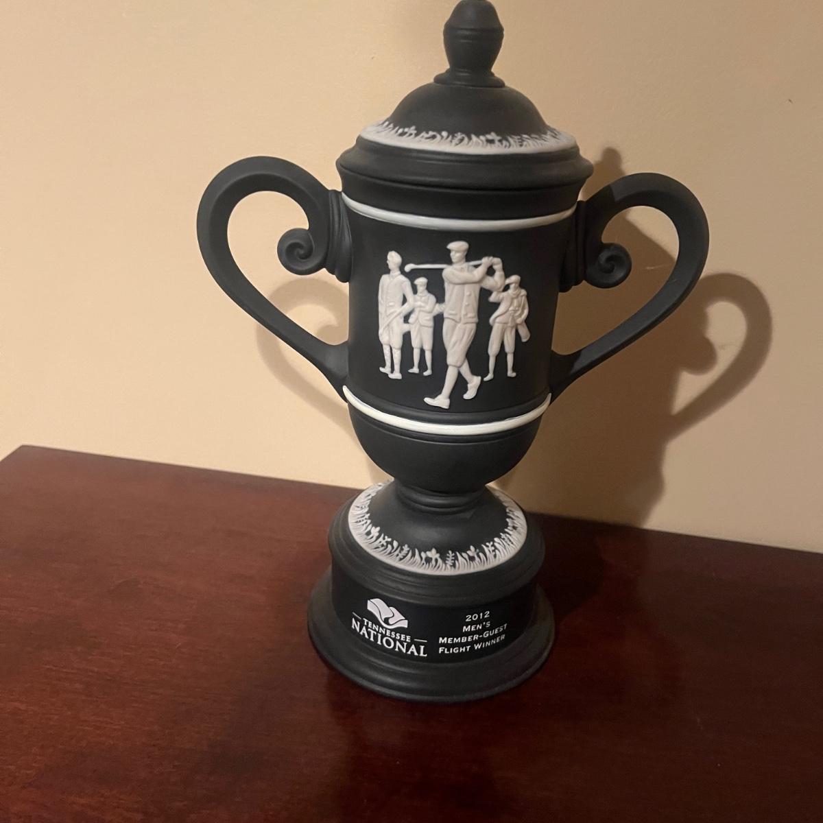 Lot contains a selection of items for the golf aficionado including eight coasters, golf club pins in golf bag, Masters and St Andrew’s glasses, golf books, ceramic Tennessee National golf trophy, two untested pens from 2006 Ryder cup and a golfer doll. Doll measures 10” x 5” x 17”H.
