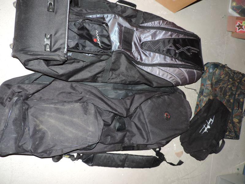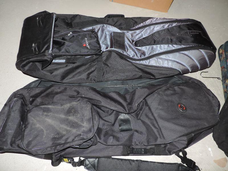 2 GOLF BAGS BY MAXFLI AND GARMENT BAG BY JORDACHE
