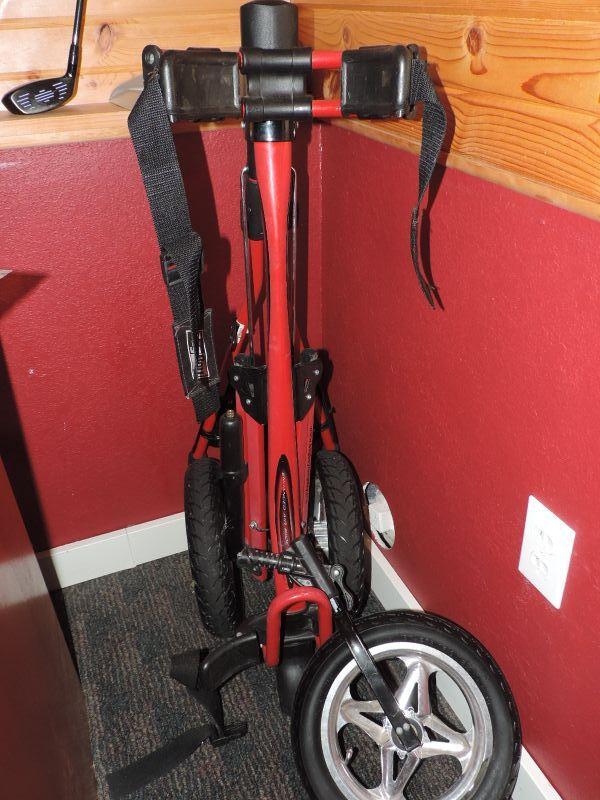 LOT 247 BAG BOY GOLF CART & GOLF ITEMS