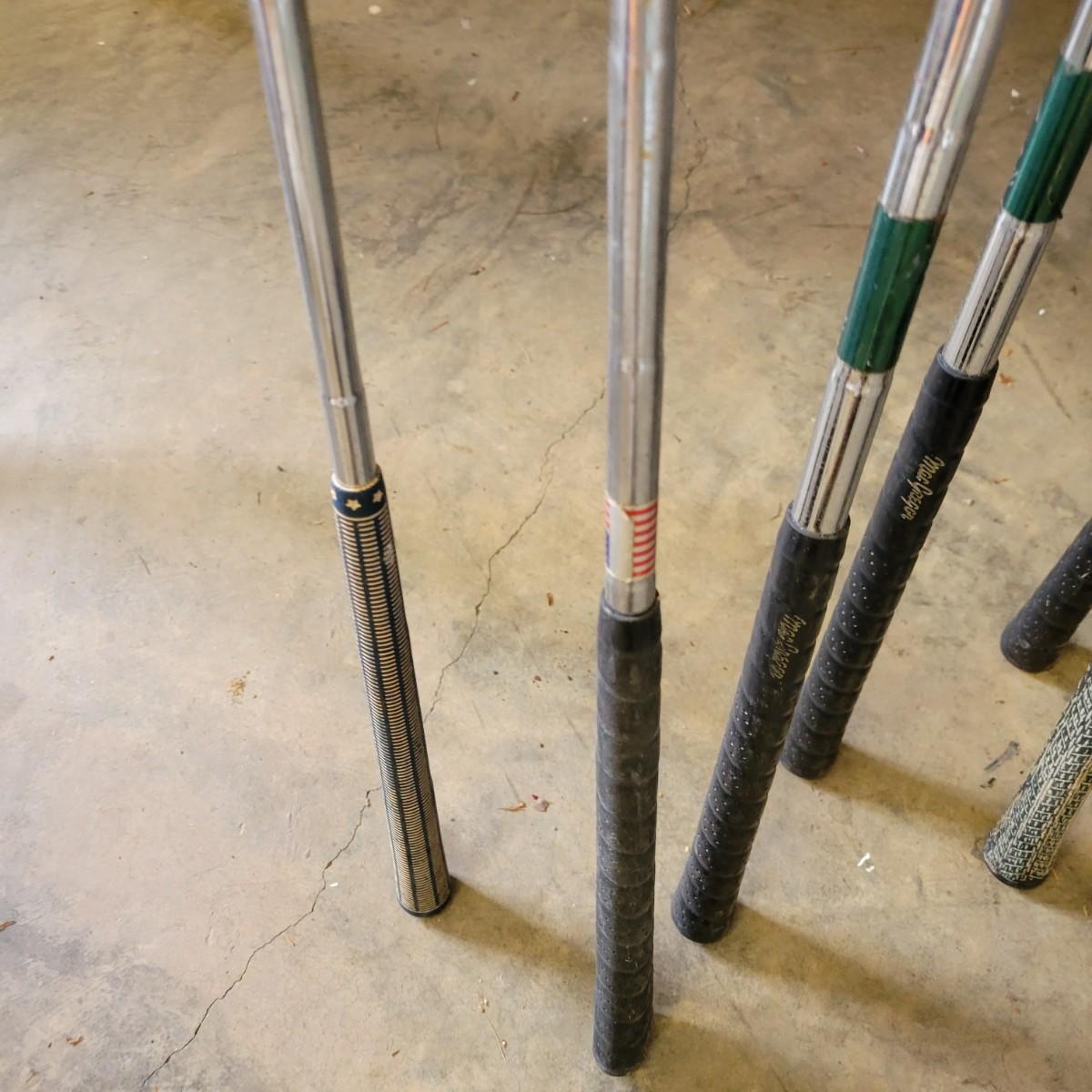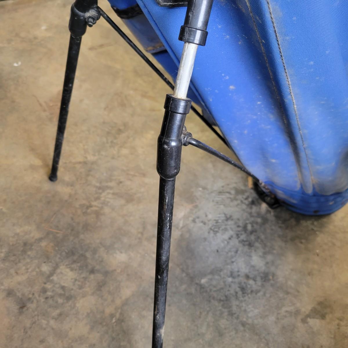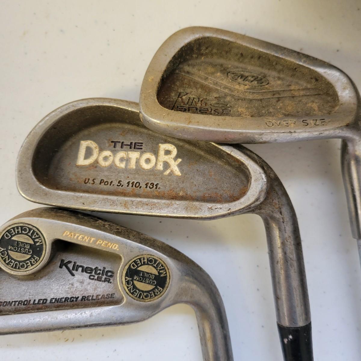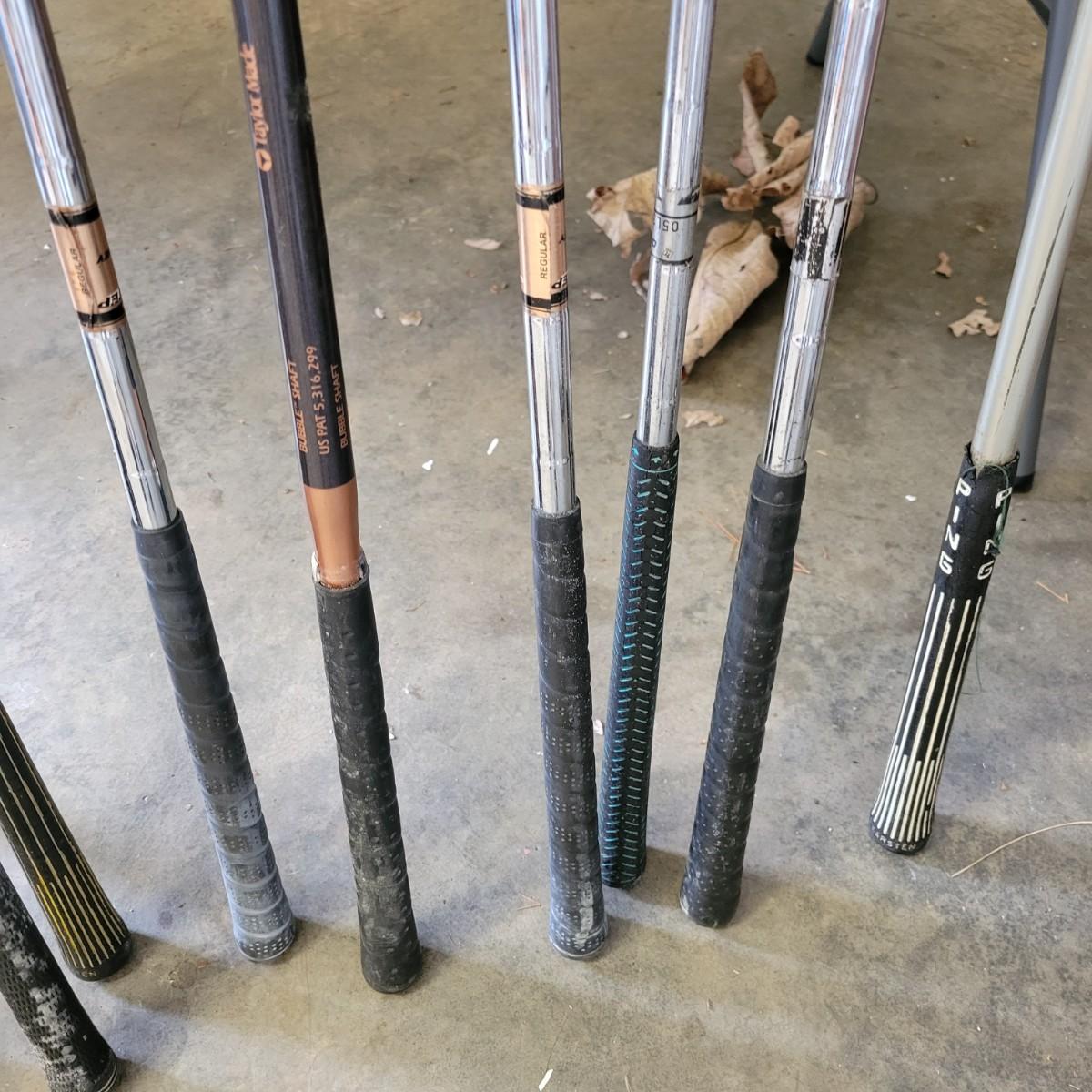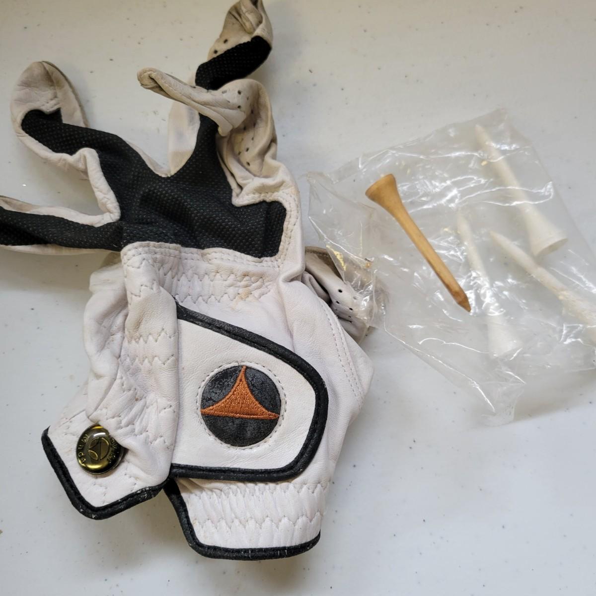 An assortment of golf clubs, a golf bag and more in fair to good condition. The golf bag has been in a garage and does show some mildew, but could be cleaned. The bag is made by Jones Sport Co. The clubs are an assortment of different brands, but make up an entire set. Manufacturers include PalJoey drivers, Taylor Made, Ping and a wooden driver. The longest driver is a JoeyPal 1 and has a 41" shaft. Irons and wedges are manufactured by McGregor, Kinetic and Ping. The 3 iron has a 37.5" shaft. Two putters are included made by Spalding and Glidden. Lot also includes a left hand glove, tees and a lot of balls, likely over 200. Local pickup only