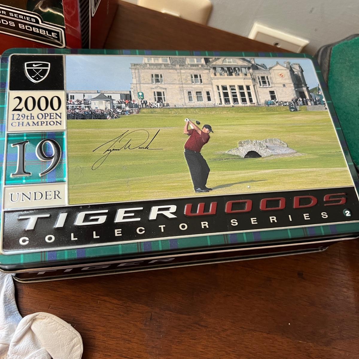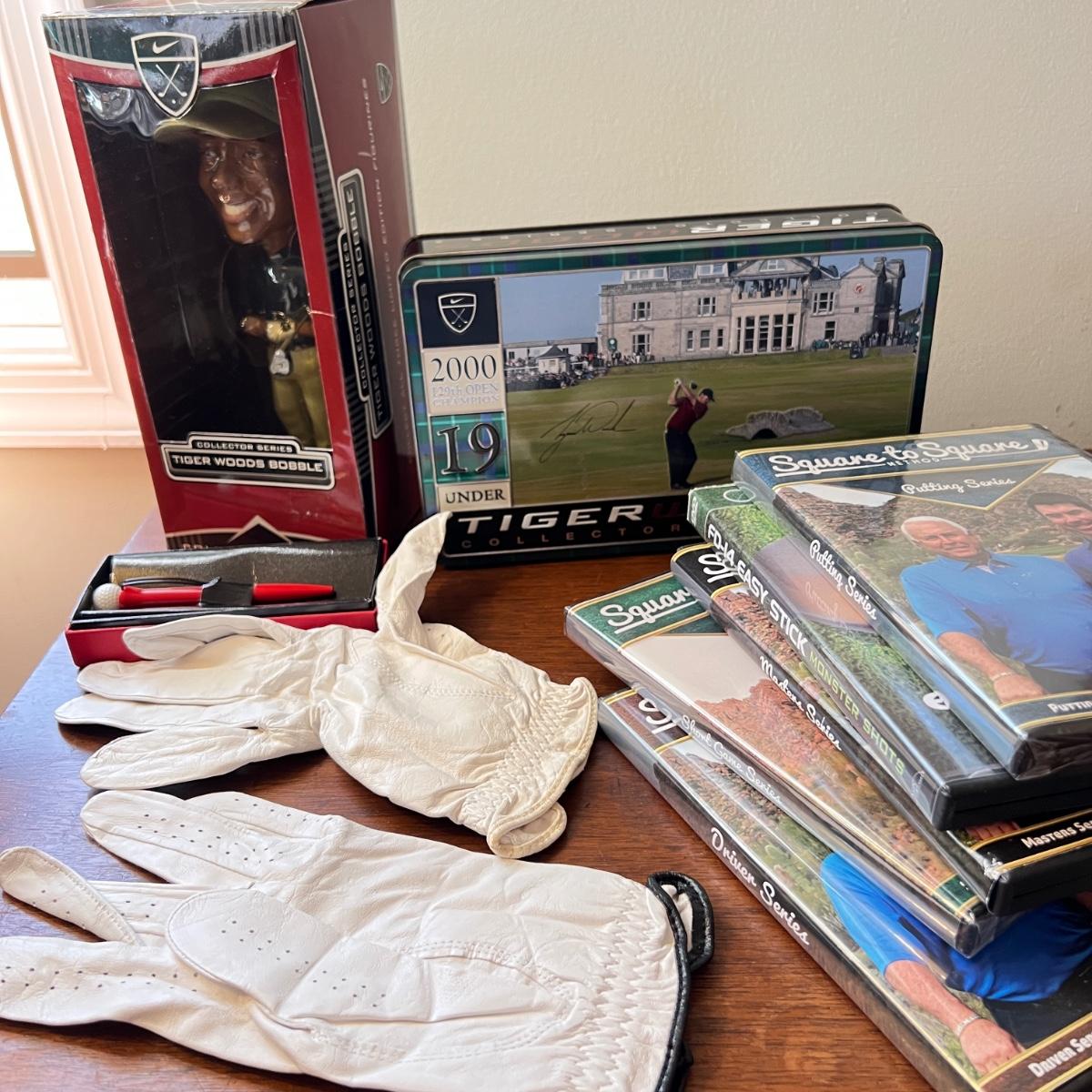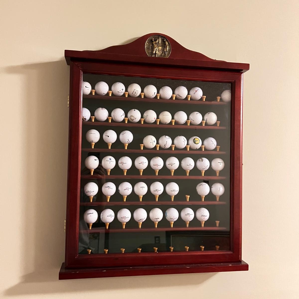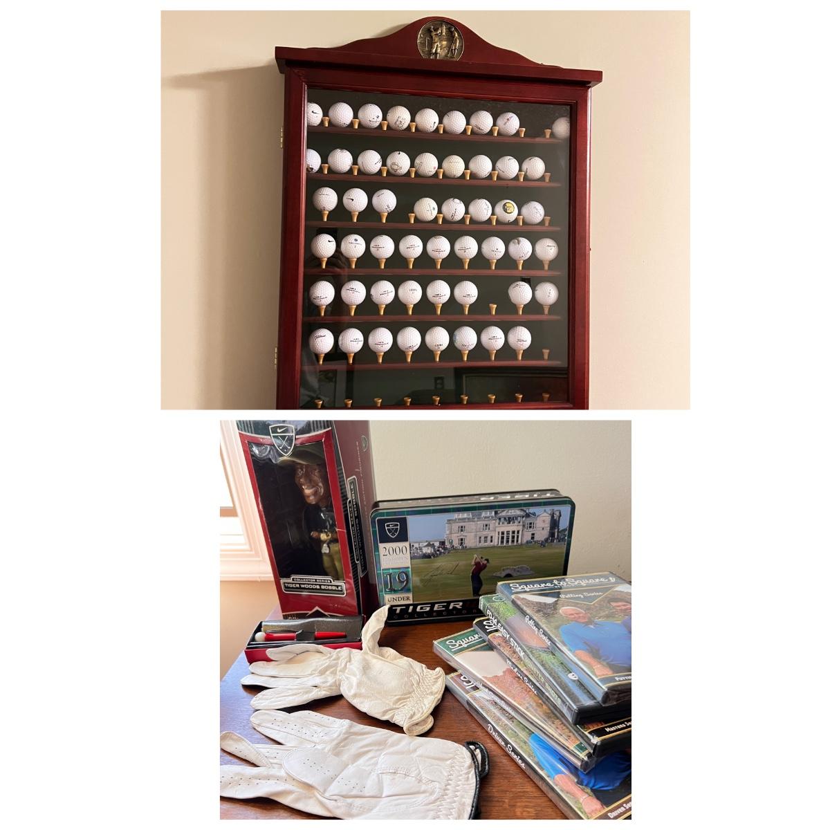 Golf Lot - Display Cabinet, Tiger Woods Collector Series Balls, etc.