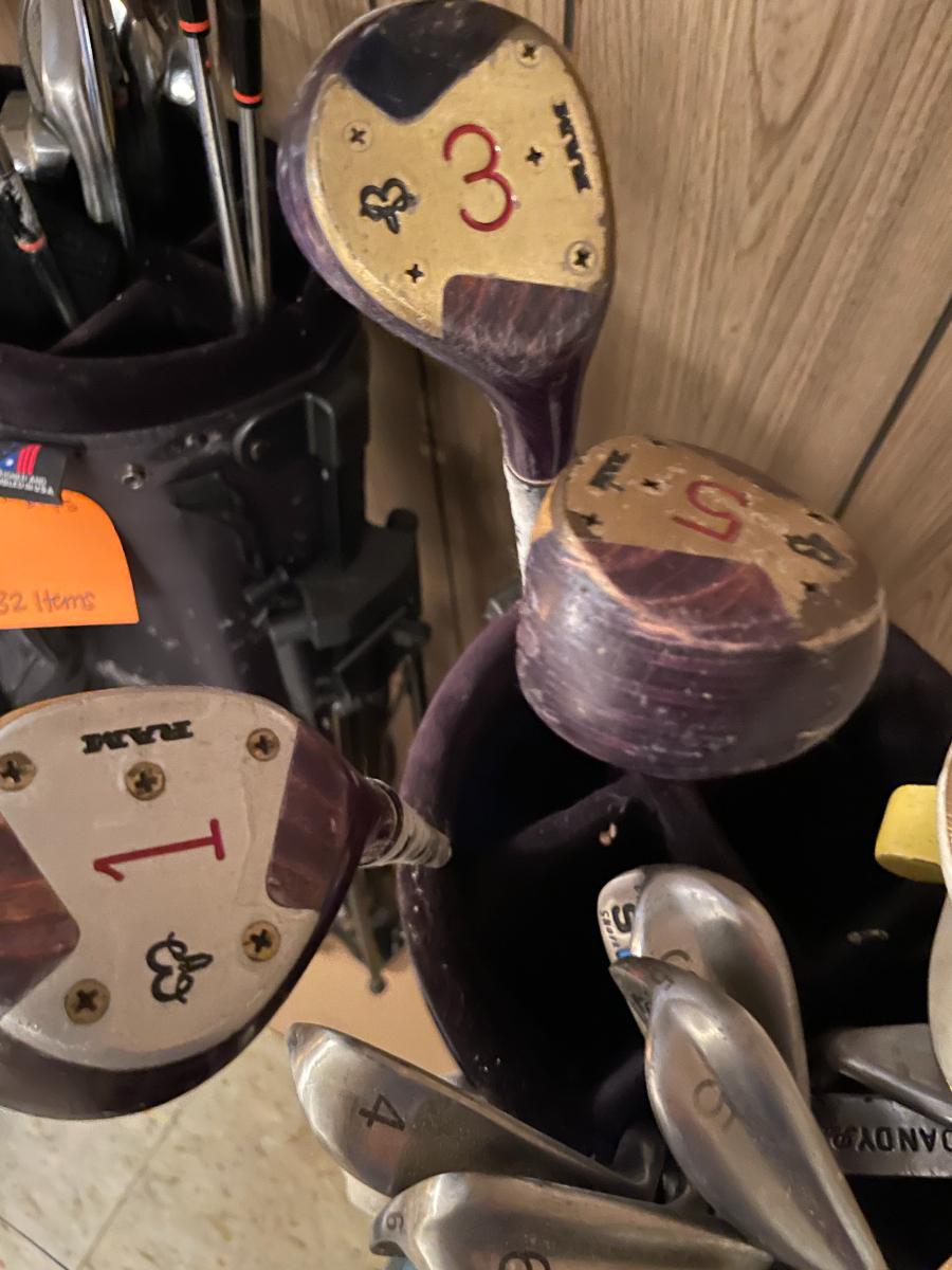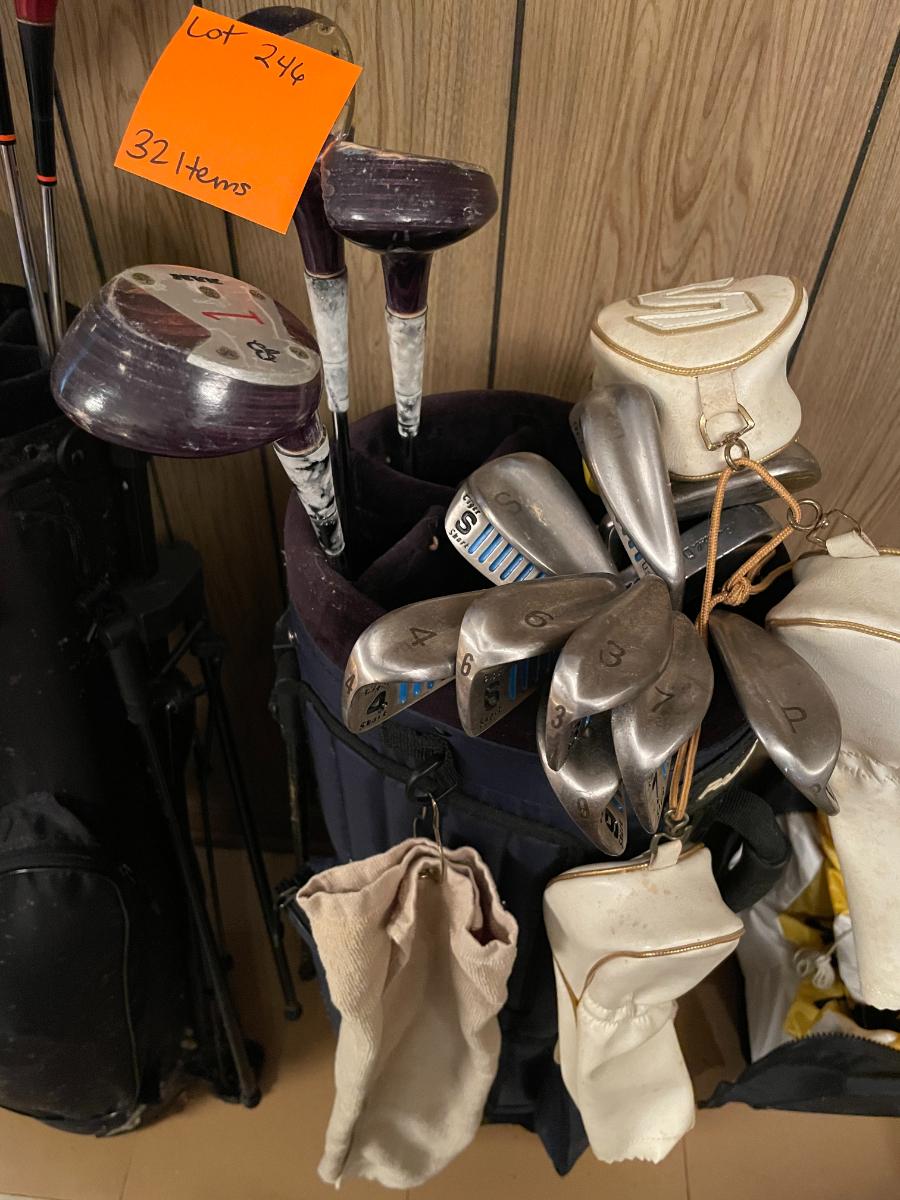Golf Set #2 includes various brands of golf balls, tees, clubs, sock covers