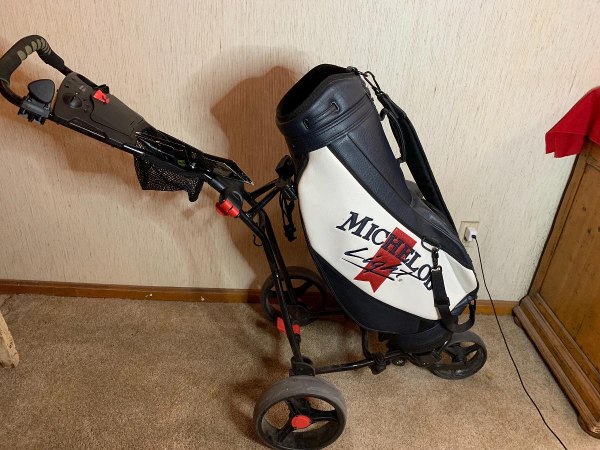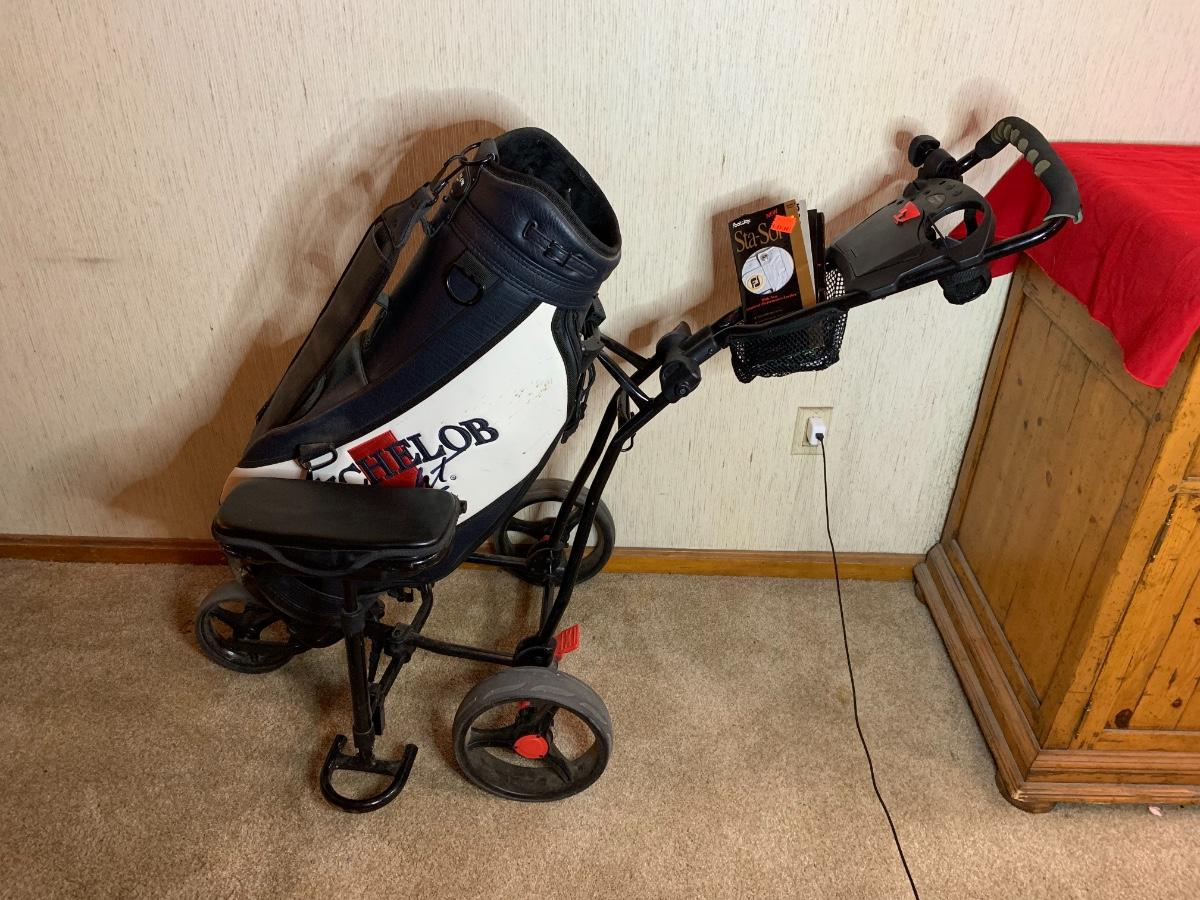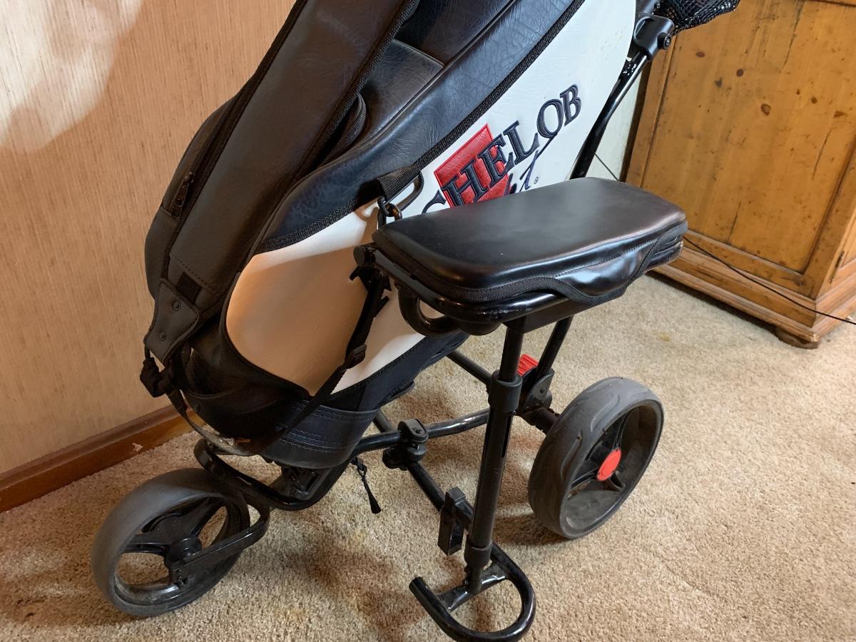 Michelob Ultra golf bag and a founders club cart in good condition with a couple misc women’s small left handed gloves