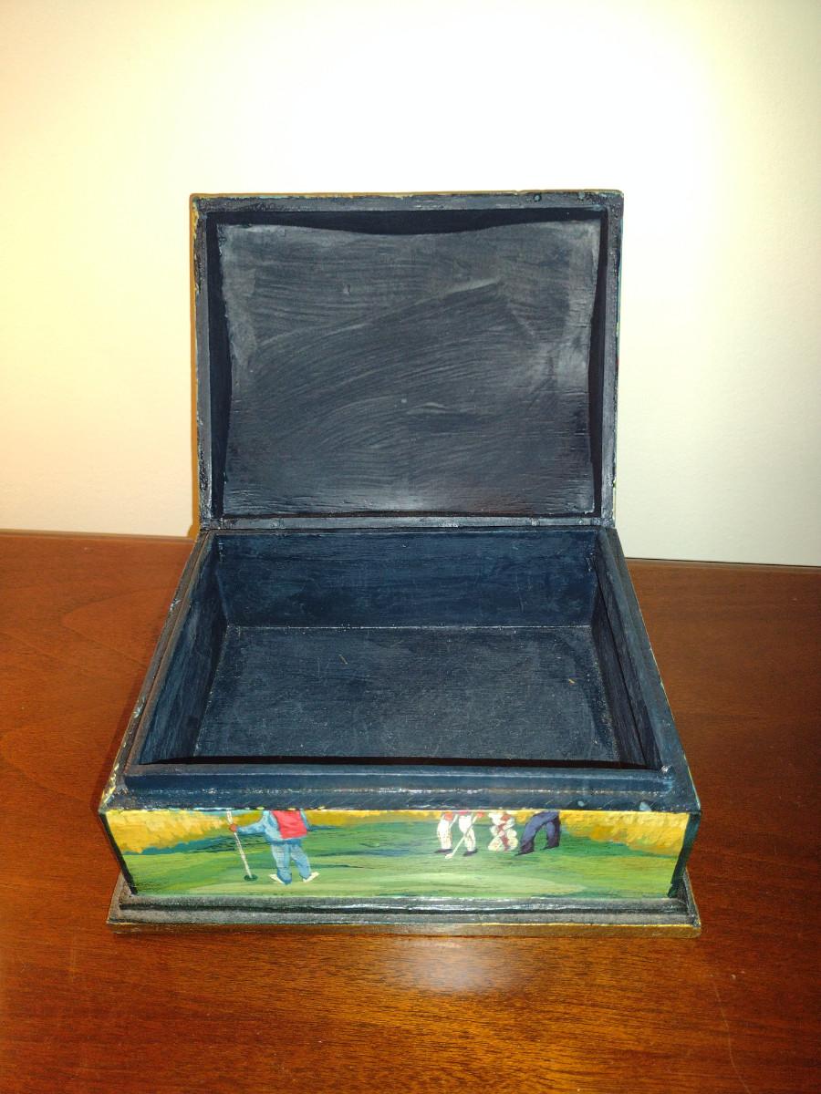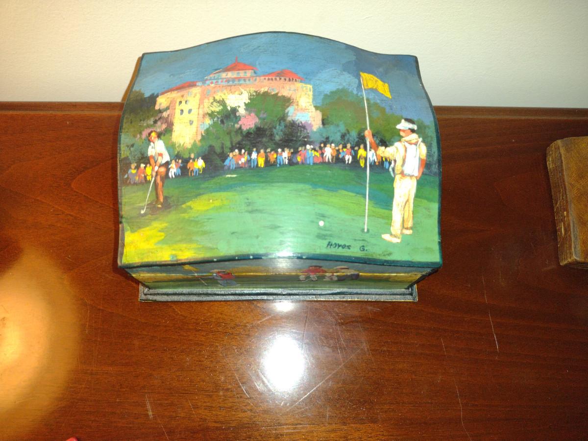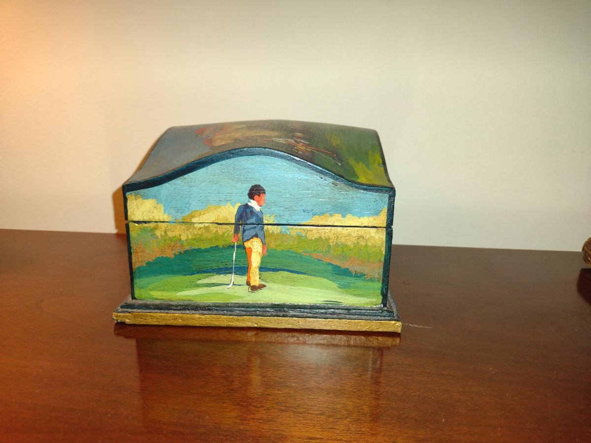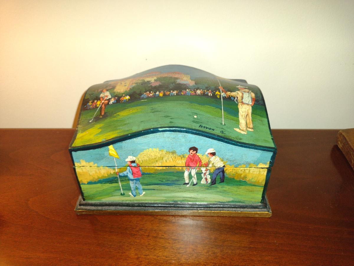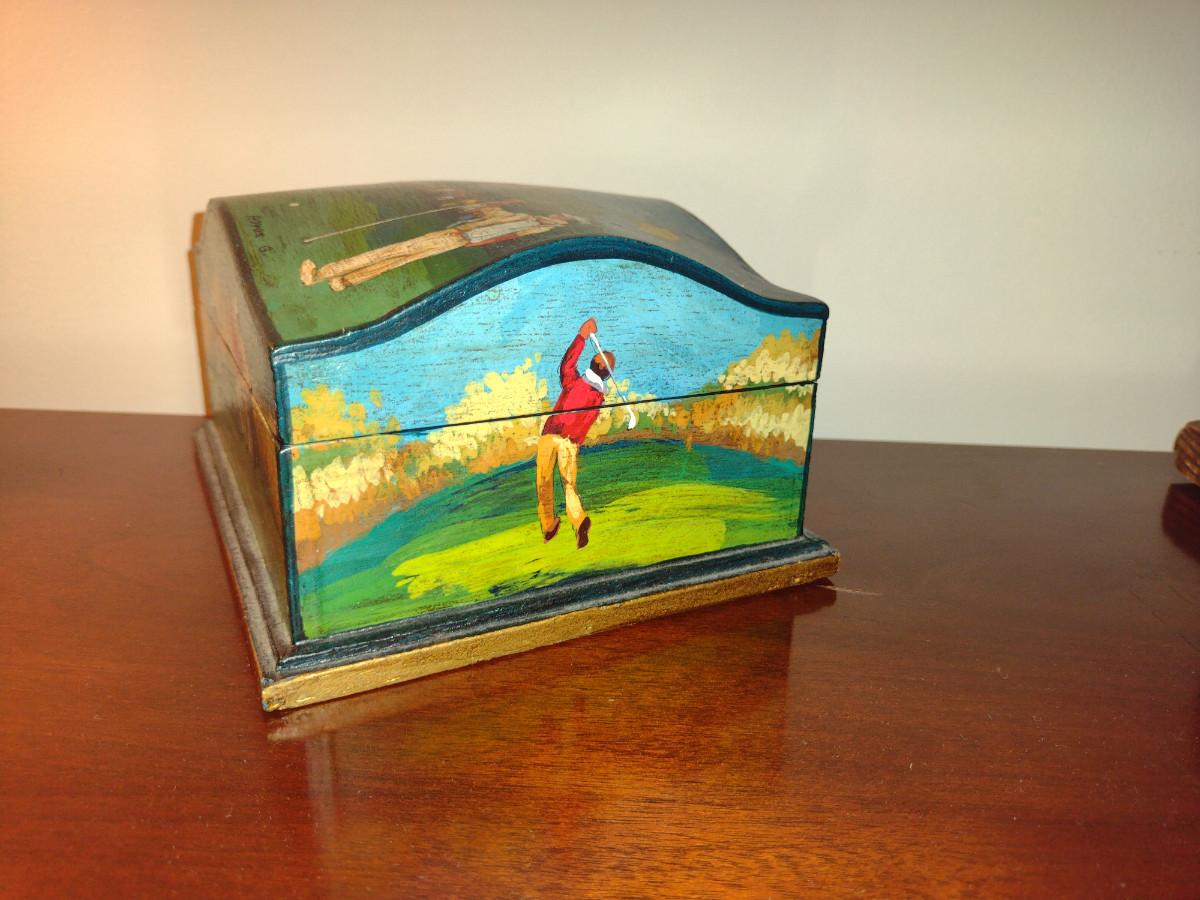 Golf Theme Wooden Storage Box- Approx 7" x 5 3/4" x 4" Tall
