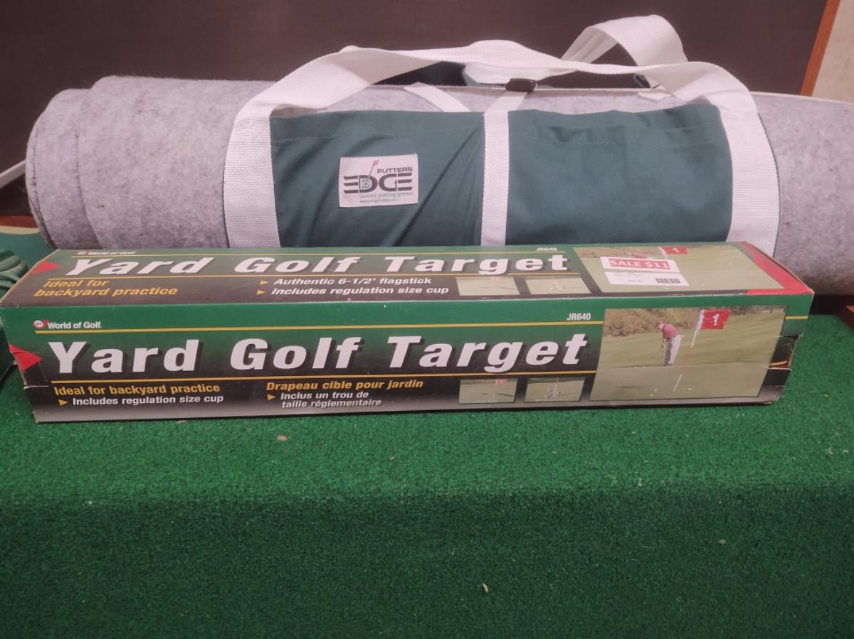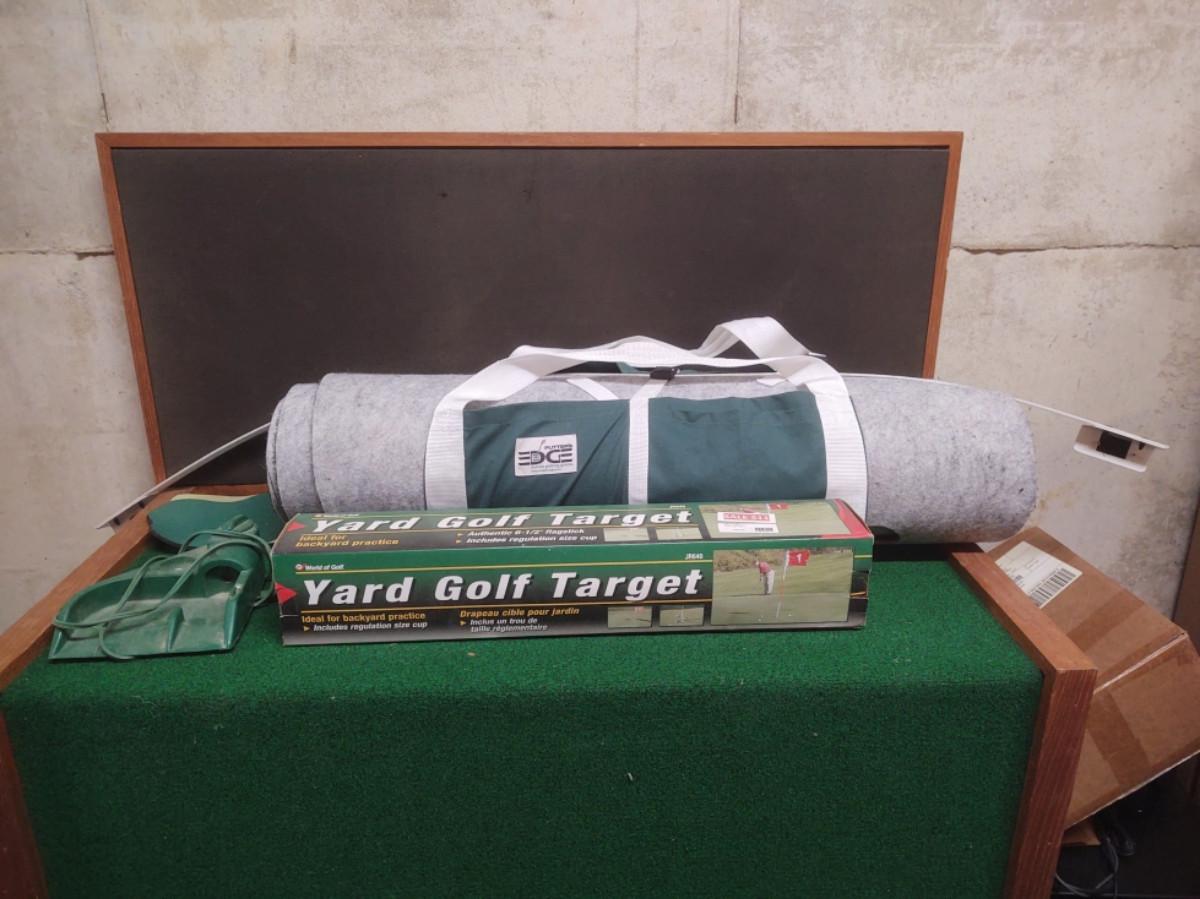 Long putting green, yard golf target, ball returner. See pictures for more details.