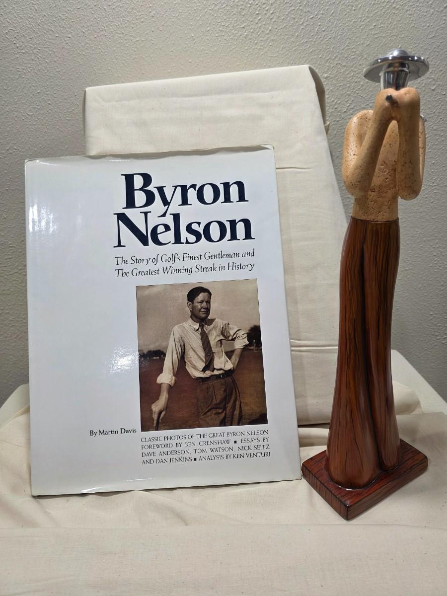 Golfer Byron Nelson autographed book by Martin Davis. First Edition 1997. Golfer figurine metal and either wood ir ceramuc, heavy, unmarked. 15" H