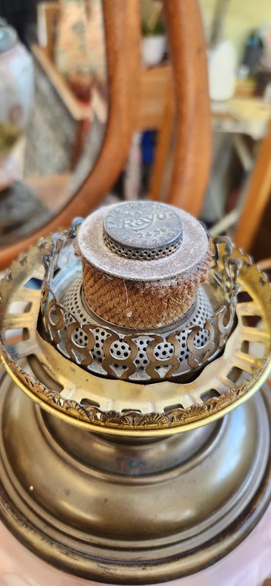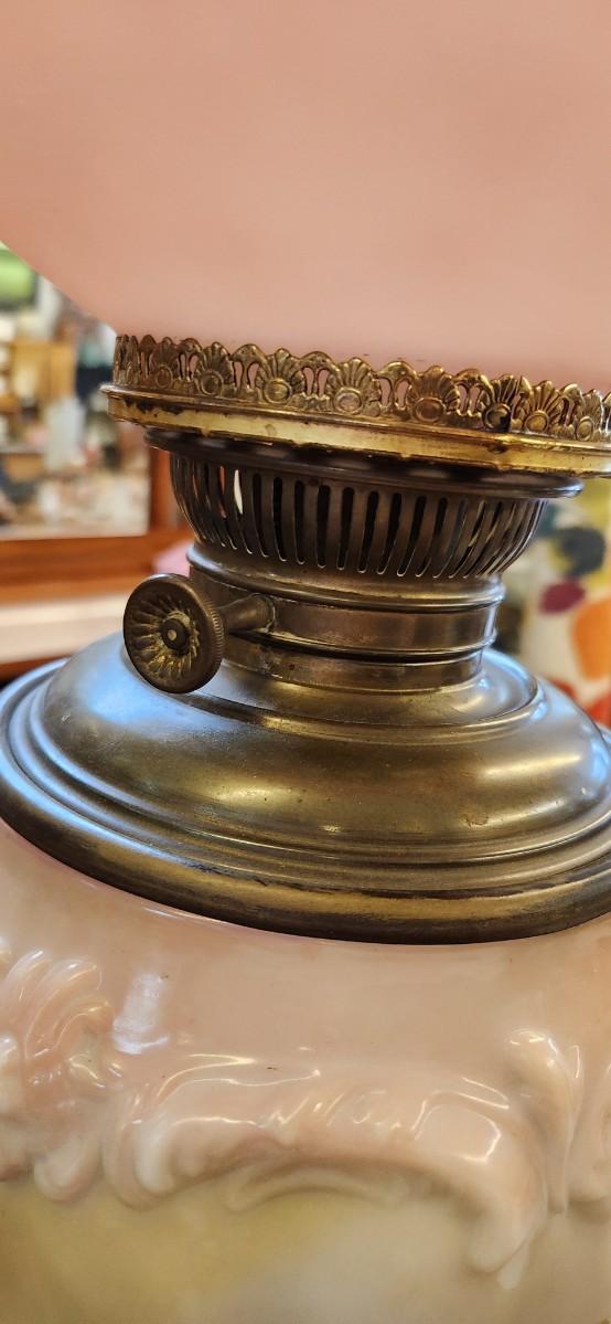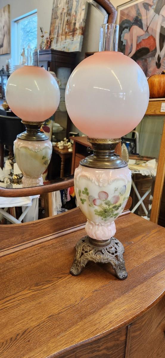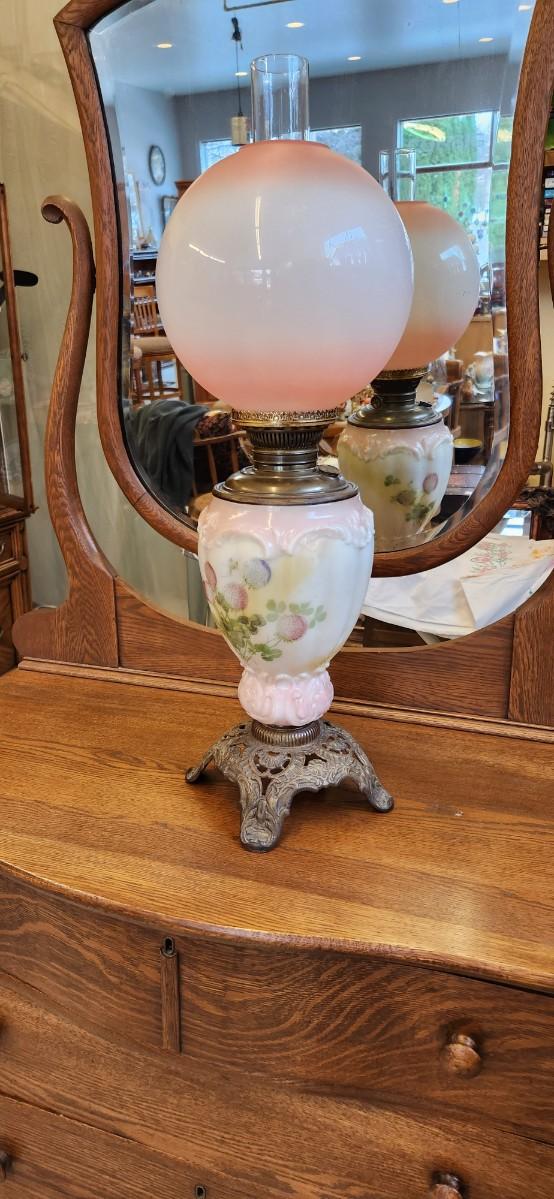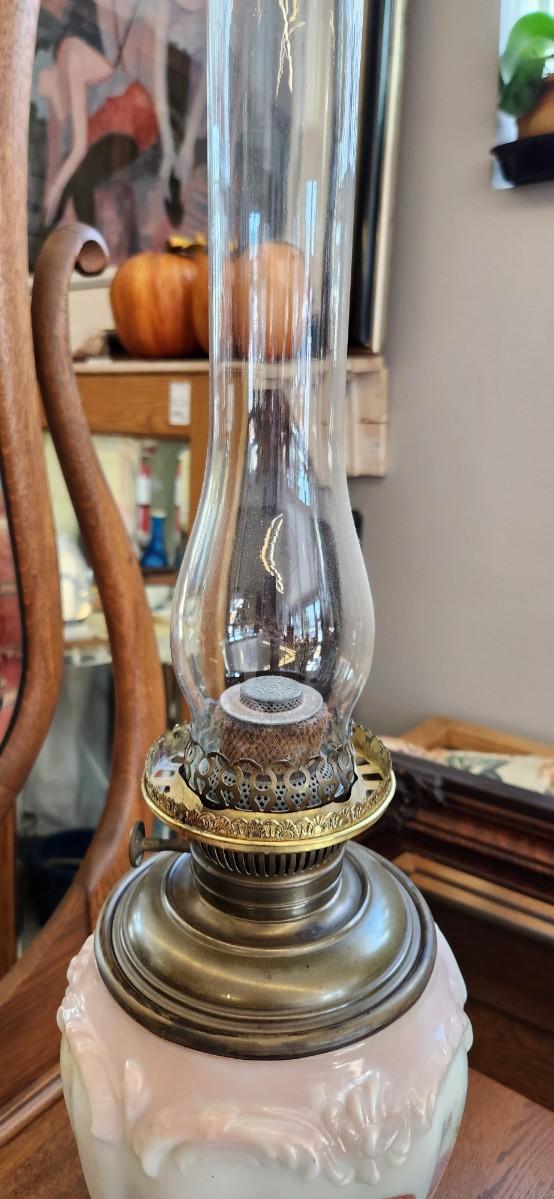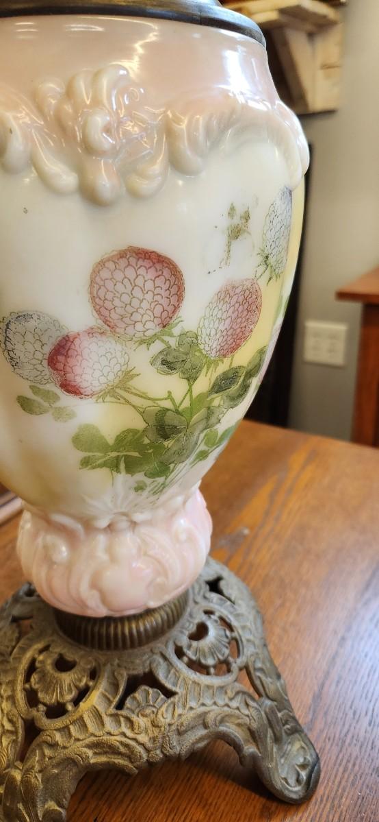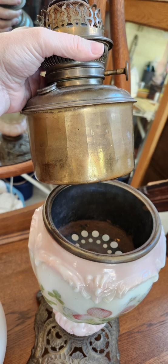 Old gone with the wind lamp with all of its parts! The transfer is still in great shape as is the rest of this lamp.