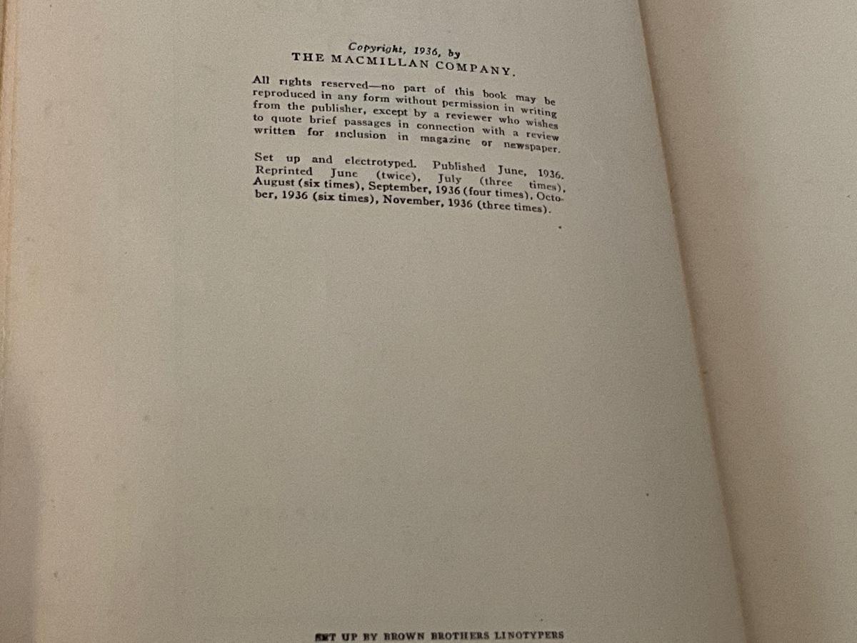 "Gone with the Wind" Margaret Mitchell Book (November 1936) as pictured
