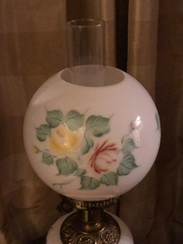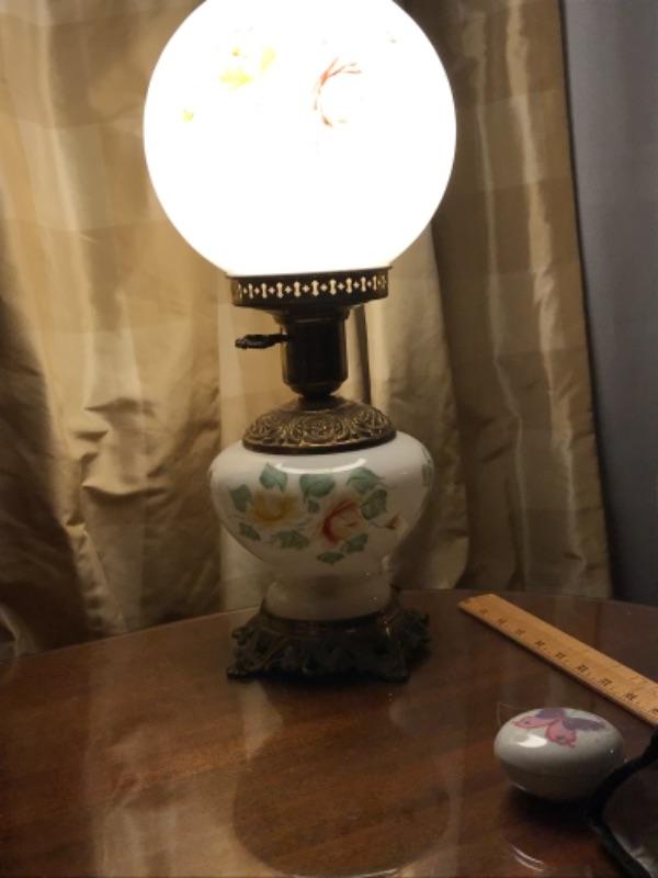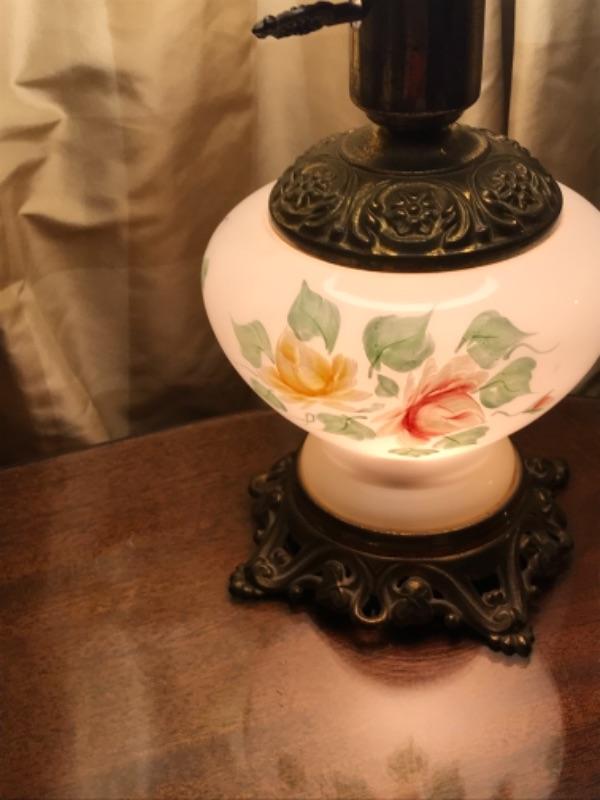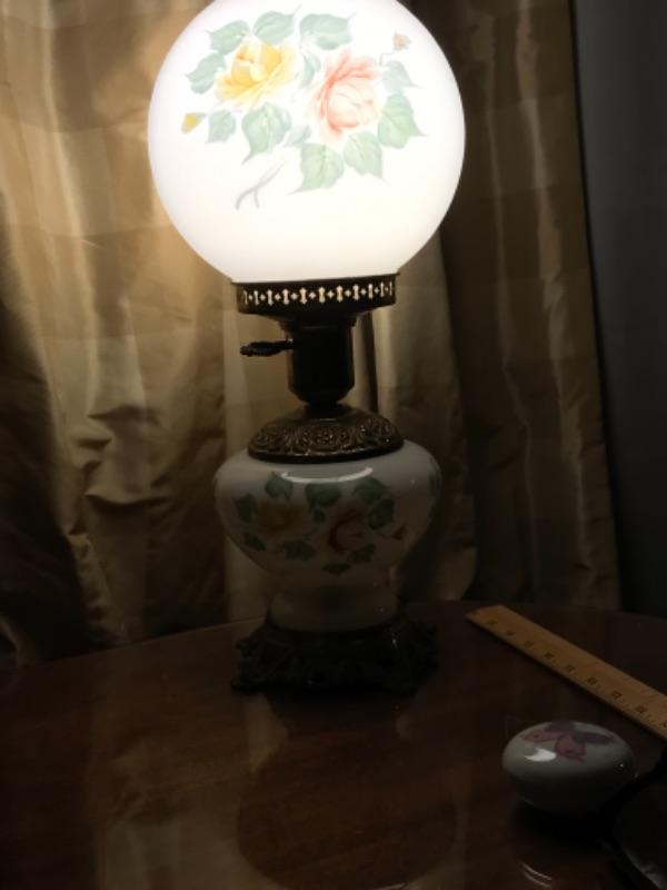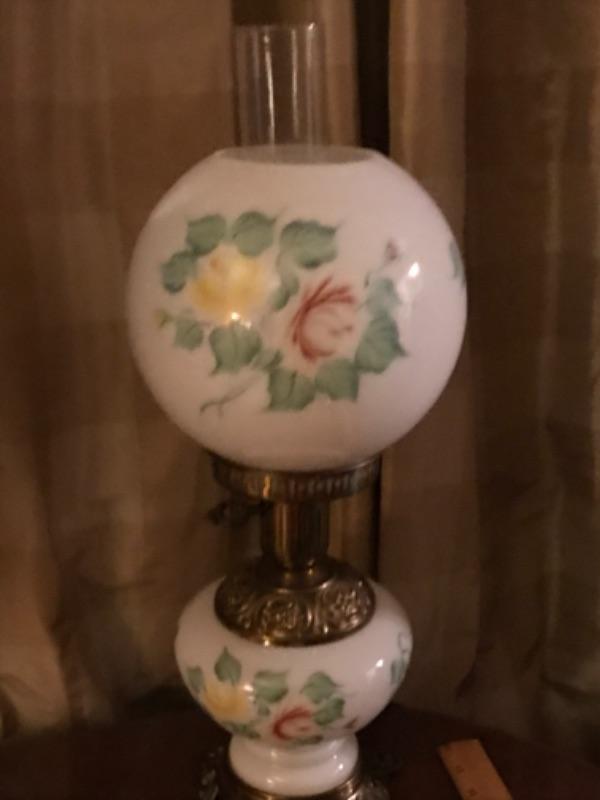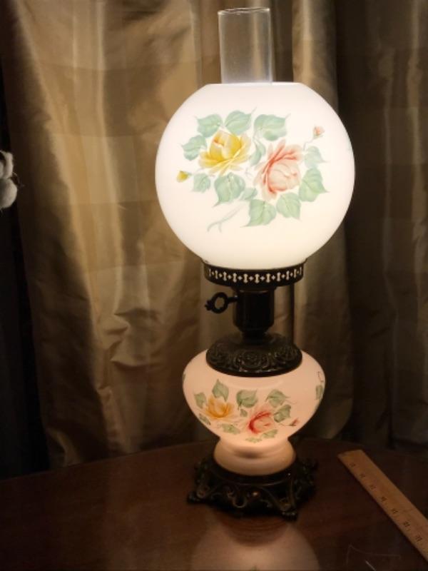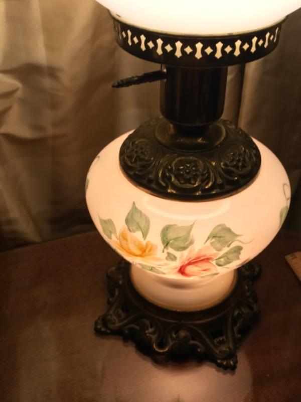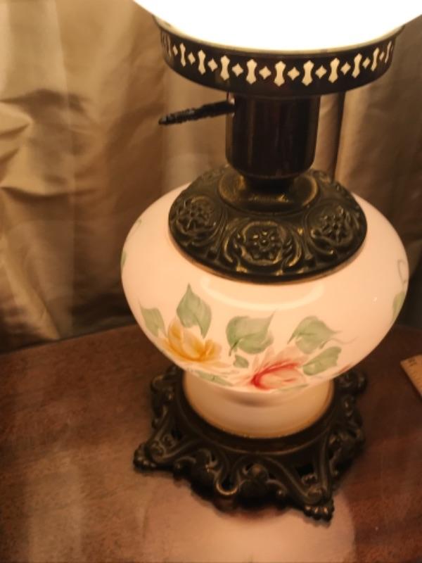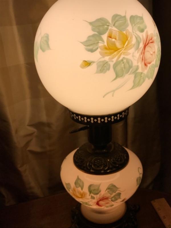 All original Gone With the wind lamp. Three way switch top lights up for the bottom lights up. Just love these lamps this one’s in perfect condition.