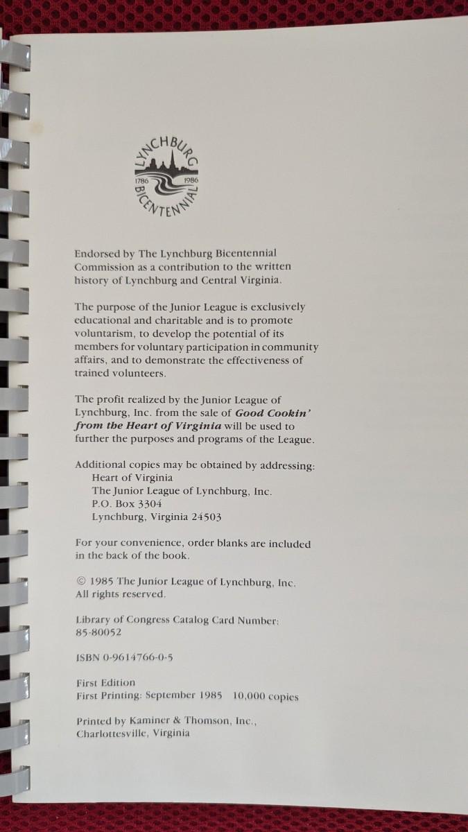 Good Cookin' from the Heart of Virginia Queena Stoval art 1985 First Edition printing Junior League of Lynchburg, Virginia