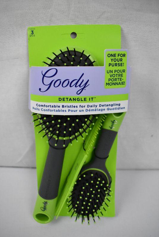 Goody Detangle It Oval Cushion Hair Brush and Comb Combo 3 Piece - New
