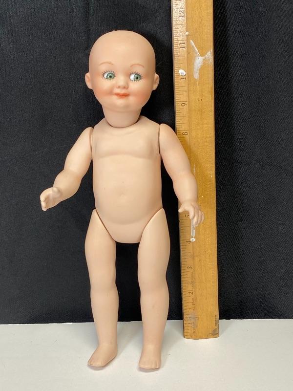 Googly Green Eyed Bisque Jointed Doll Nude Germany 323 A.O.M. YD#020-1220-00602
