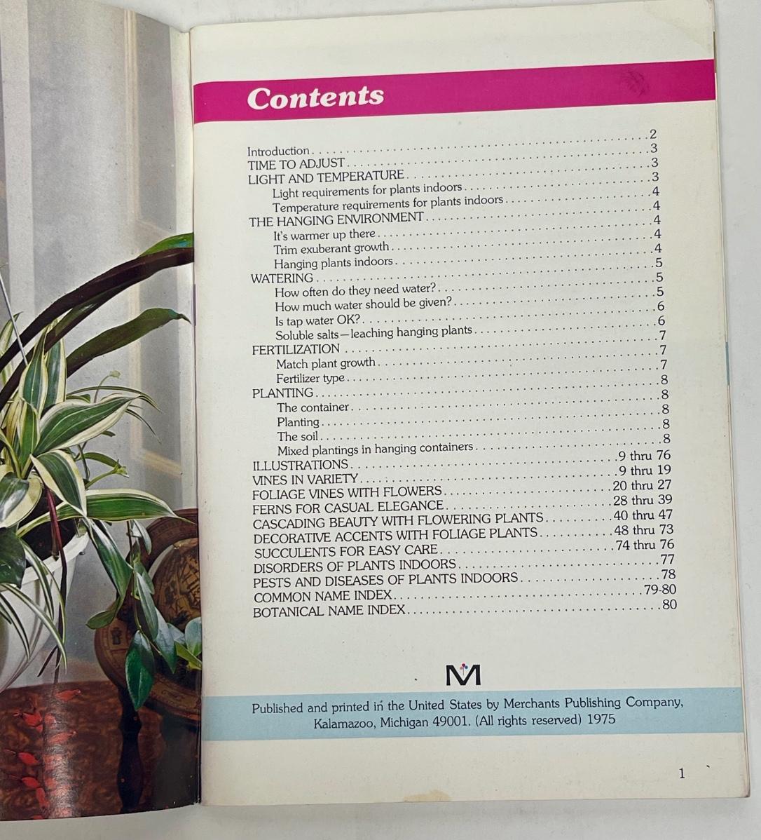 Full color booklet with detailed information about types of hanging house plants, how much light is needed, how much water, etc. Near-new condition.