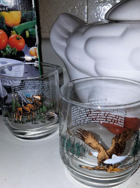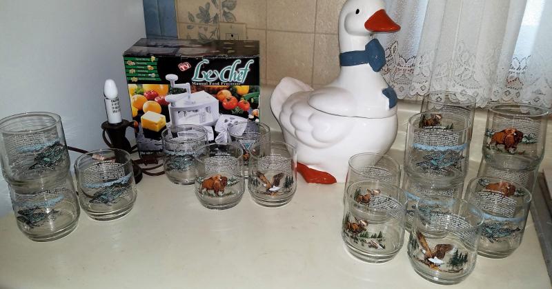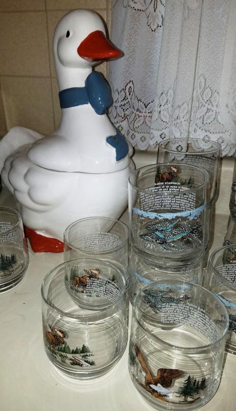 Collection of Wildlife Vintage Rocks Glasses with Kitchen Chopper and Goose Cookie Jar