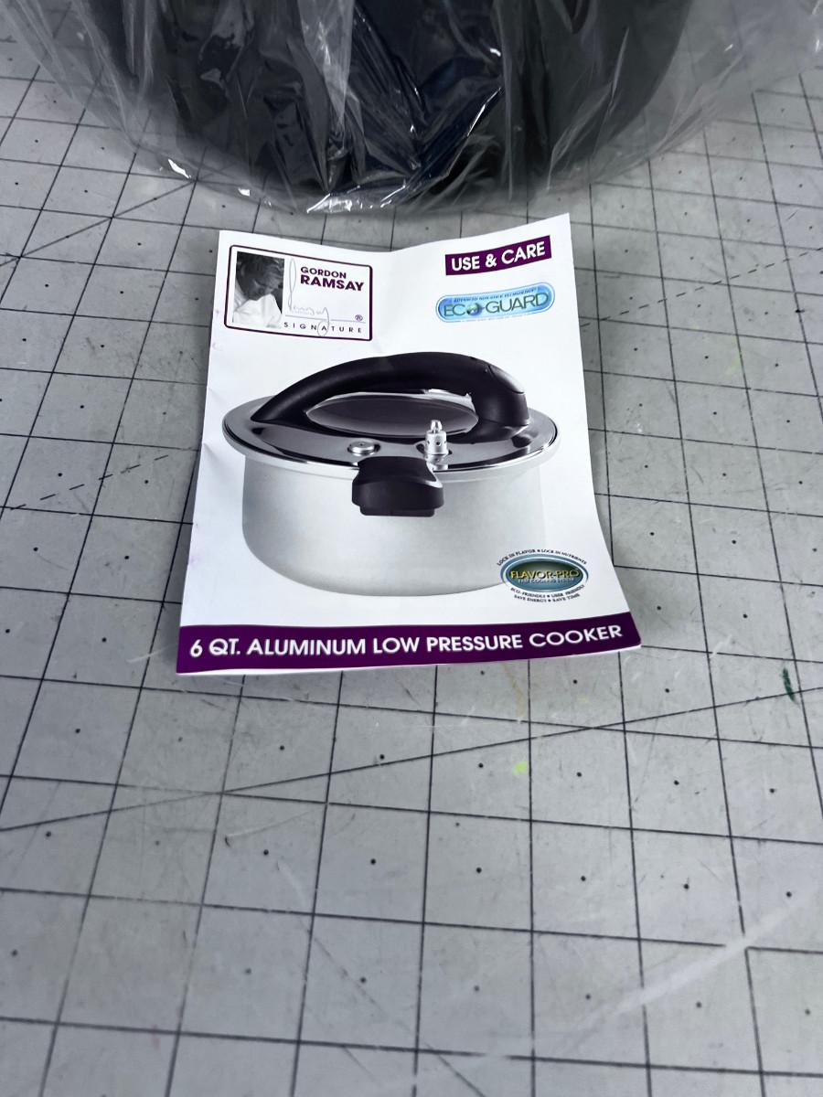 Gordan RAMSEY 6 Quarts Aluminum, LOW PRESSURE Cooker, Brand NEW in the Box Complete