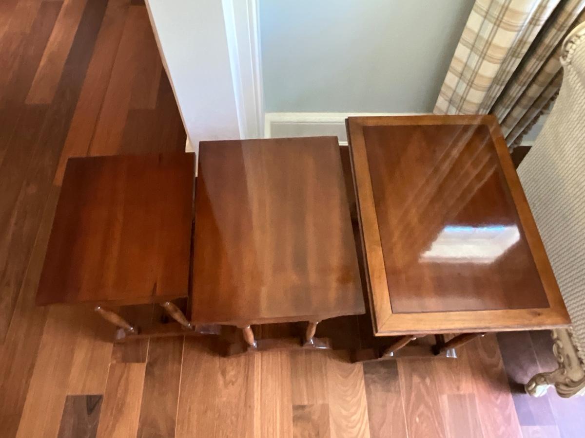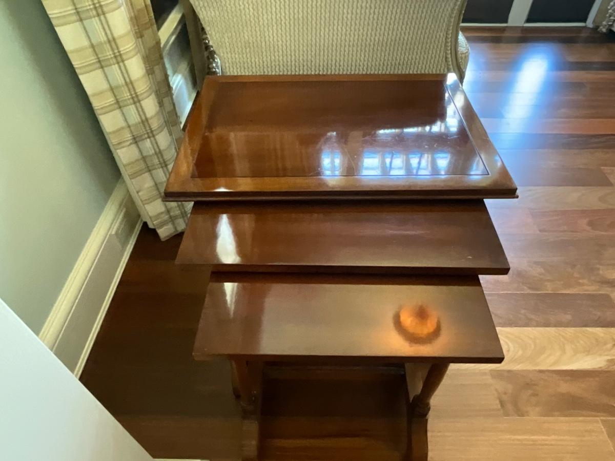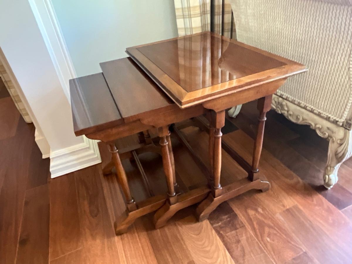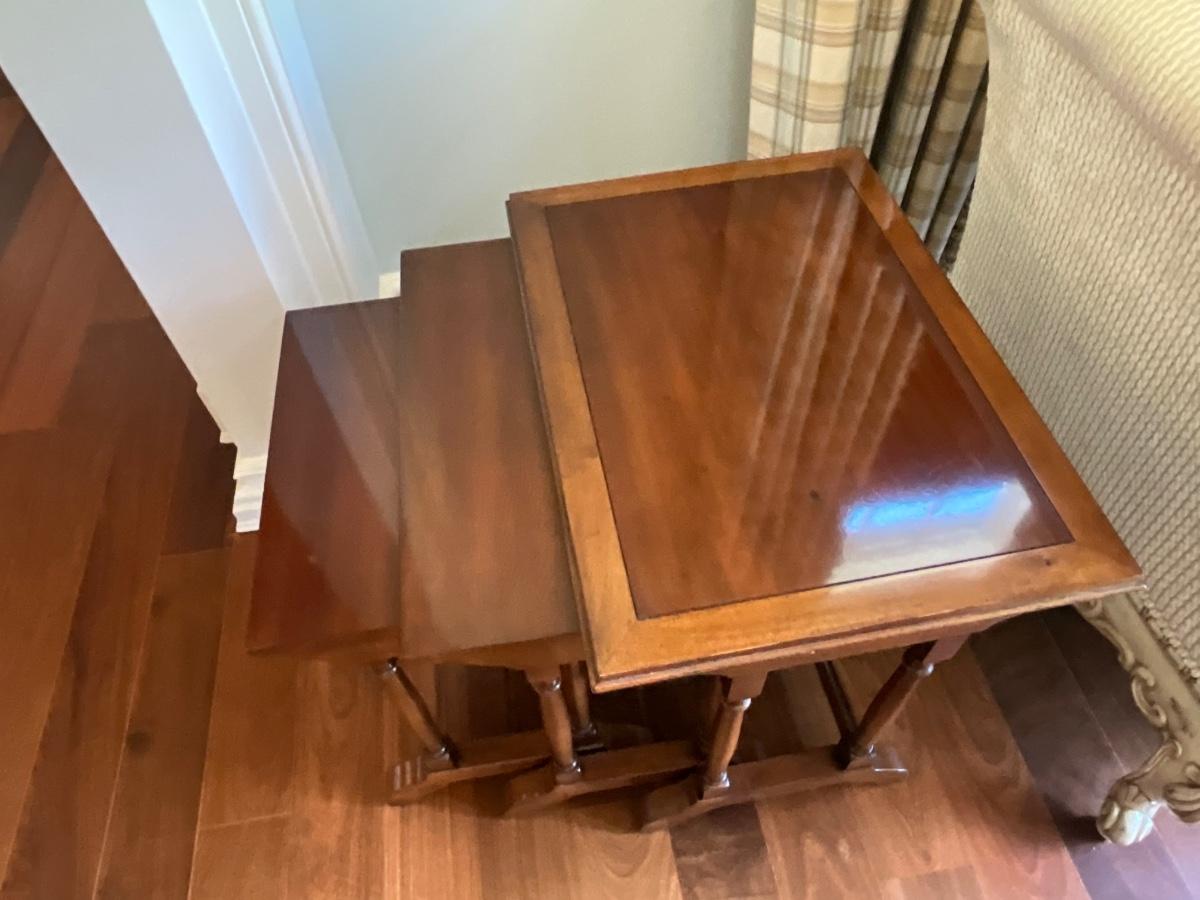 Gordon’s fine furniture nesting table is 18” x 25” and 23.5 inches tall