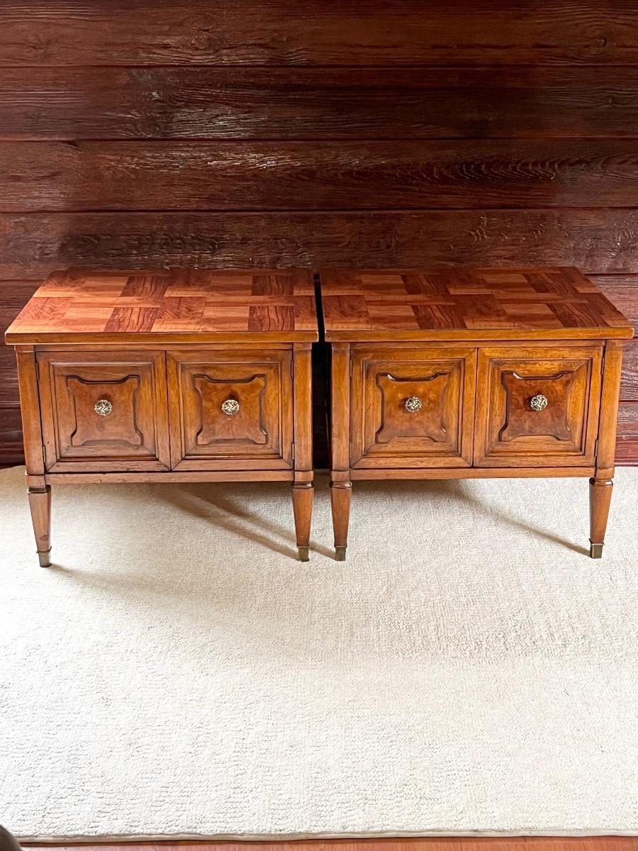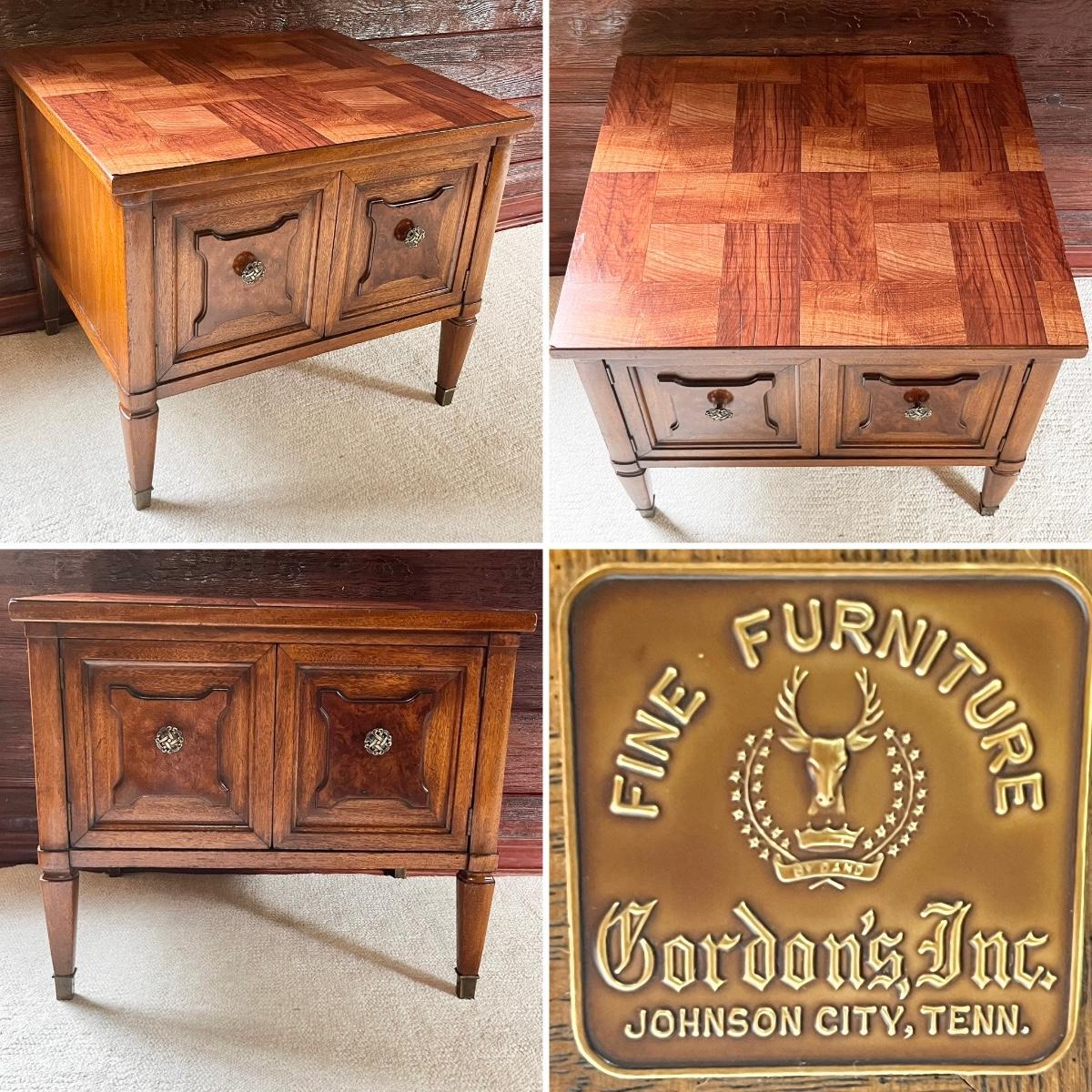 GORDONS INC. ~ Pair (2) ~ Solid Wood Inlaid Side Tables