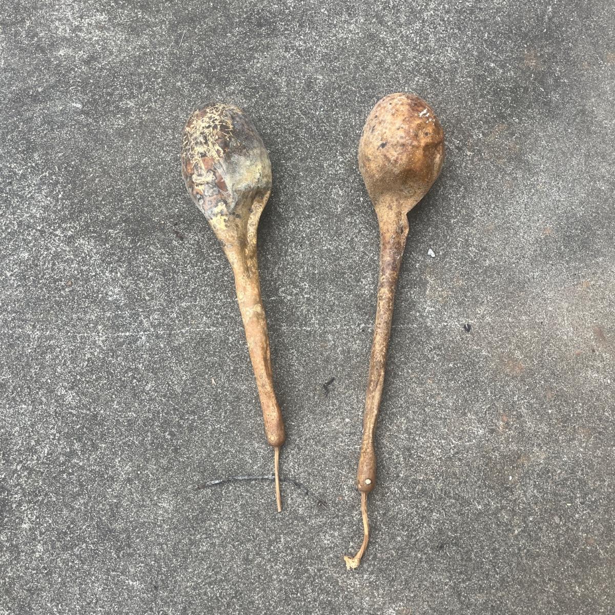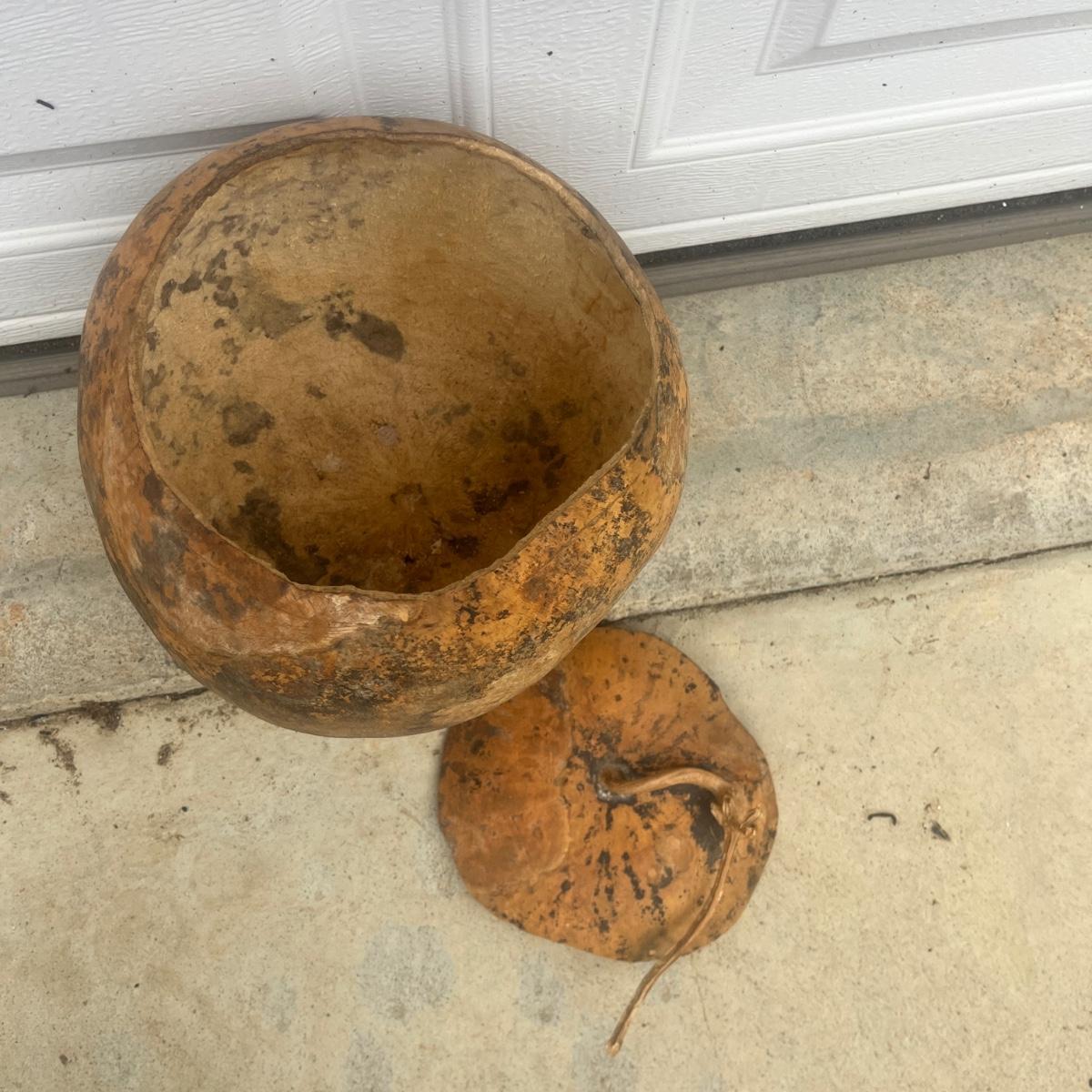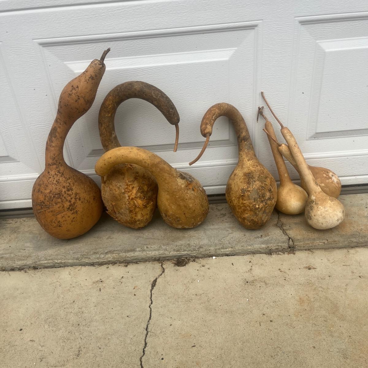 Lot includes over 30 gourds in many varieties, including dipper. Often used for seasonal decor and arts and crafts, like birdhouses. The tallest gourd measures 8”D x 18”H. These were likely grown onsite in the spacious gardens. They were drying in the rafters of the garage. There are some that could probably use another season to finish drying out. Please see photos for details. They will be bagged up for the buyer.
