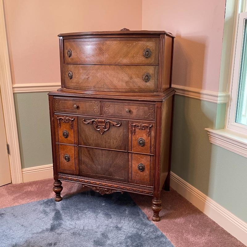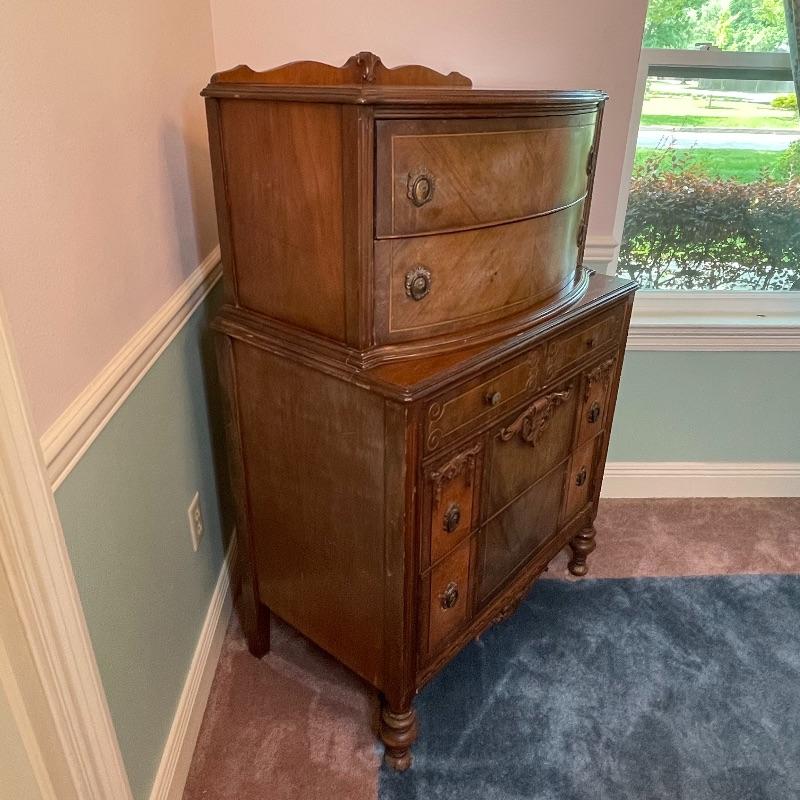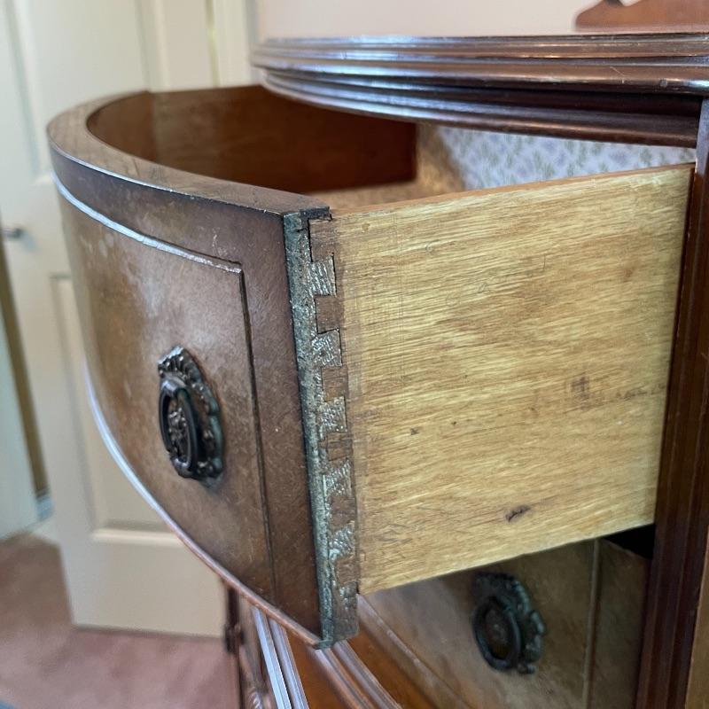 All drawers glide easily. 1 piece. Needs some restore, Polish. No damage