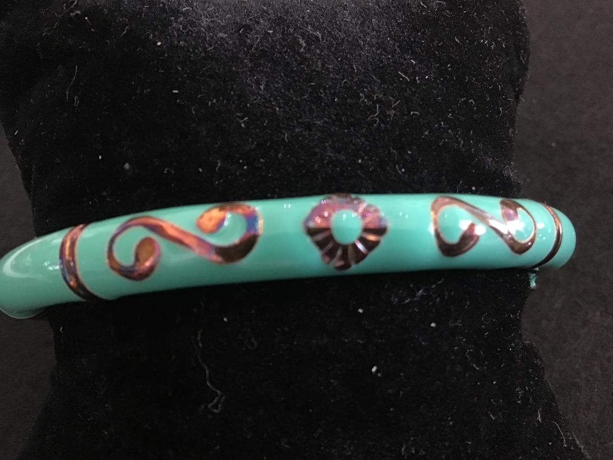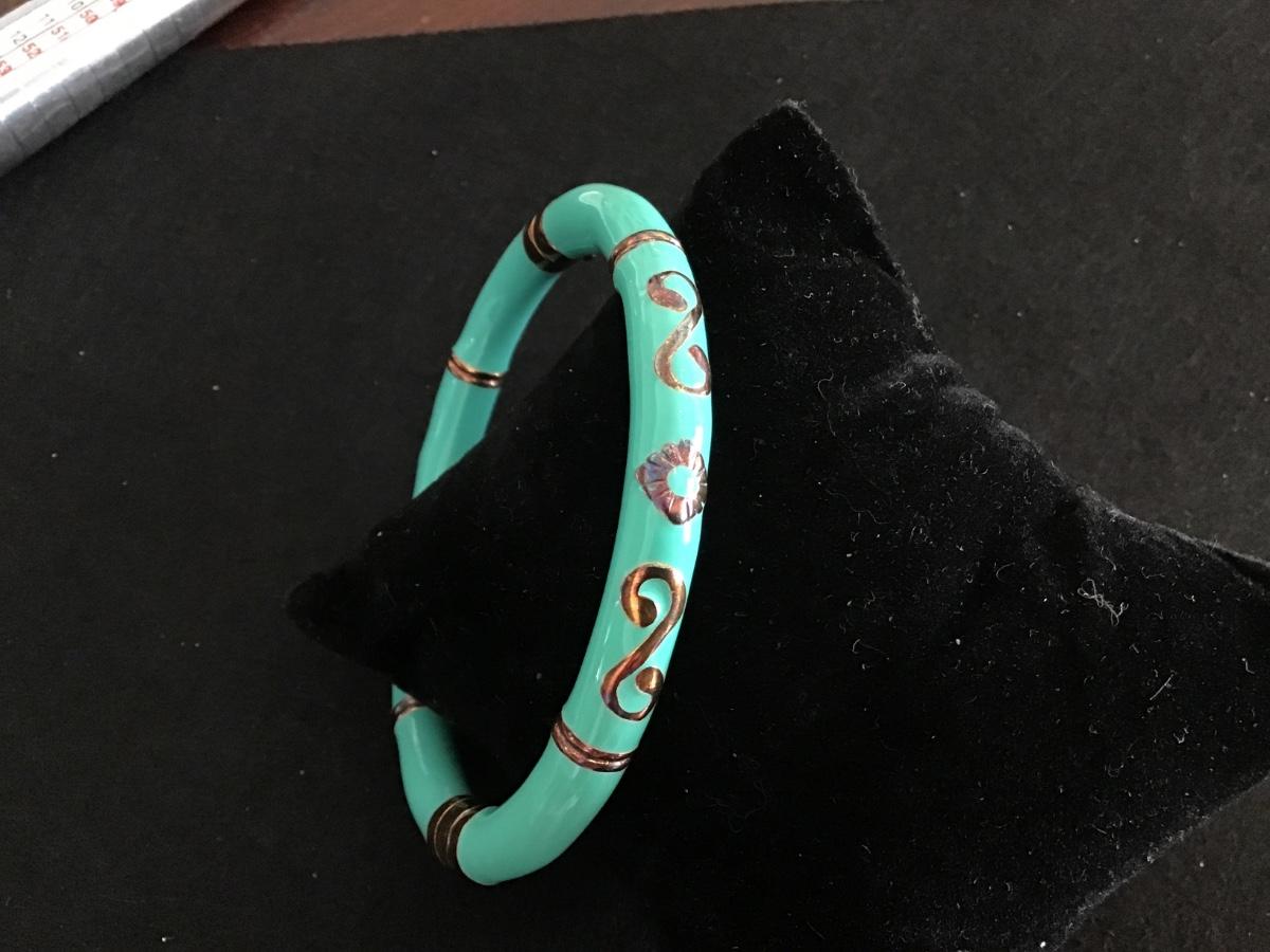 Gorgeous 925 Italy Silver. Gold Plated Turquoise Enamel Locking Bracelet