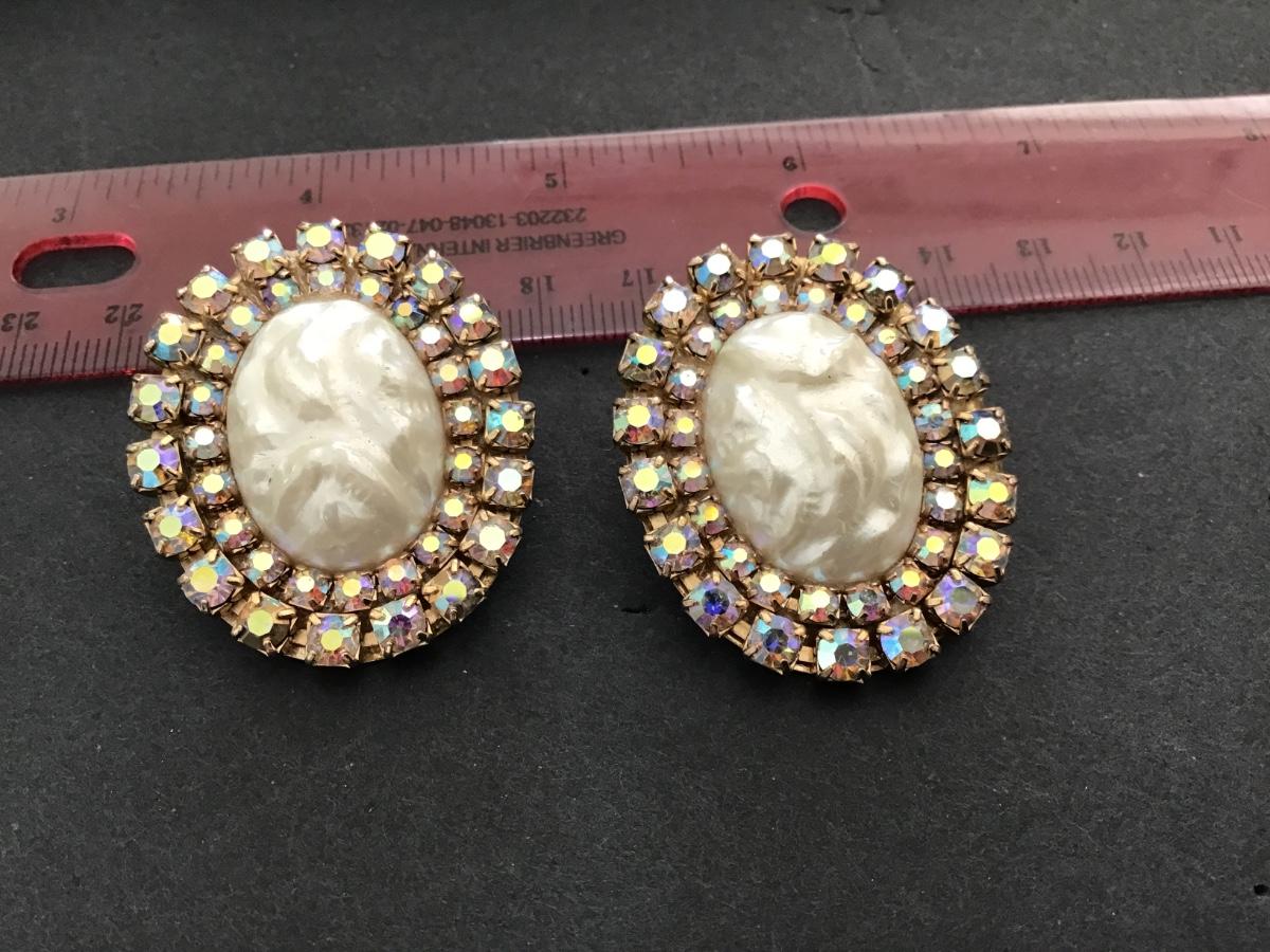 Gorgeous Alert. Faux Baroque Pearl Aurora Borealis Large Statement Earrings