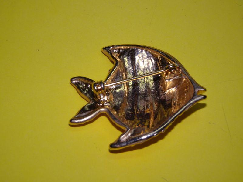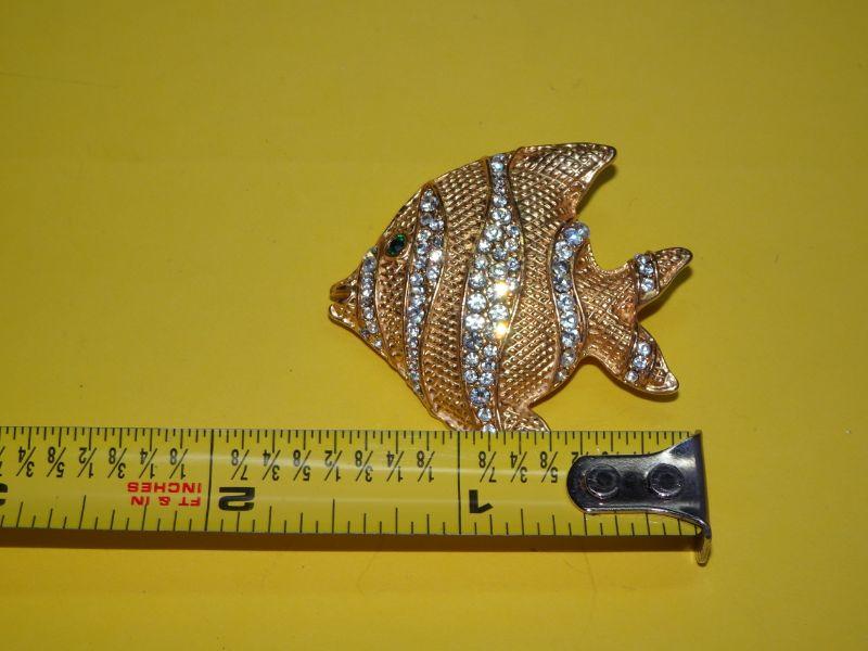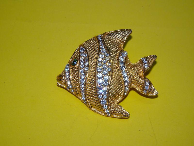 Gorgeous Angel Fish Brooch, Green Eye, Gold & Rhinestone
