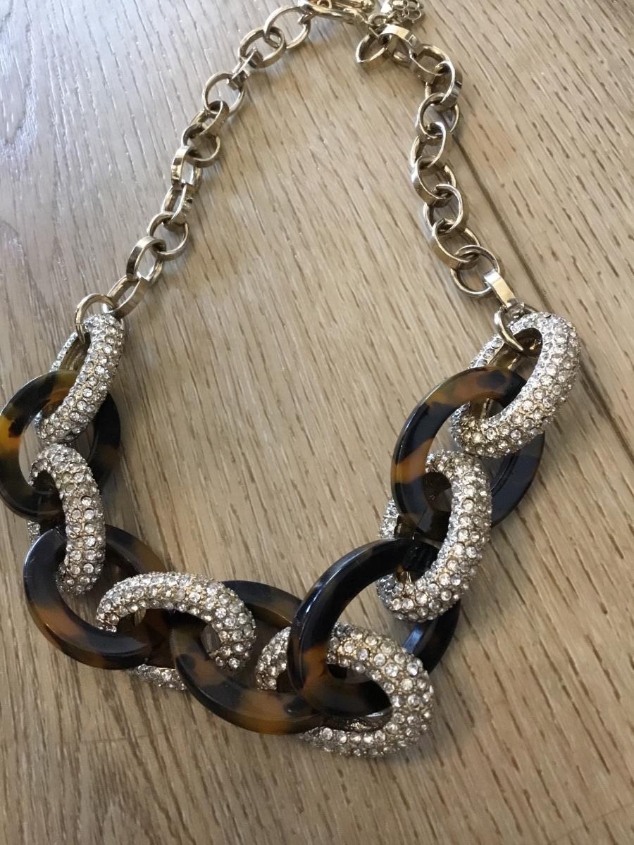 Gorgeous Ann Taylor faux tortoiseshell, rhinestone encrusted, chain-link statement, toggle necklace very nice very beautiful