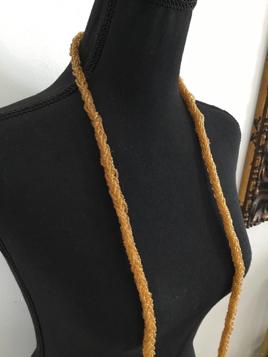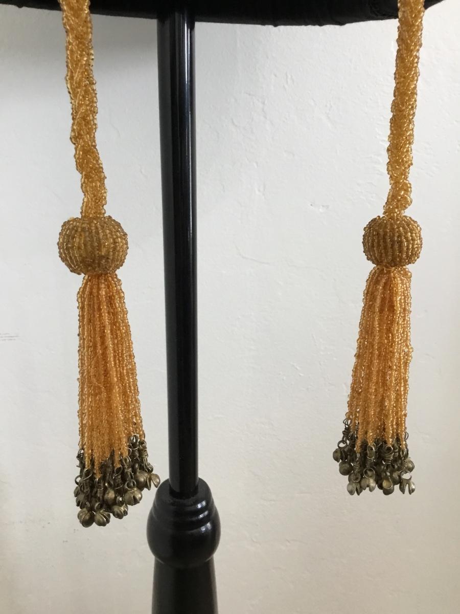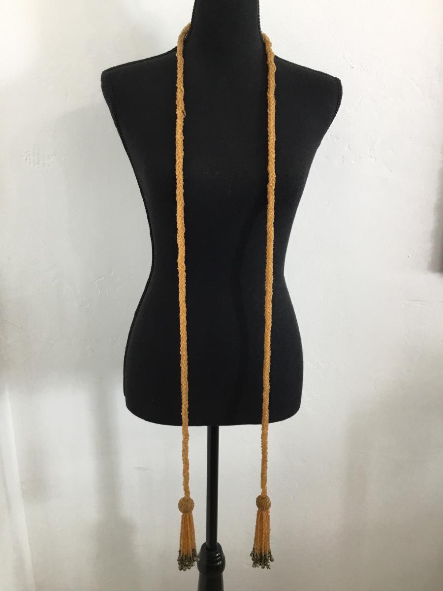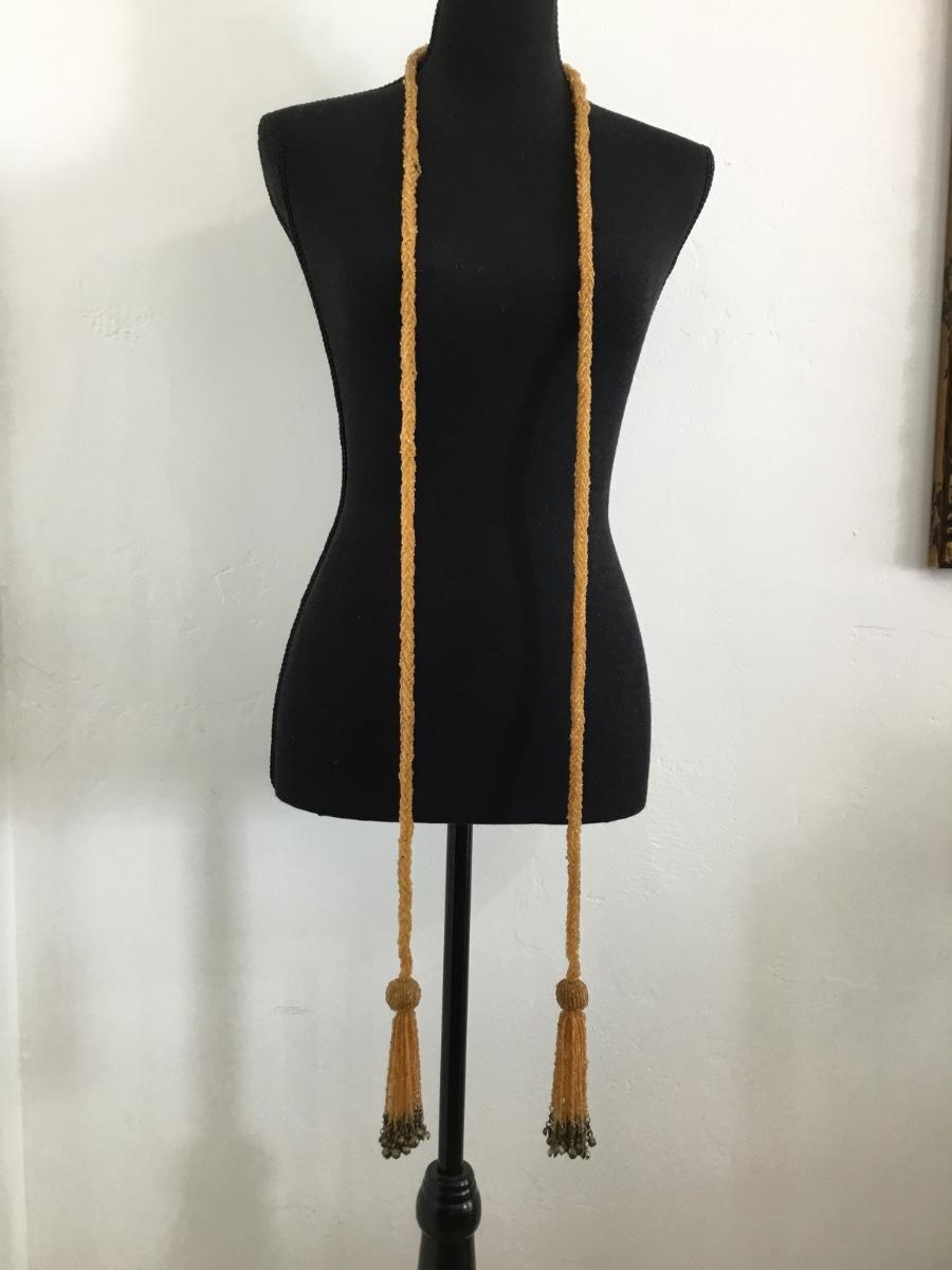 Gorgeous antique amber glass, beaded tassel, bell scarf, necklace