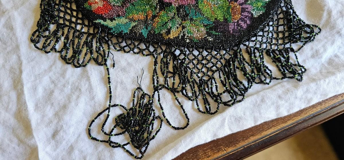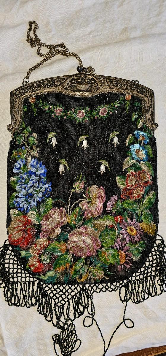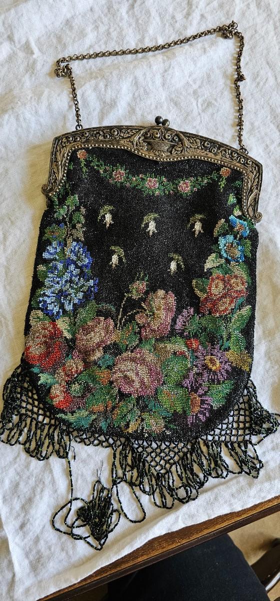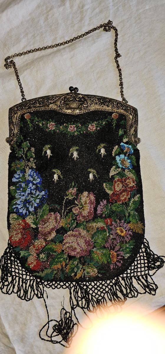 Antique glass bead purse