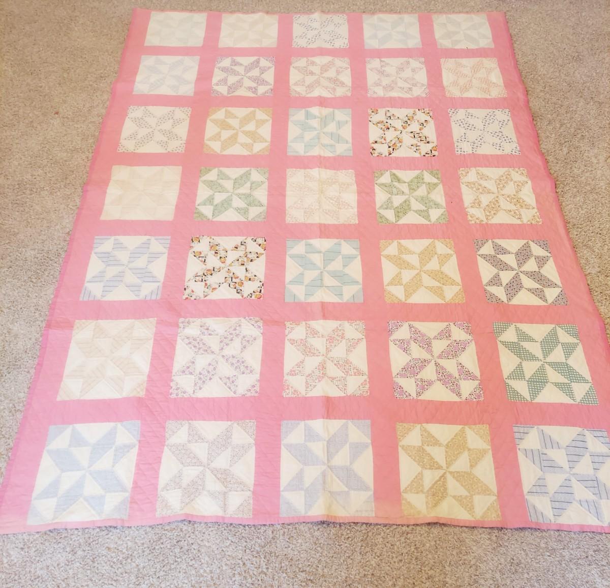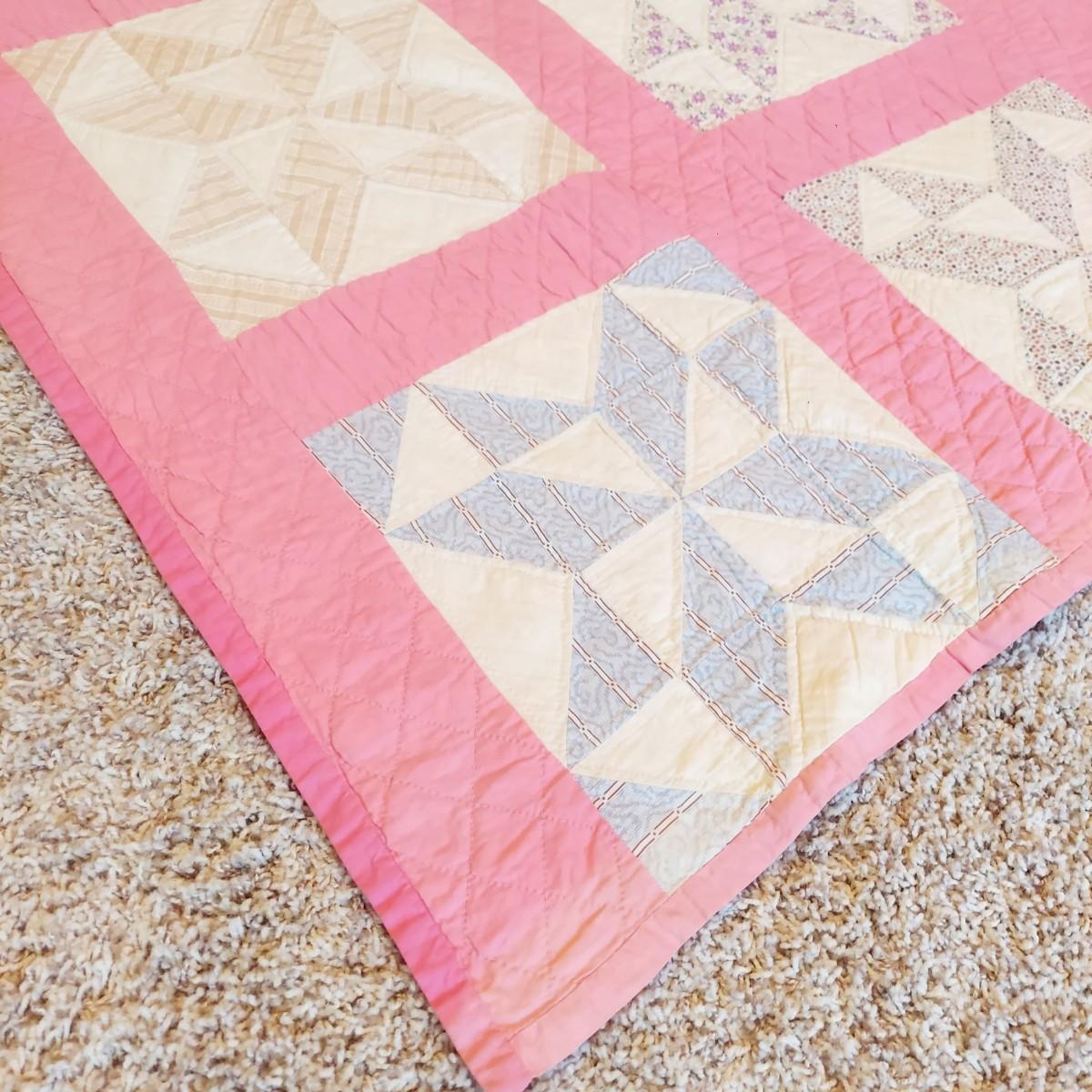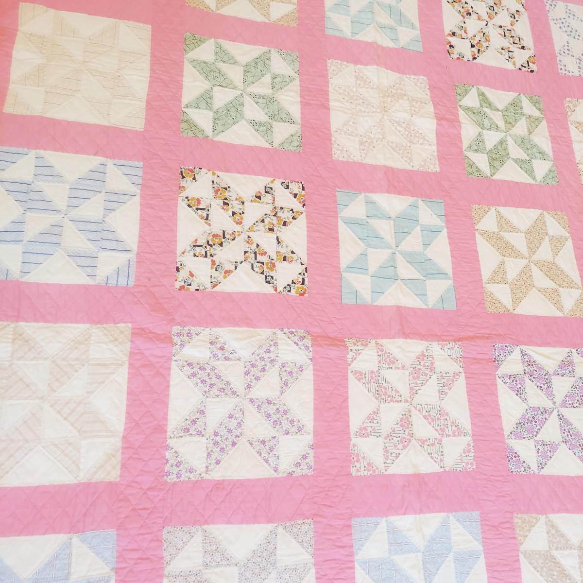 GORGEOUS ANTIQUE HAND STITCHED PINK QUILT