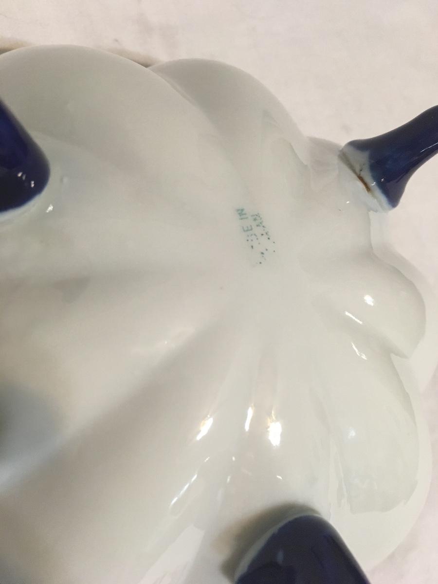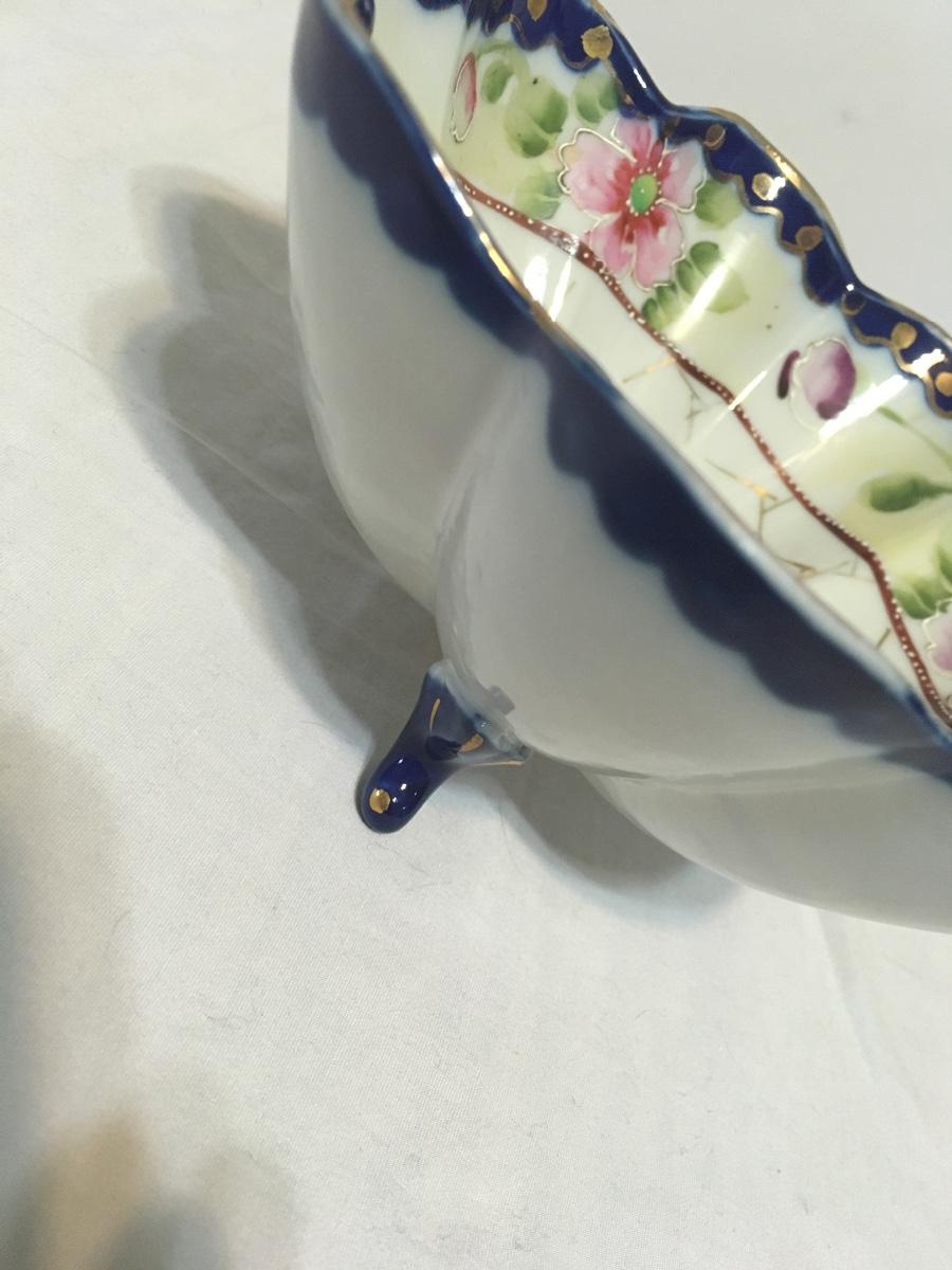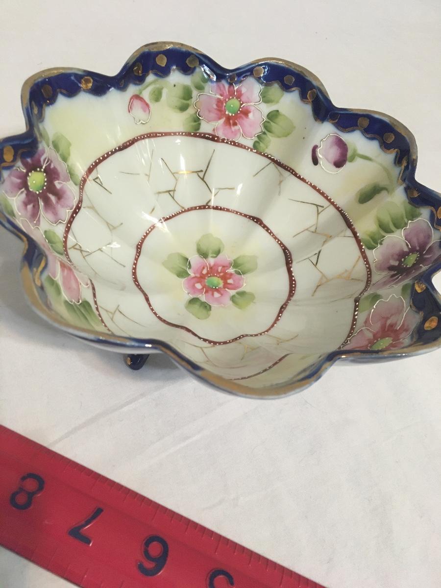 Gorgeous antique handpainted scallop bowl gold trim raised