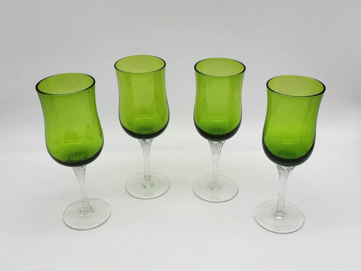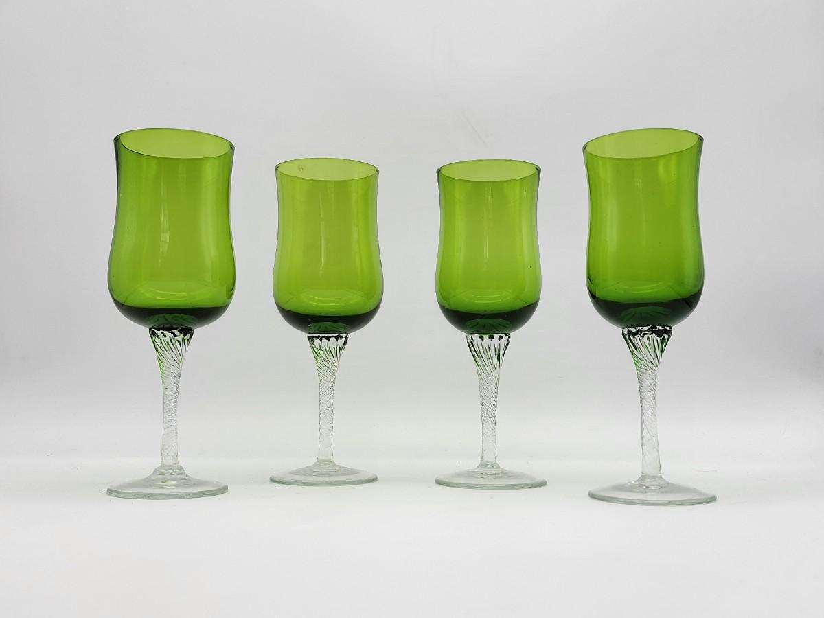 These are gorgeous! Lot of 4 wine glasses with swirled stems.
