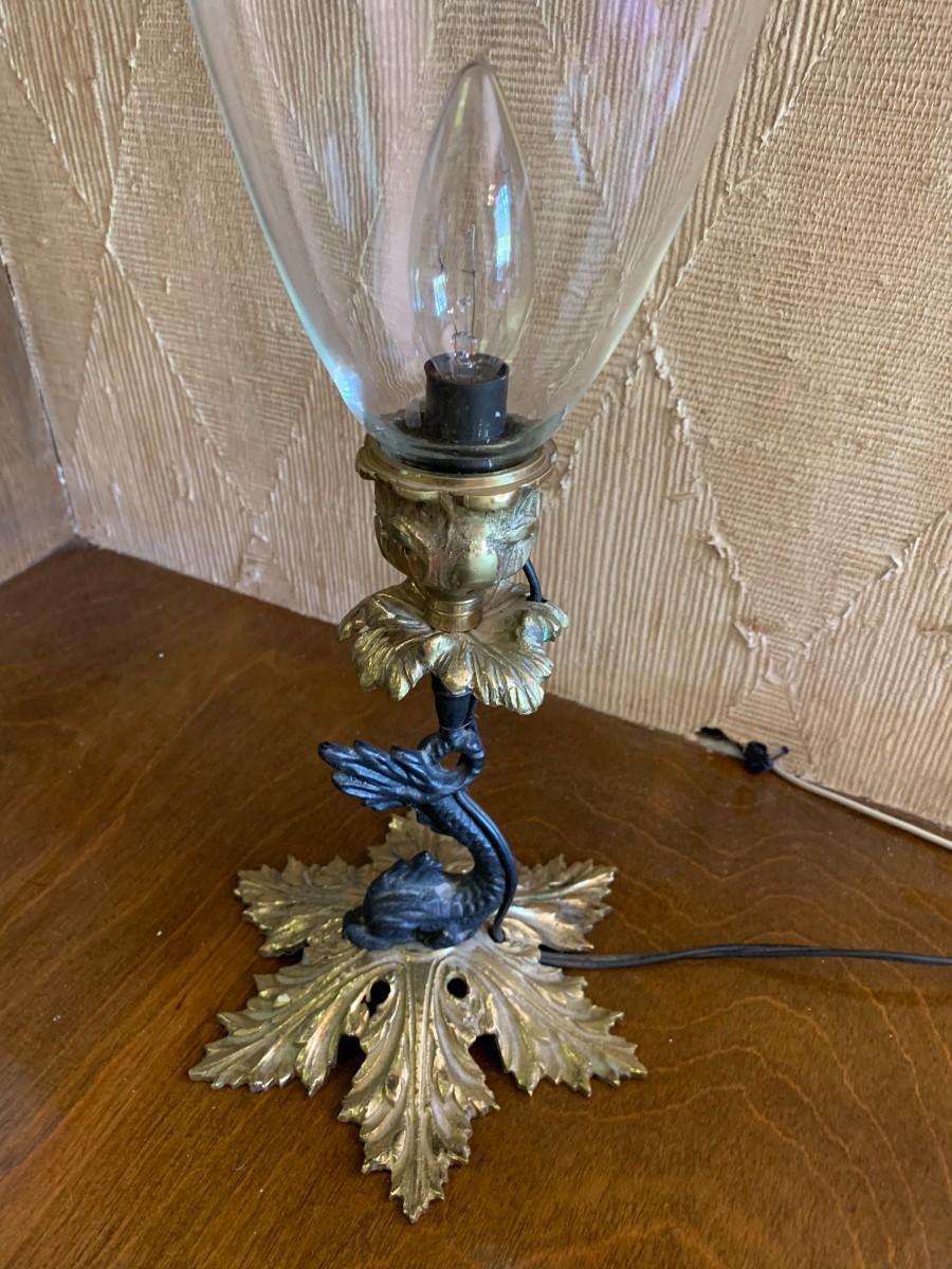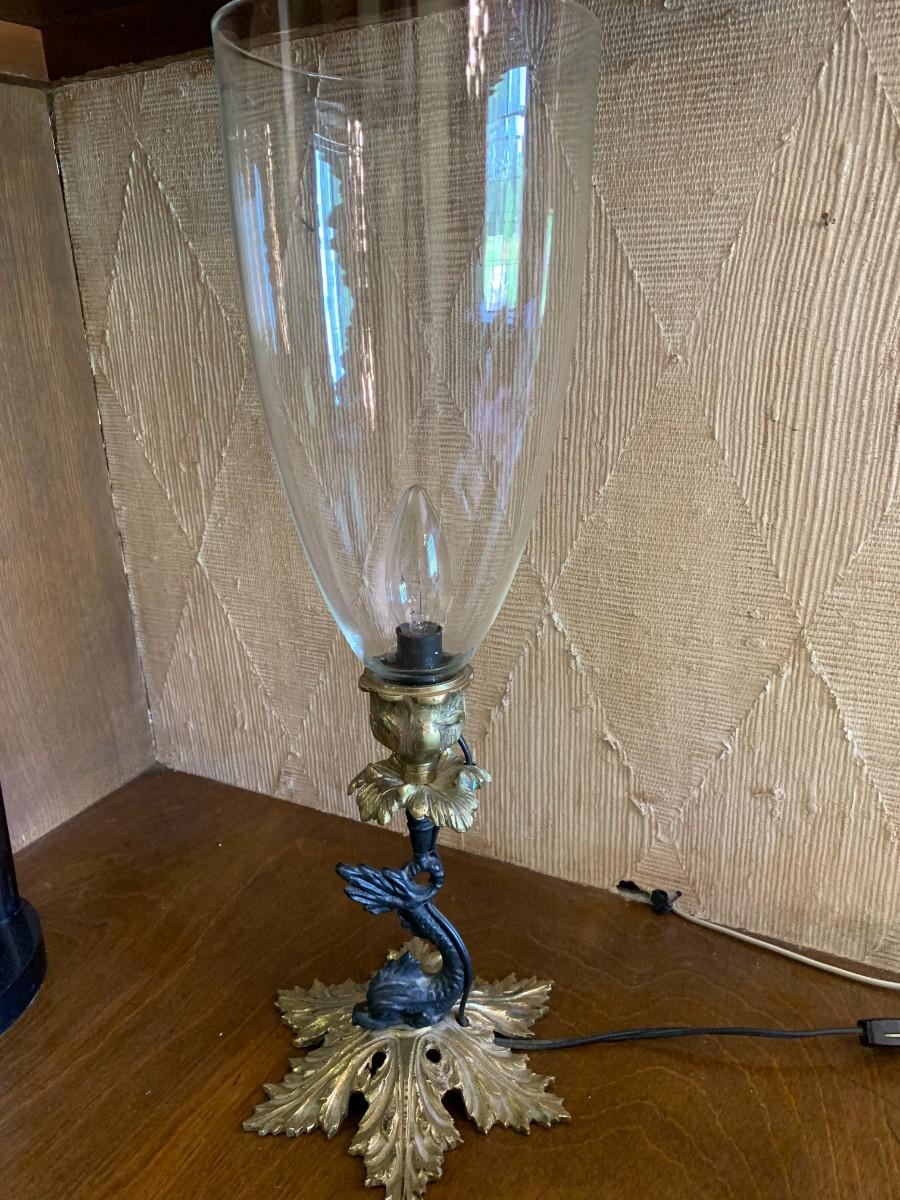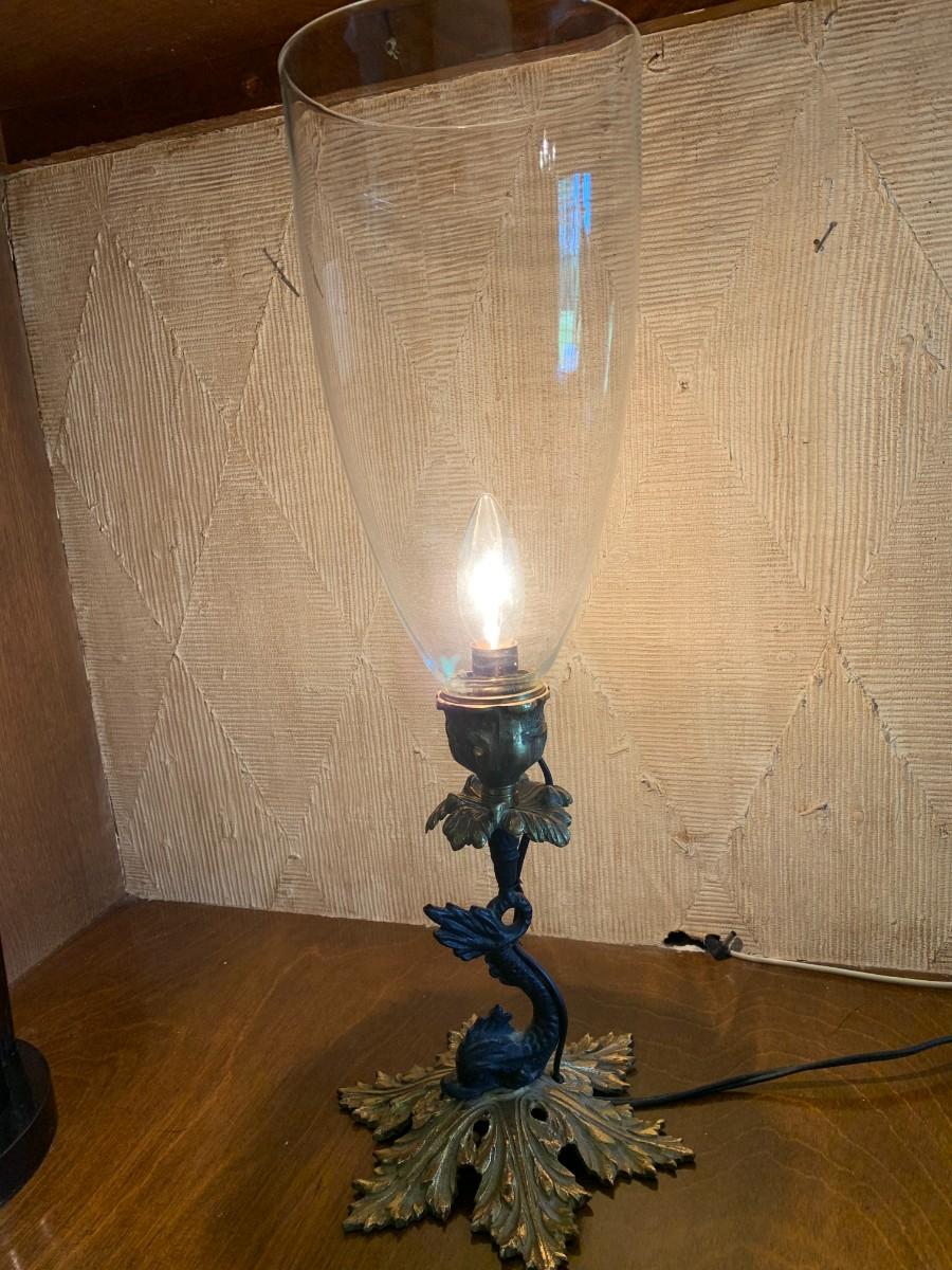 Measuring 21" tall, this antique lamp will bring elegance to any room.