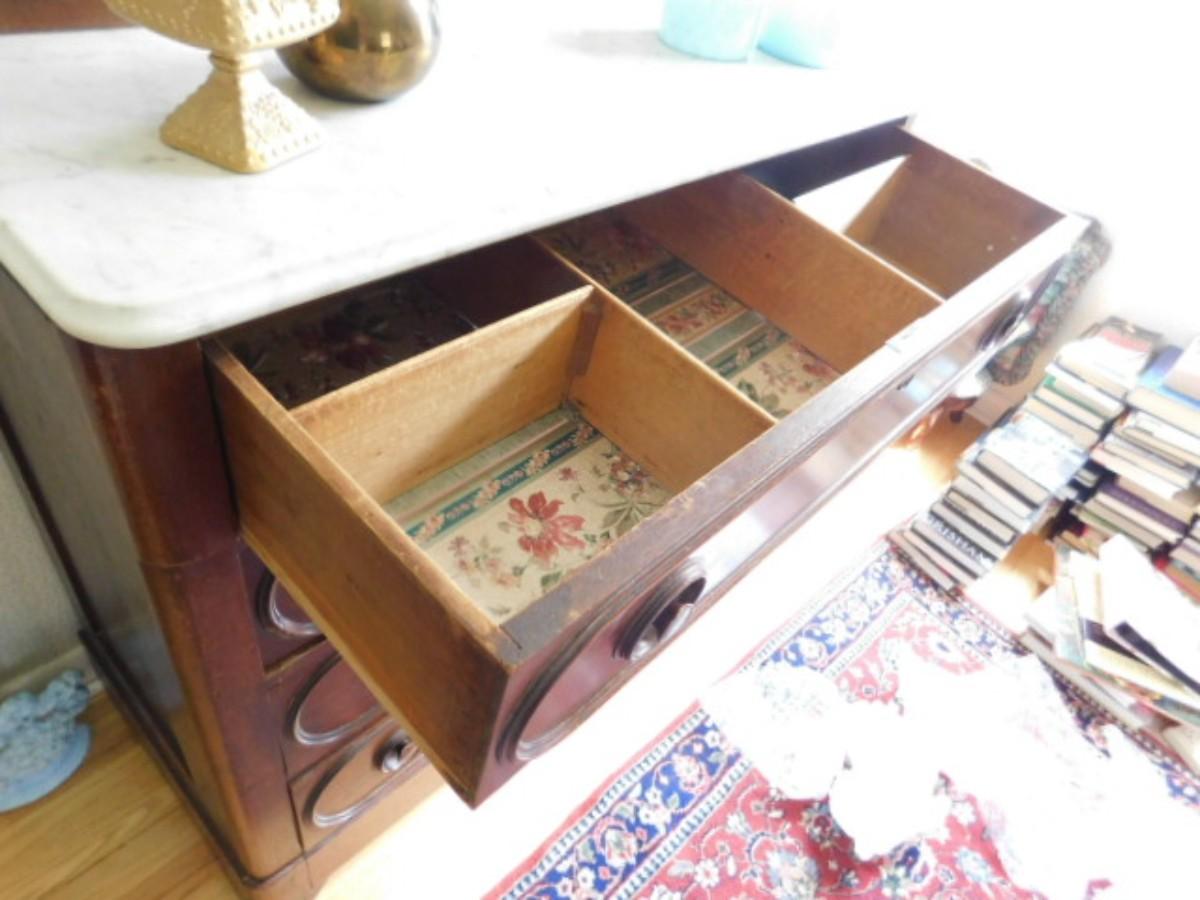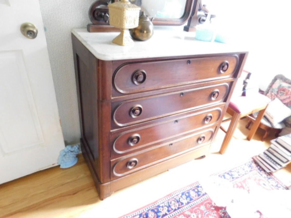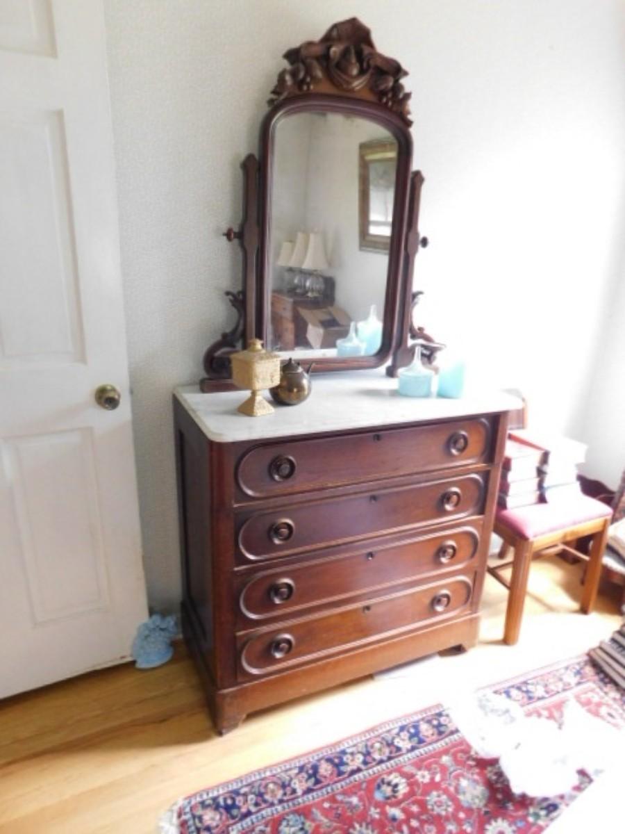 Gorgeous Antique Solid Wood Finish Dresser and Mirror with Marble Top