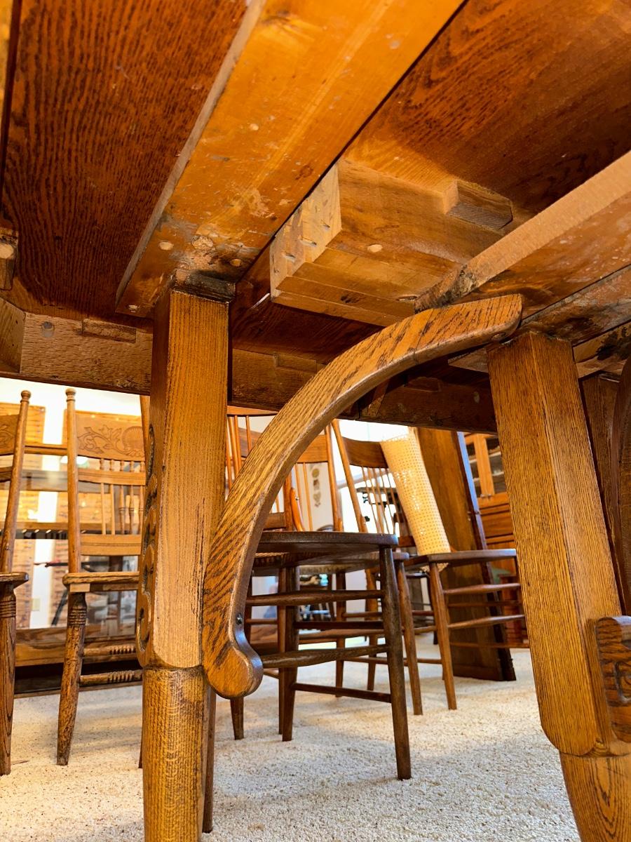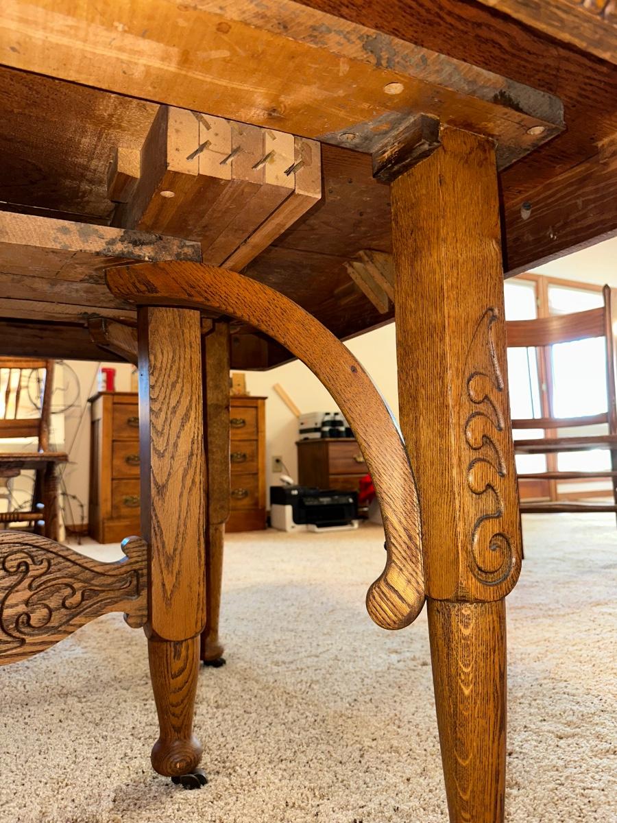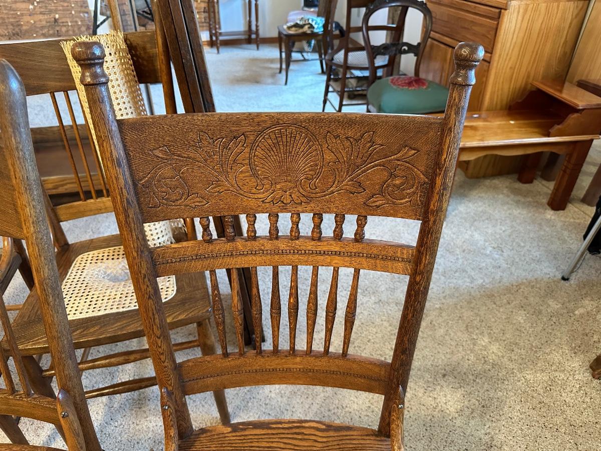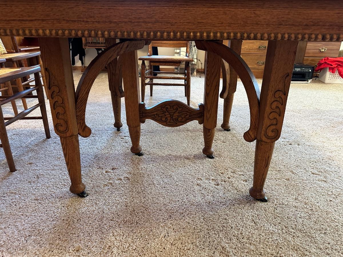 GORGEOUS ANTIQUE TABLE WITH 4 LEAVES AND 8 CANE SEAT CHAIRS