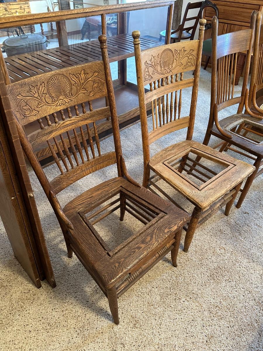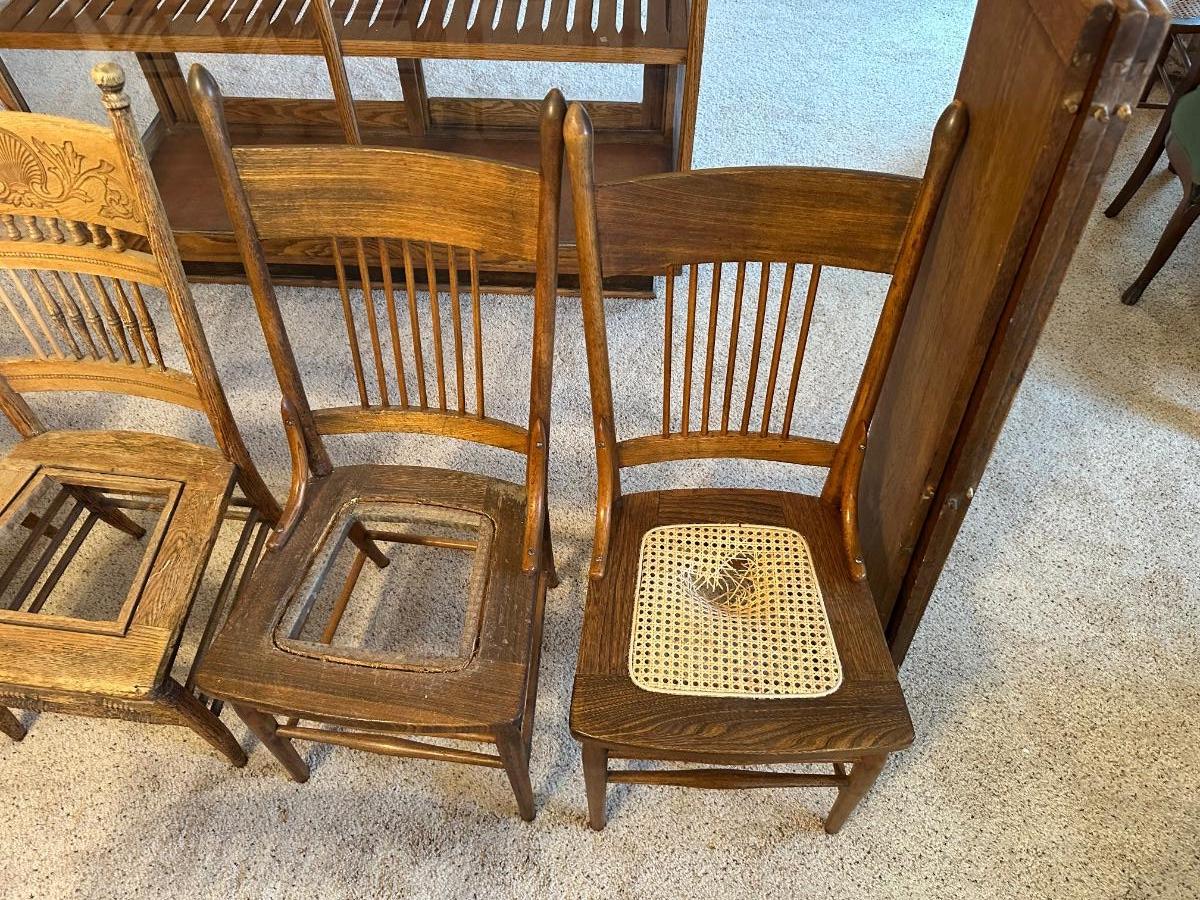 THERE ARE 2 STYLES OF CHAIRS AND THE CANE NEEDS TO BE REPLACED IN A FEW OF THEM
