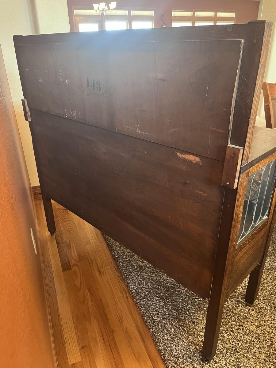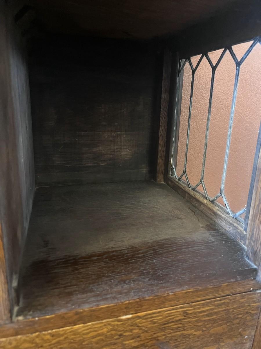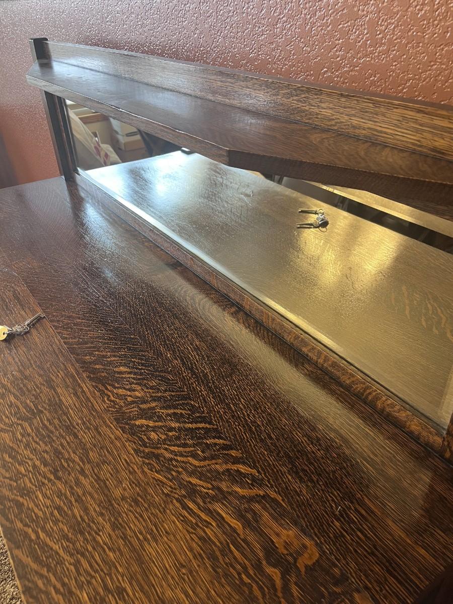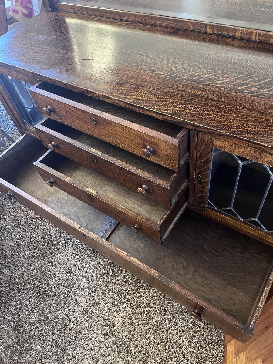 GORGEOUS ANTIQUE TIGER OAK, QUARTER-SAWN, MIRRORED BACK SIDEBOARD OR BUFFET WITH LEADED GLASS DOORS
