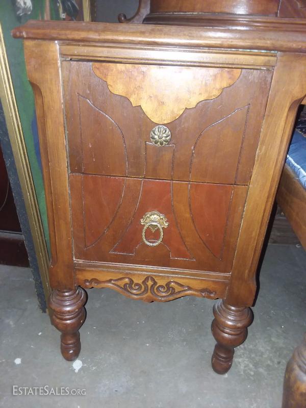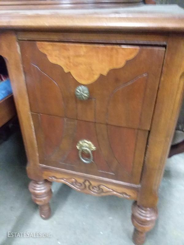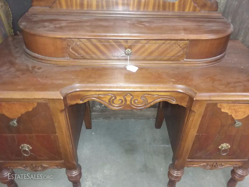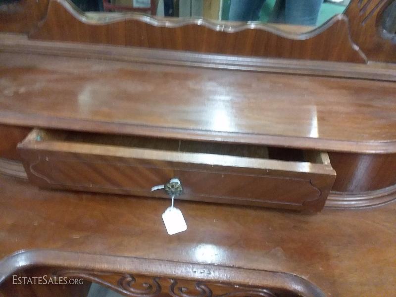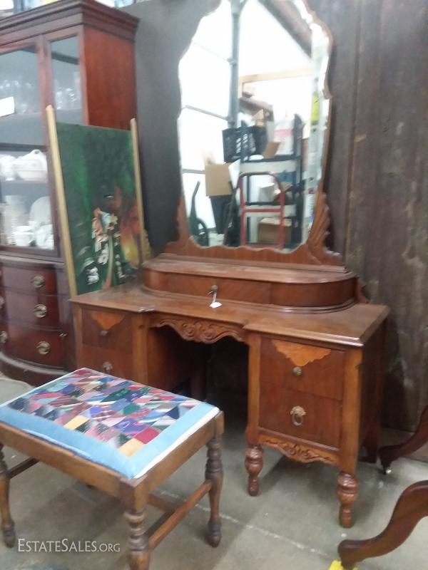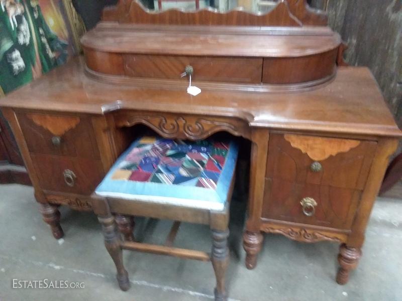 Antique Vanity with bench, Walnut measures 43.5"length x18" width x 70" high/tall