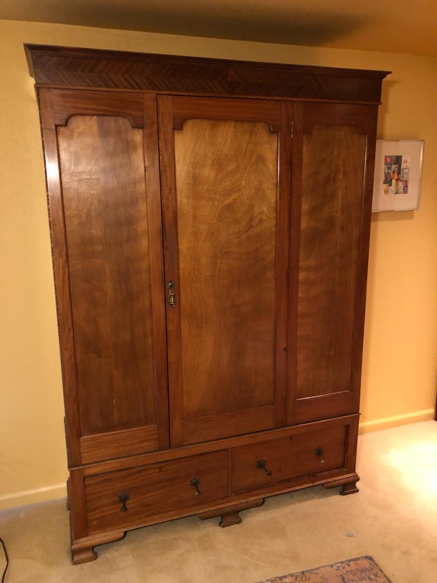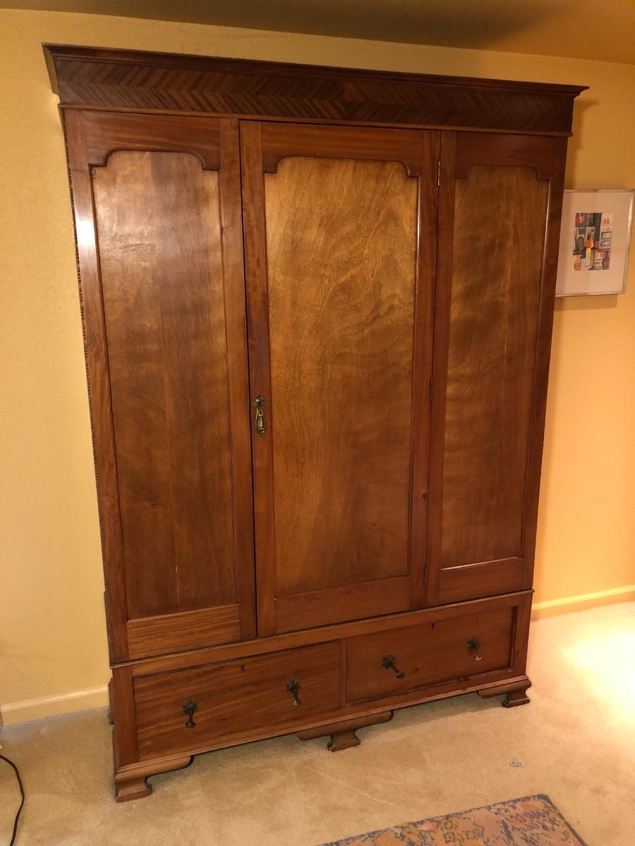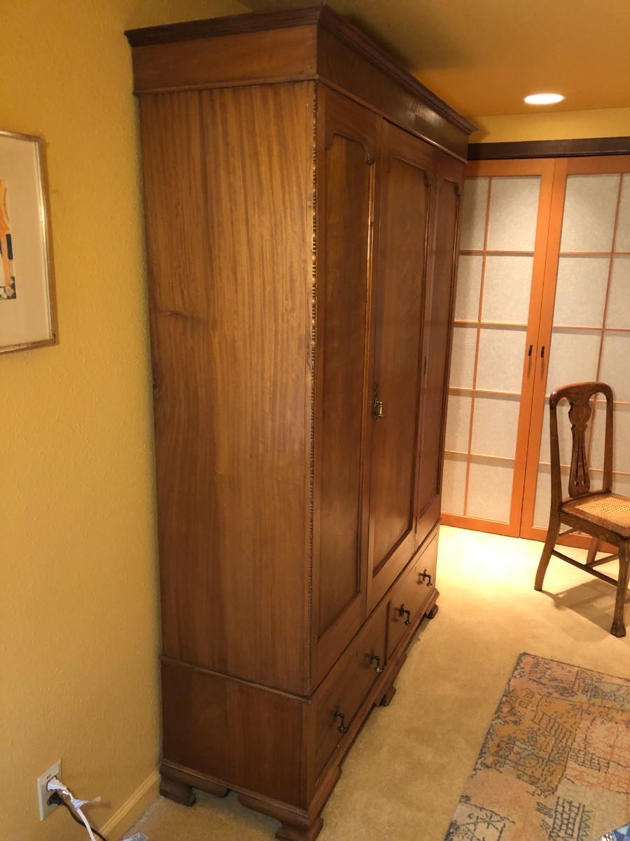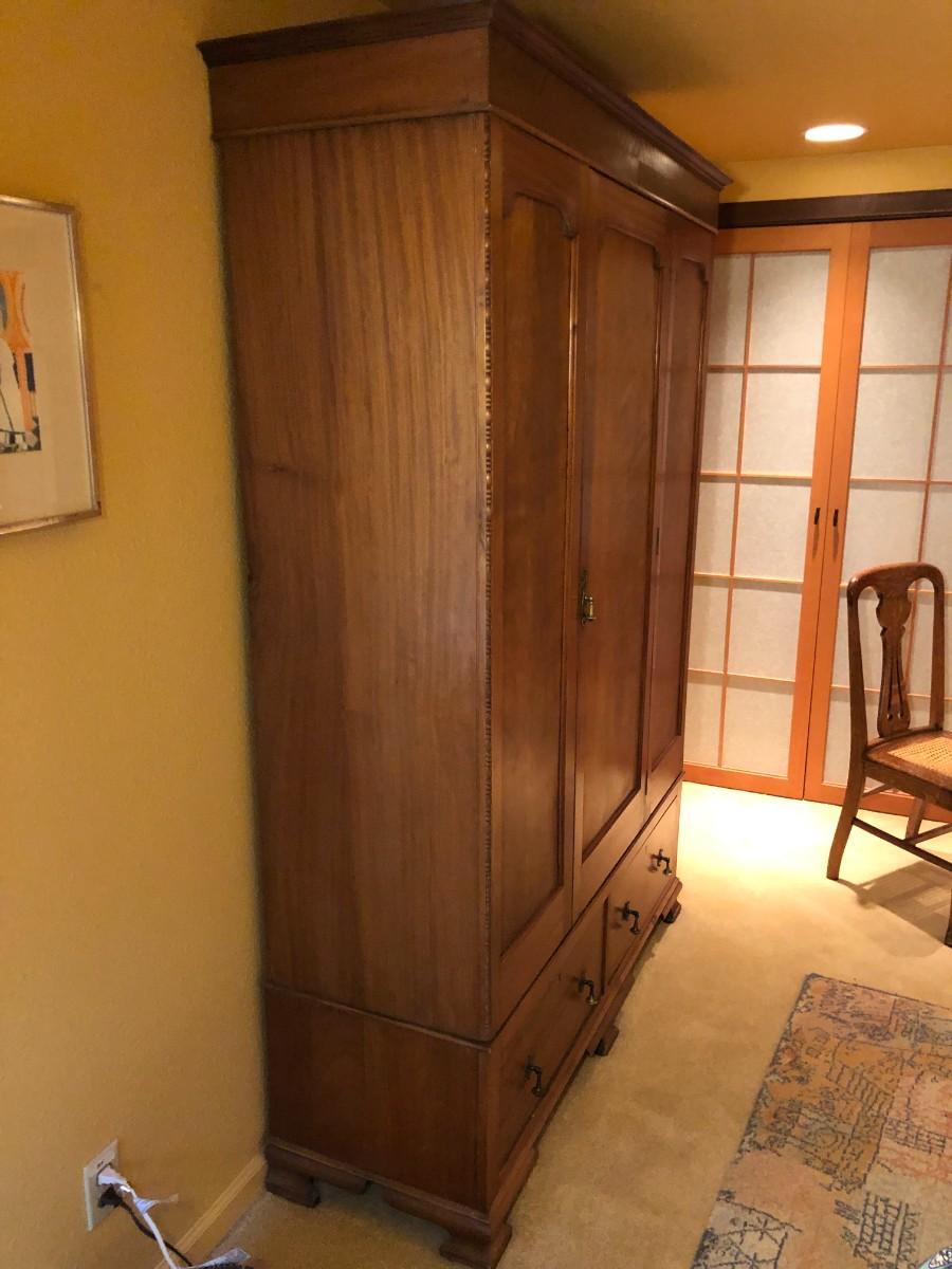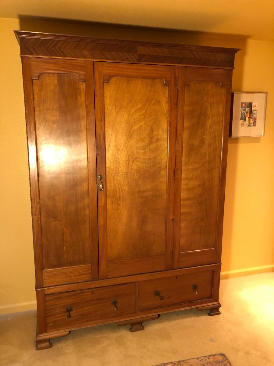 Gorgeous Antique Wood Armoire with Clothes Hanging Rack and Drawers