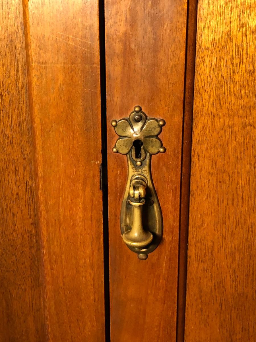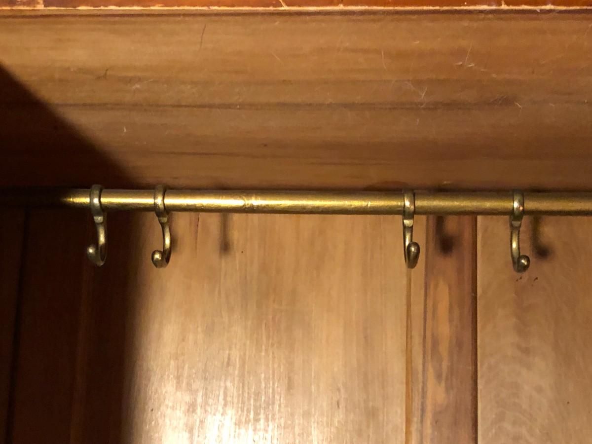Gorgeous Antique Armoire with Clothes Hanging Rack and Drawers. Original clothes hooks. Beautiful wood. In very good condition.