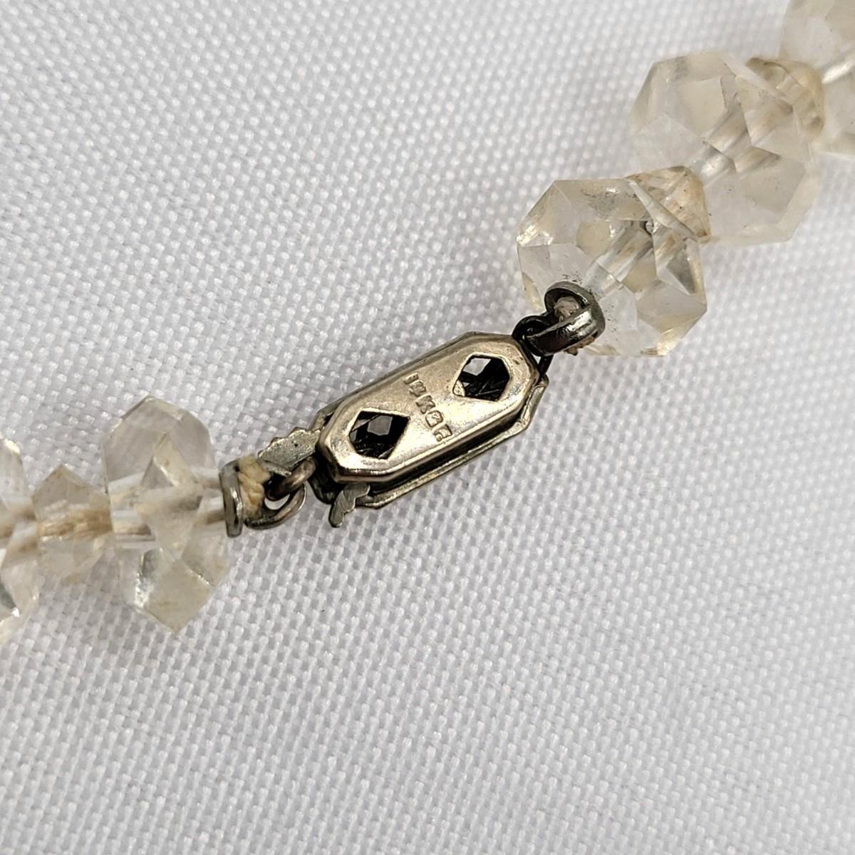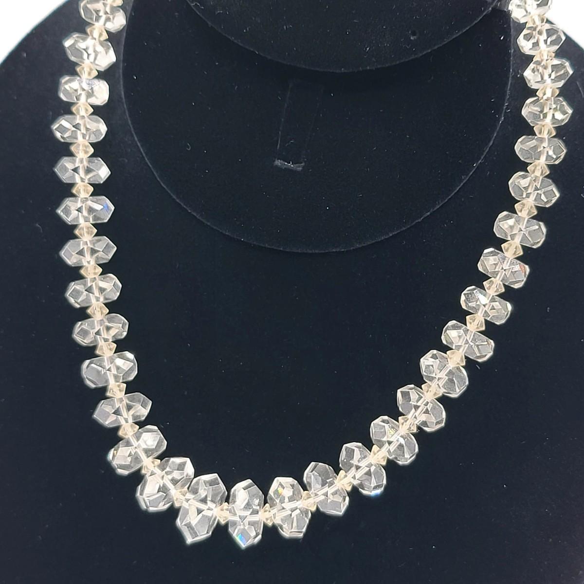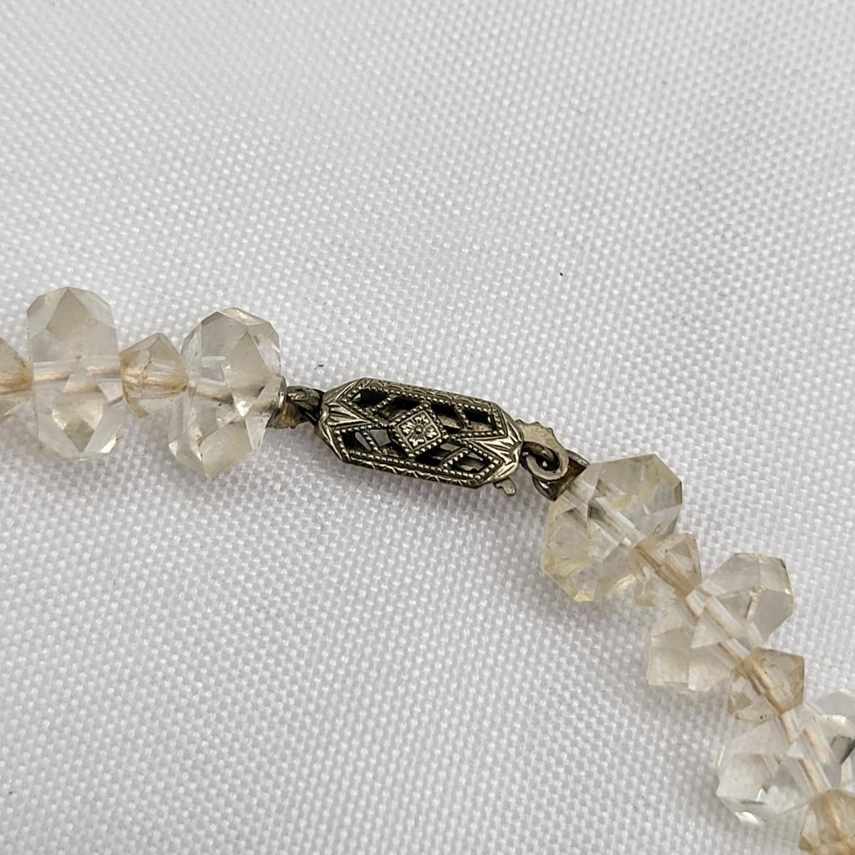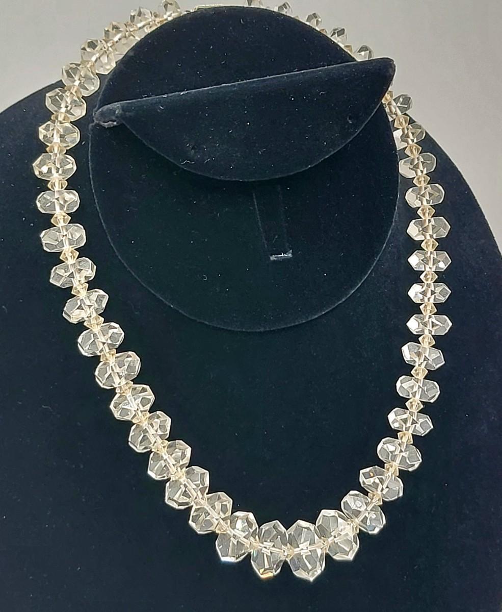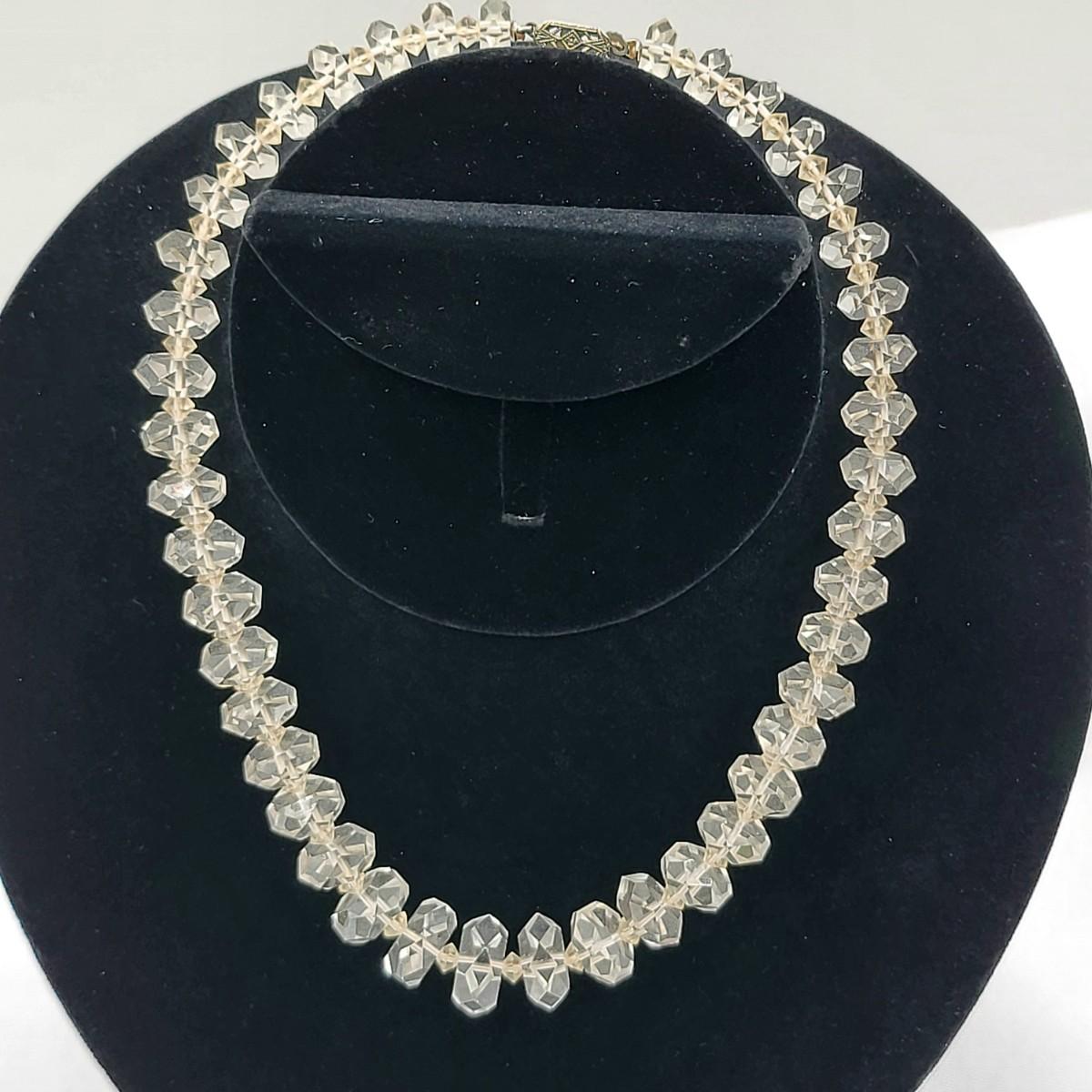 Gorgeous single-strand art deco-style cut crystal choker necklace, 14k gold filled hook push clasp, 14.5" long. It is a heavy, well made piece!