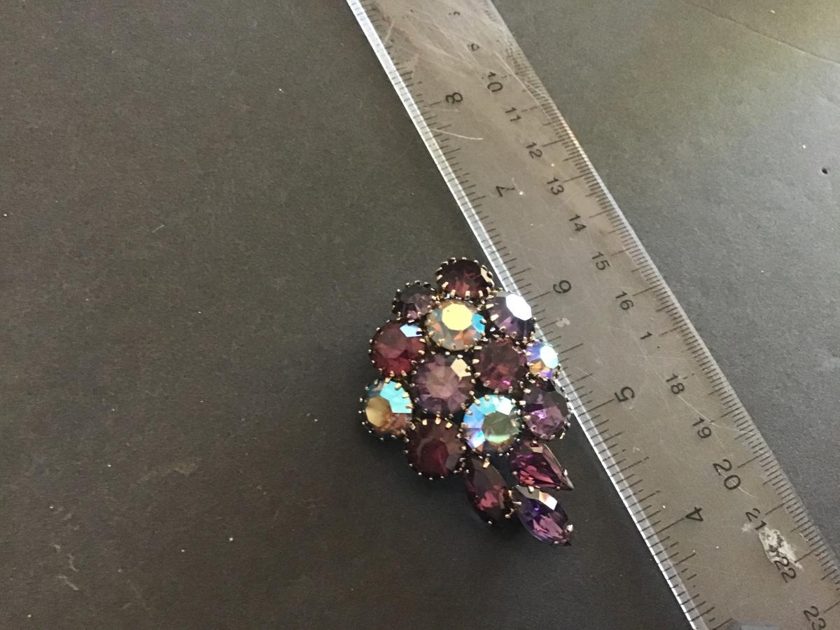 Gorgeous Aurora Borealis And Purple Rhinestone Cluster Brooch