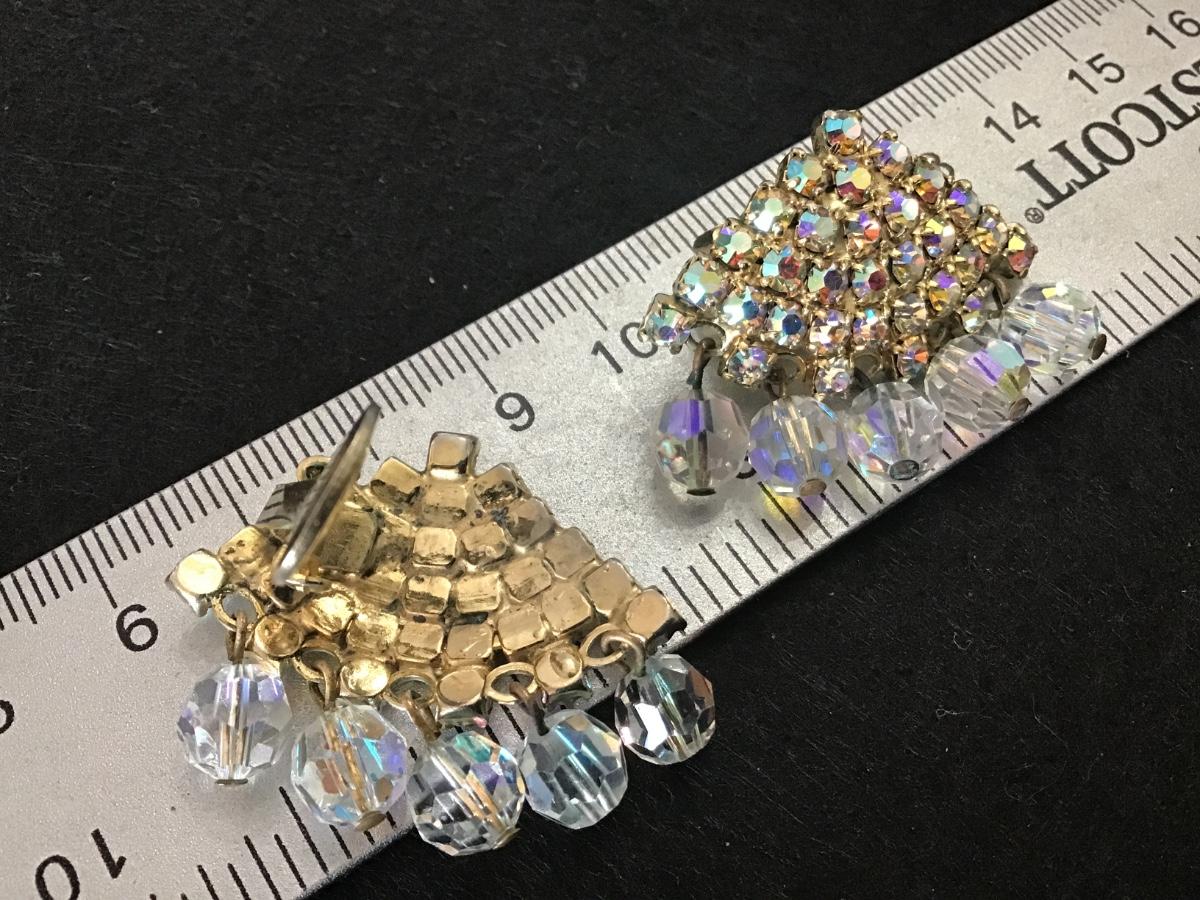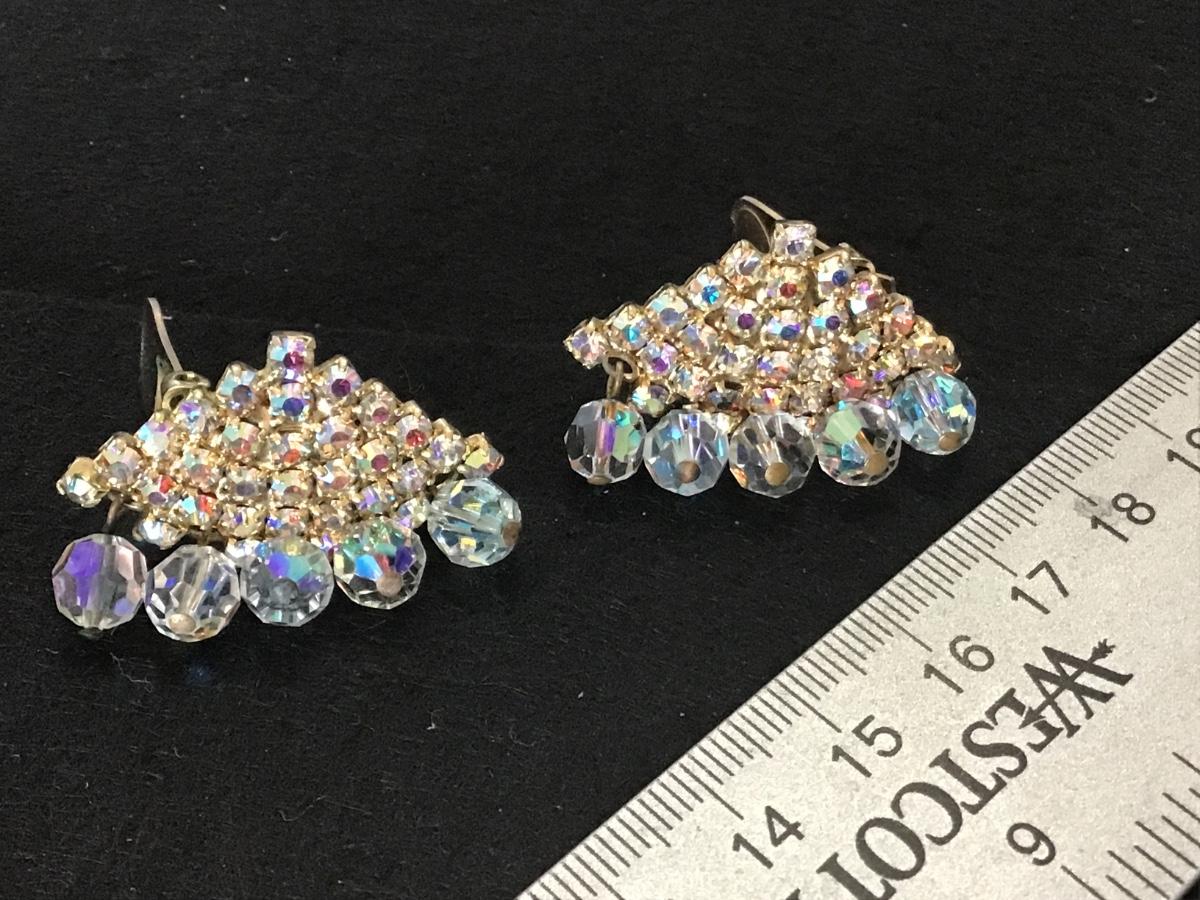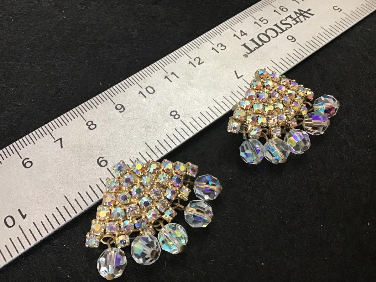 Gorgeous Aurora Borealis and Rhinestone Clip on Earrings Vintage