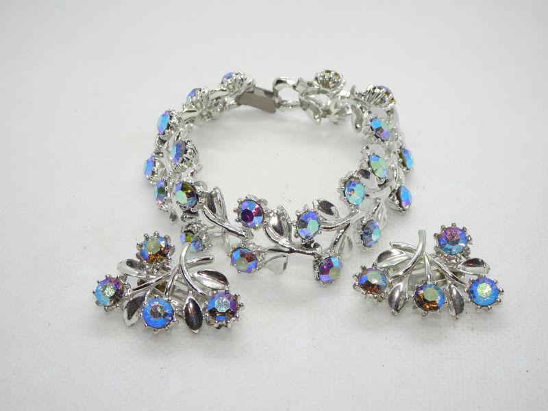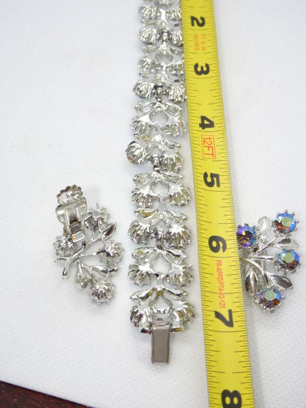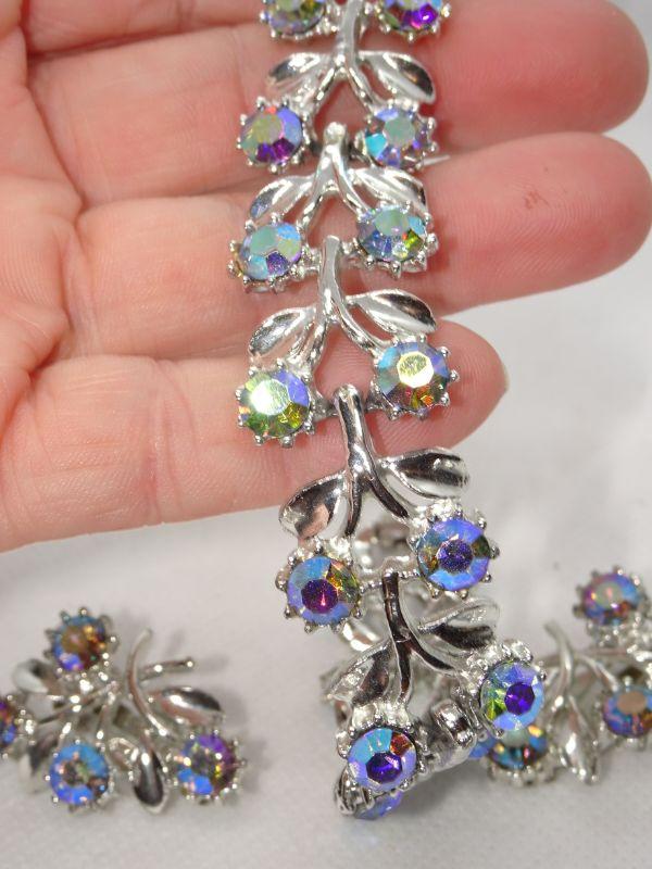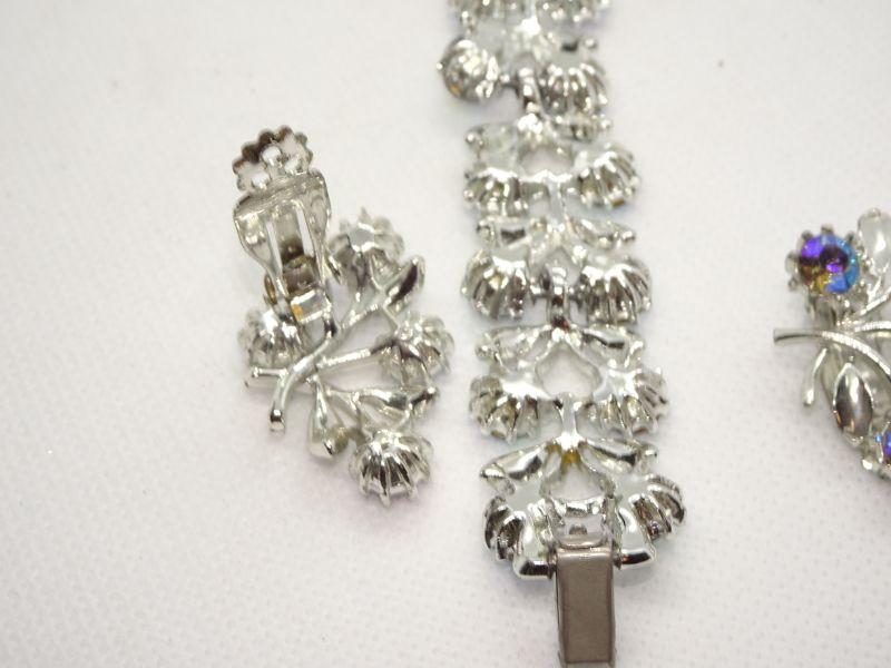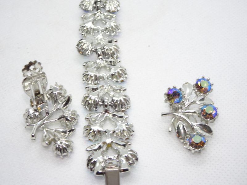 Gorgeous Aurora Borealis Rhinestone Bracelet & Matching Clip Earrings