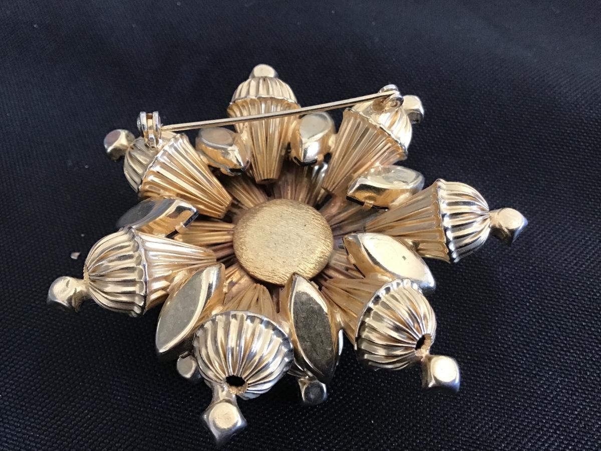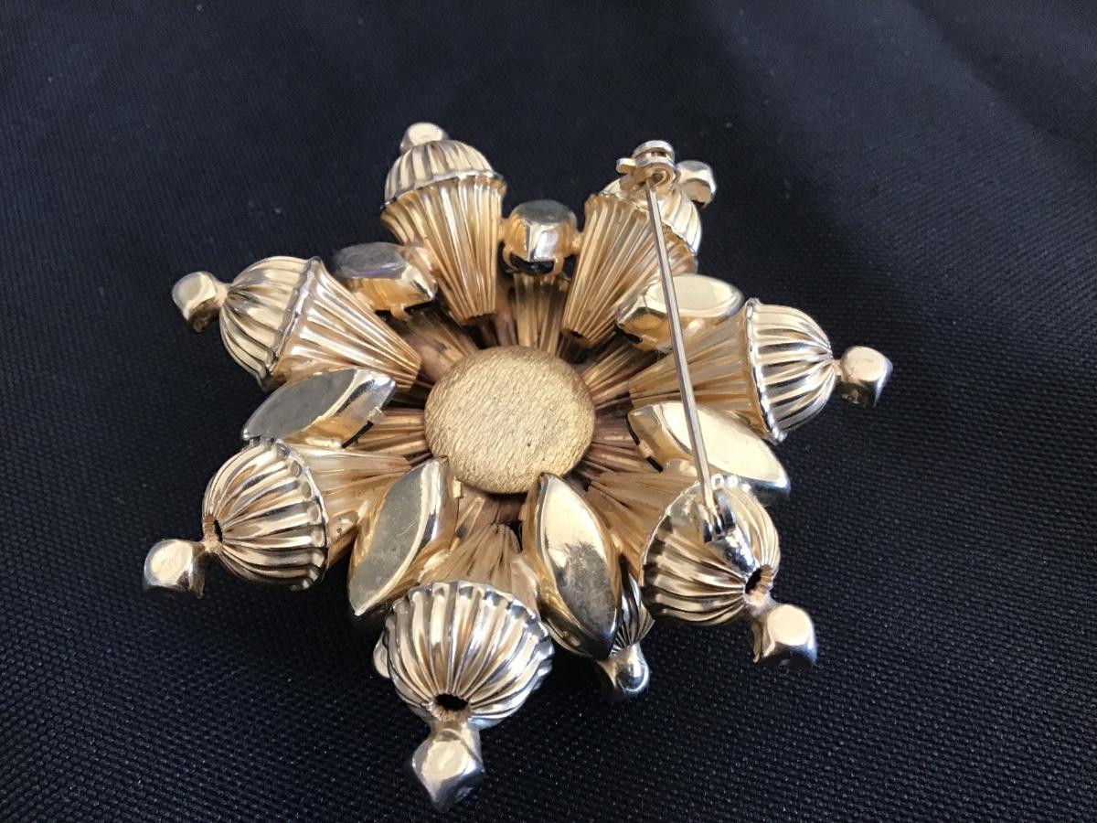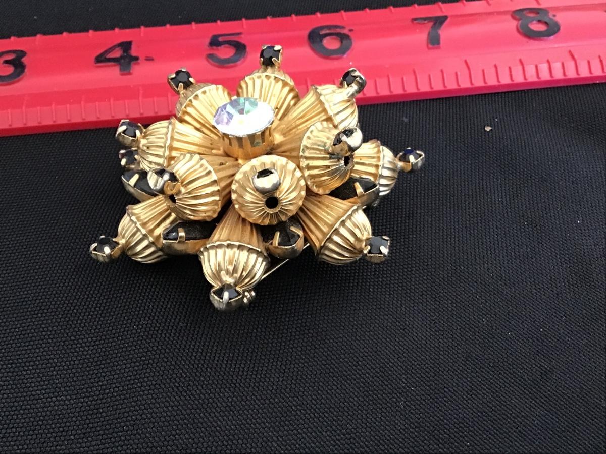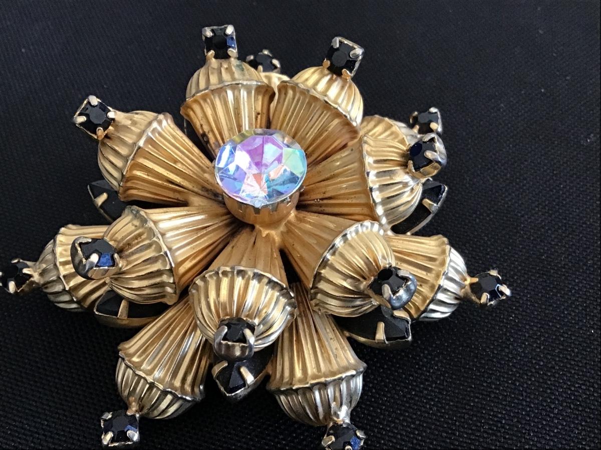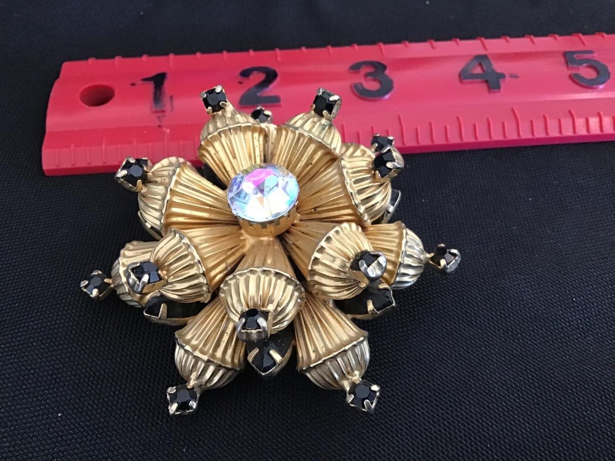Gorgeous Black Rhinestone Aurora Borealis Borelis Domed Large Brooch. Vintage