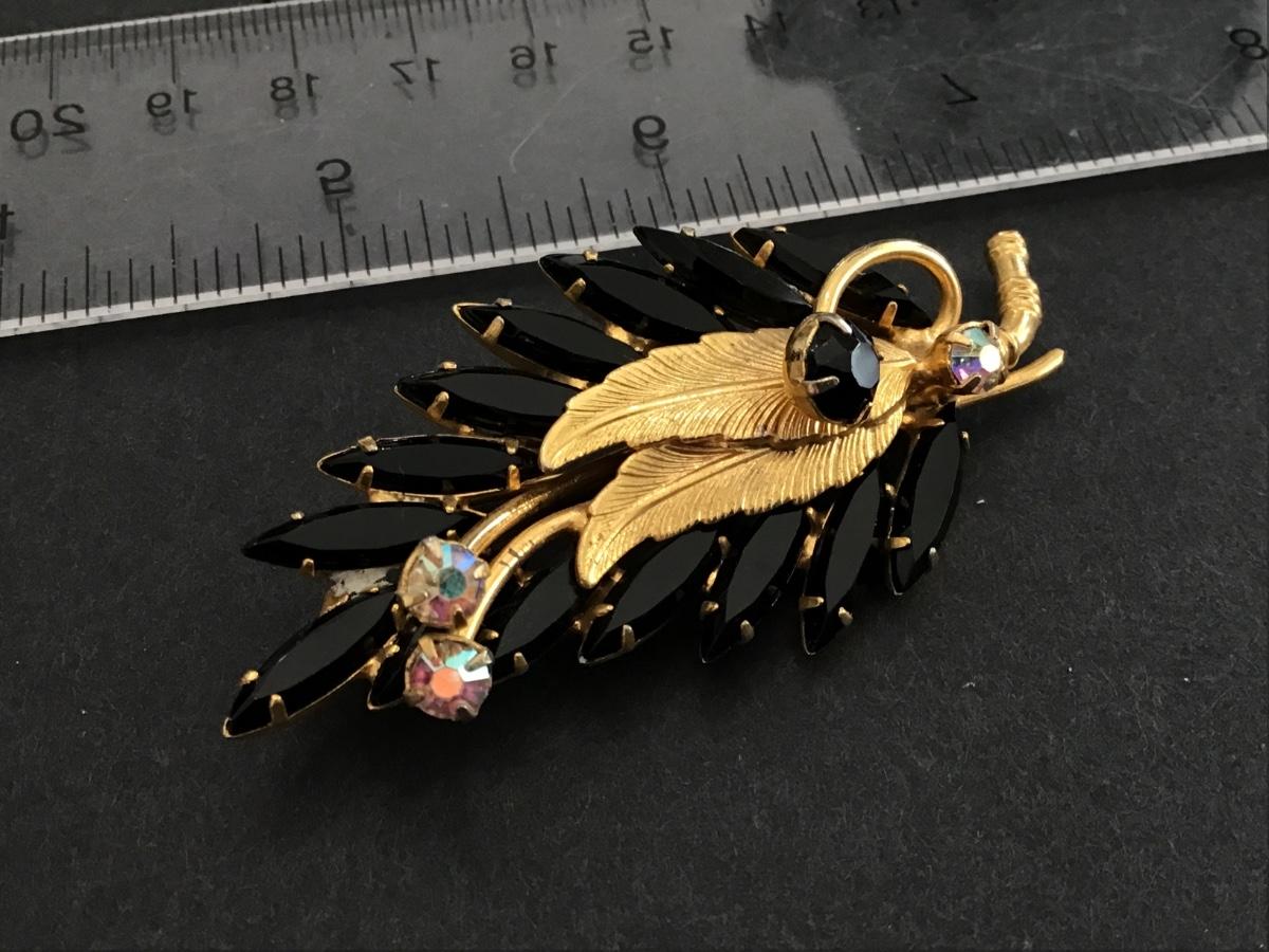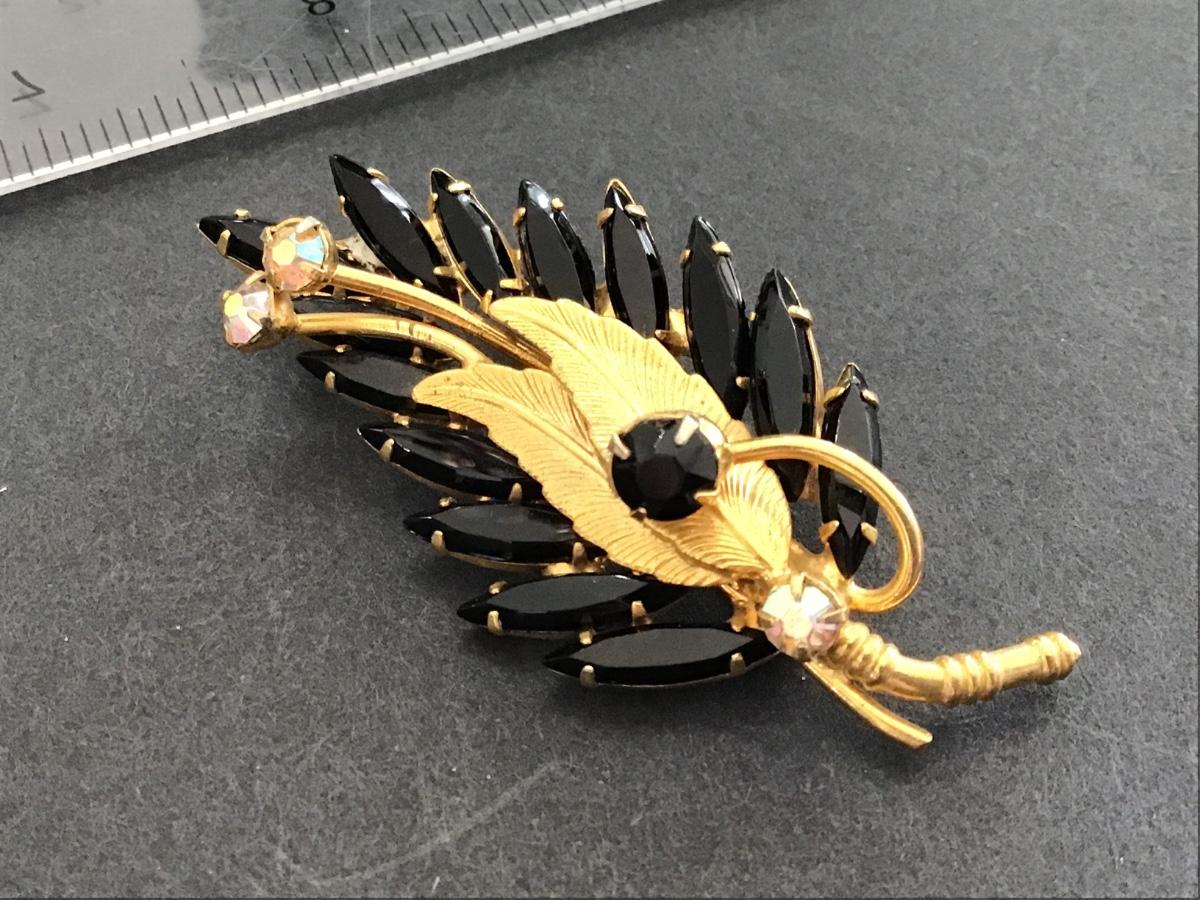 Gorgeous Black Rhinestone With Clear Rhinestone AB Gold Tone pretty