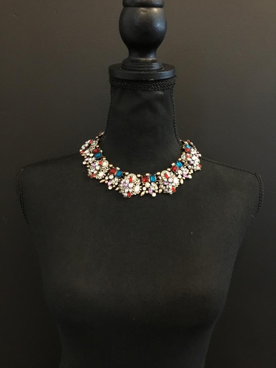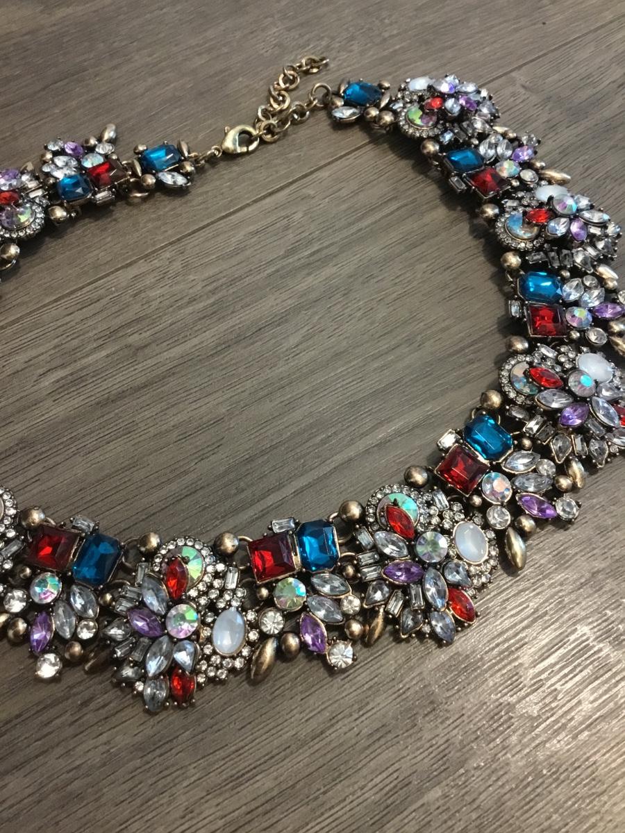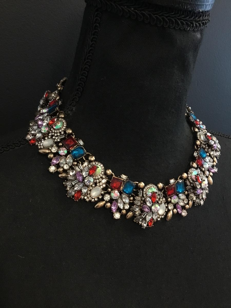 Gorgeous bronze, toned, multicolor, rhinestones statement, necklace