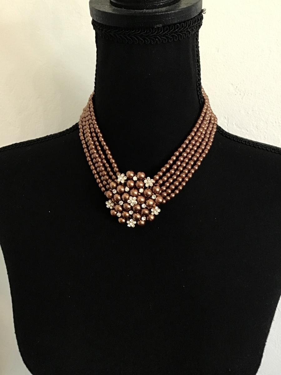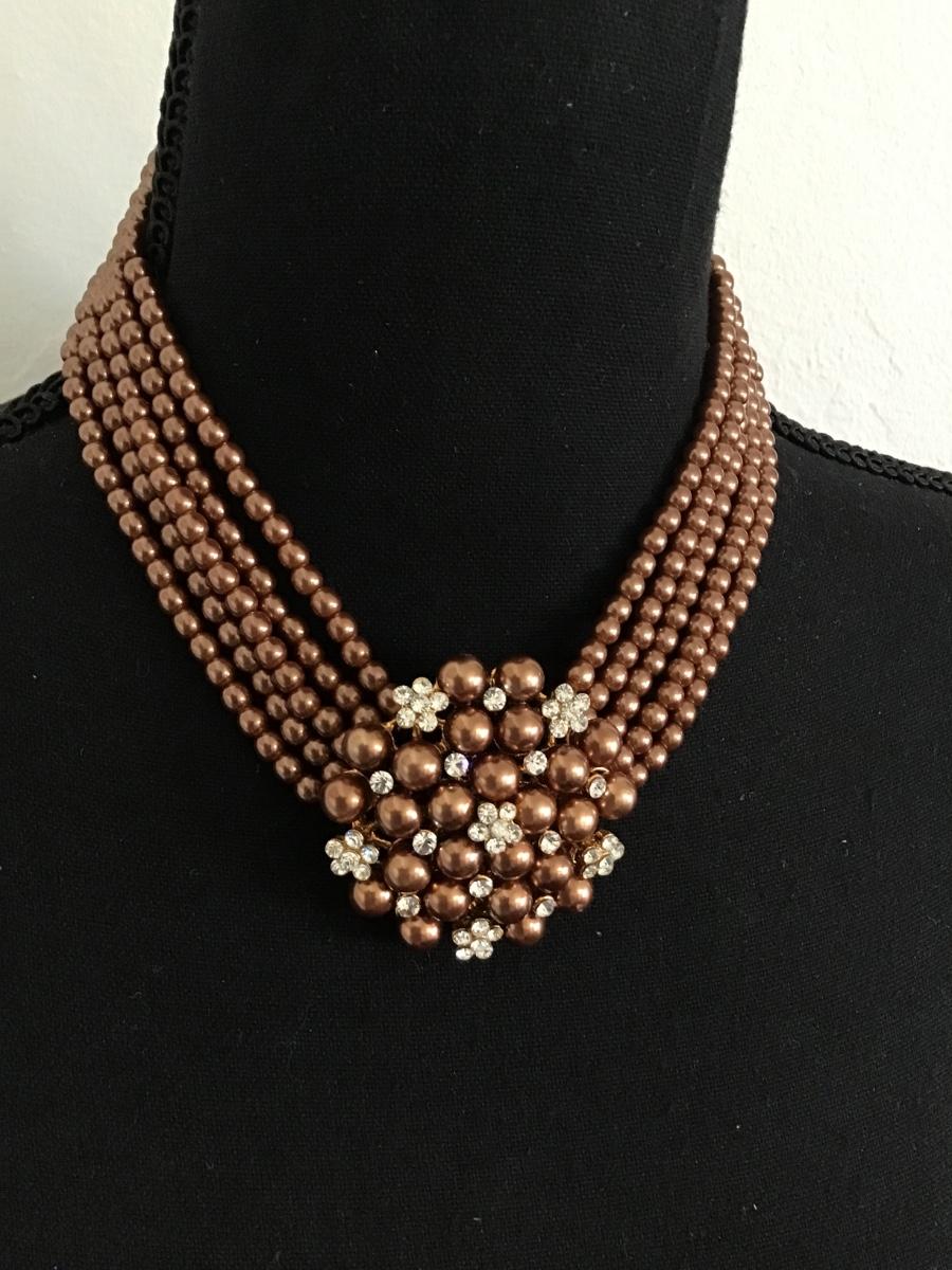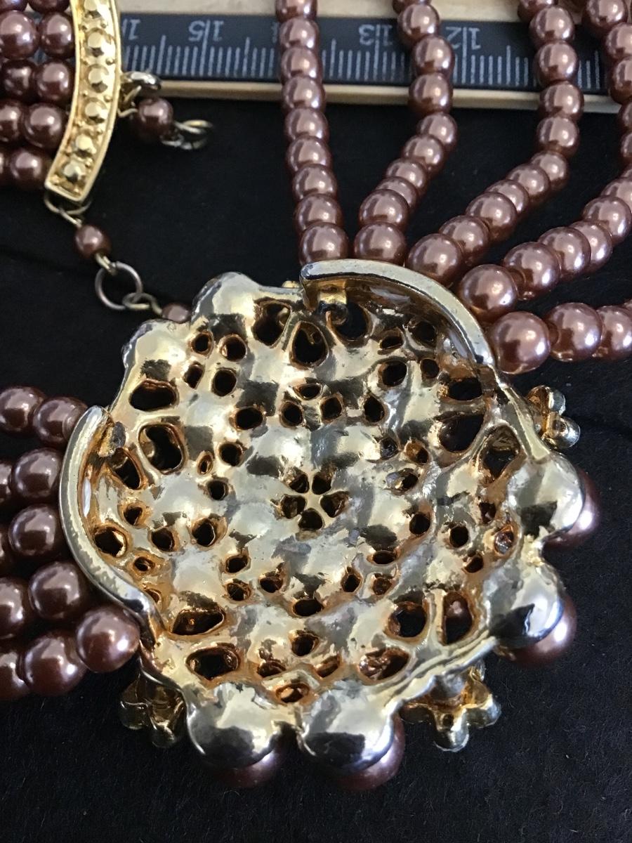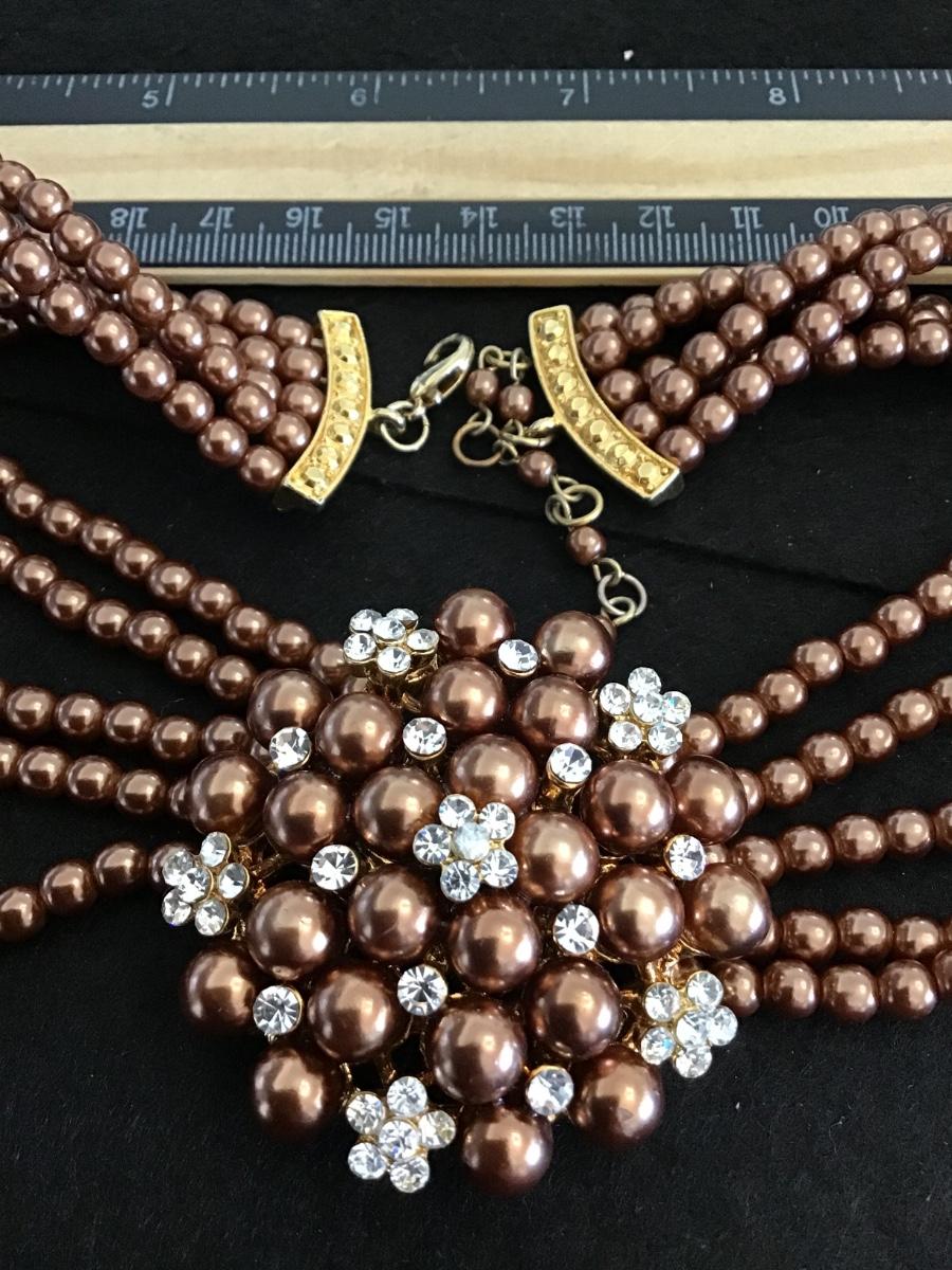 Gorgeous Brown Multi Strand With Large Rhinestone Pearl nec